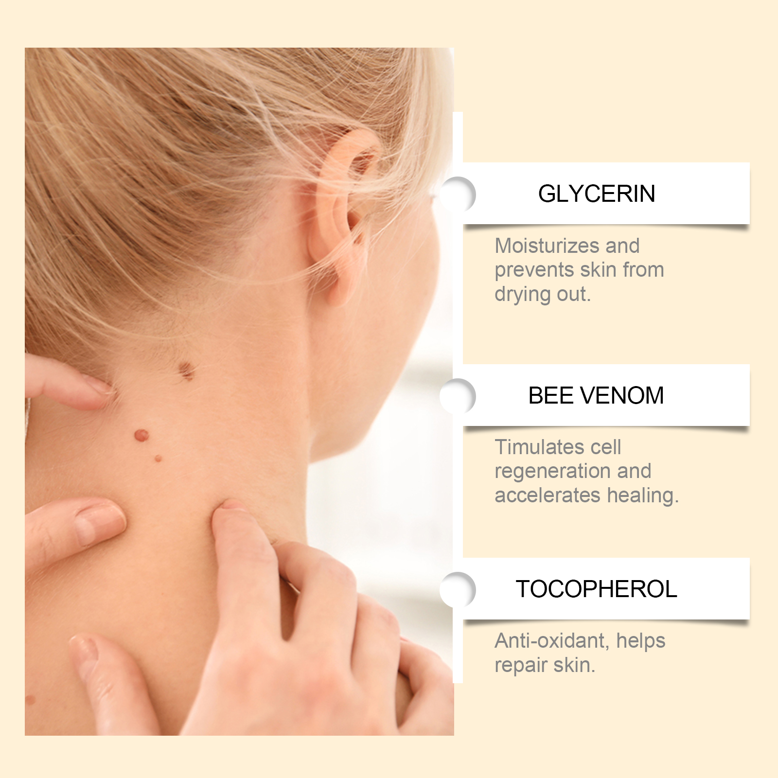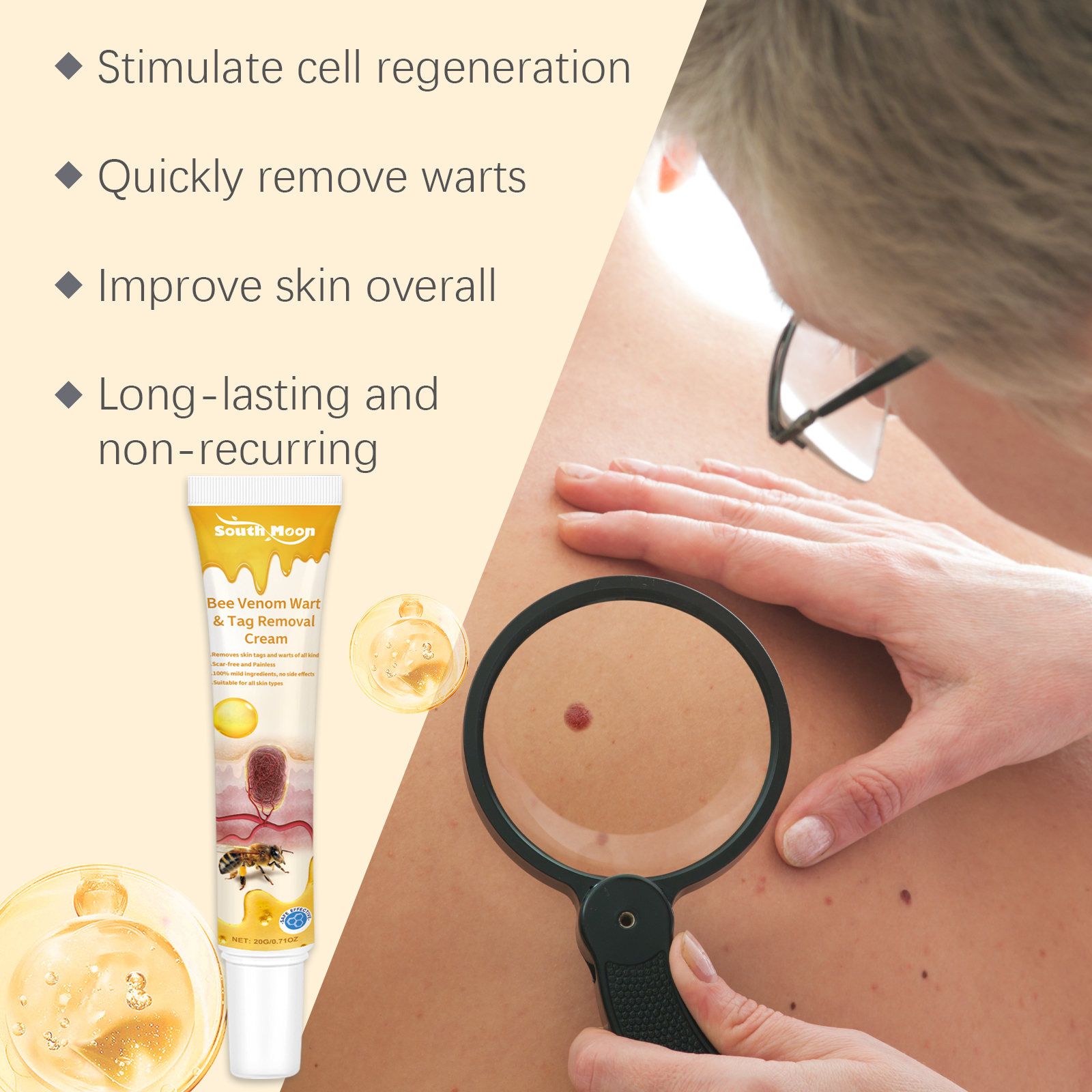Our Keyu cream contains Melaleuca alternifolium oil and vitamin E. It can promote cell regeneration and speed up skin healing. Prevent the formation of scars and blemishes and keep your skin clean. Its application is simple: clean and dry the affected skin, apply an appropriate amount of the wart ointment to the affected area, and gently massage until absorbed. And can effectively reduce skin labels and warts, restore smooth skin.