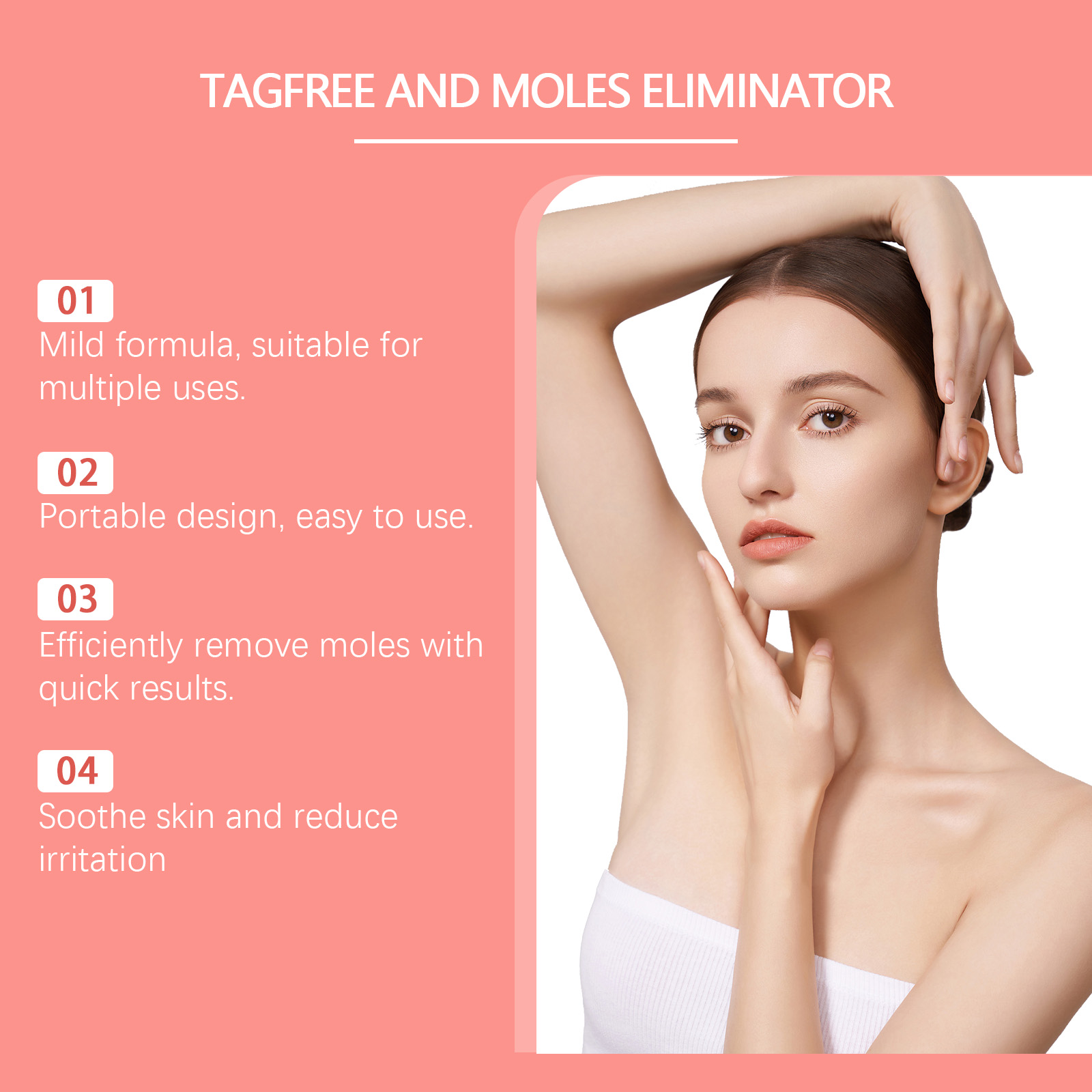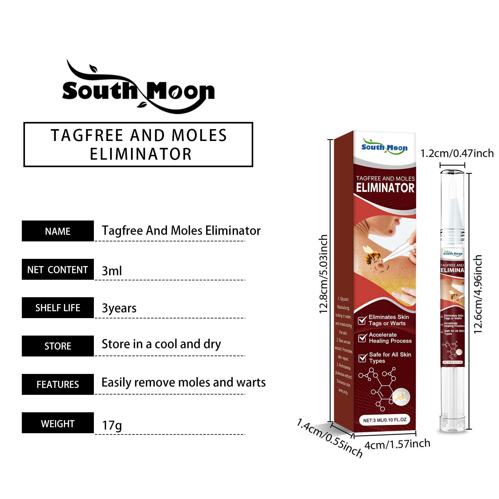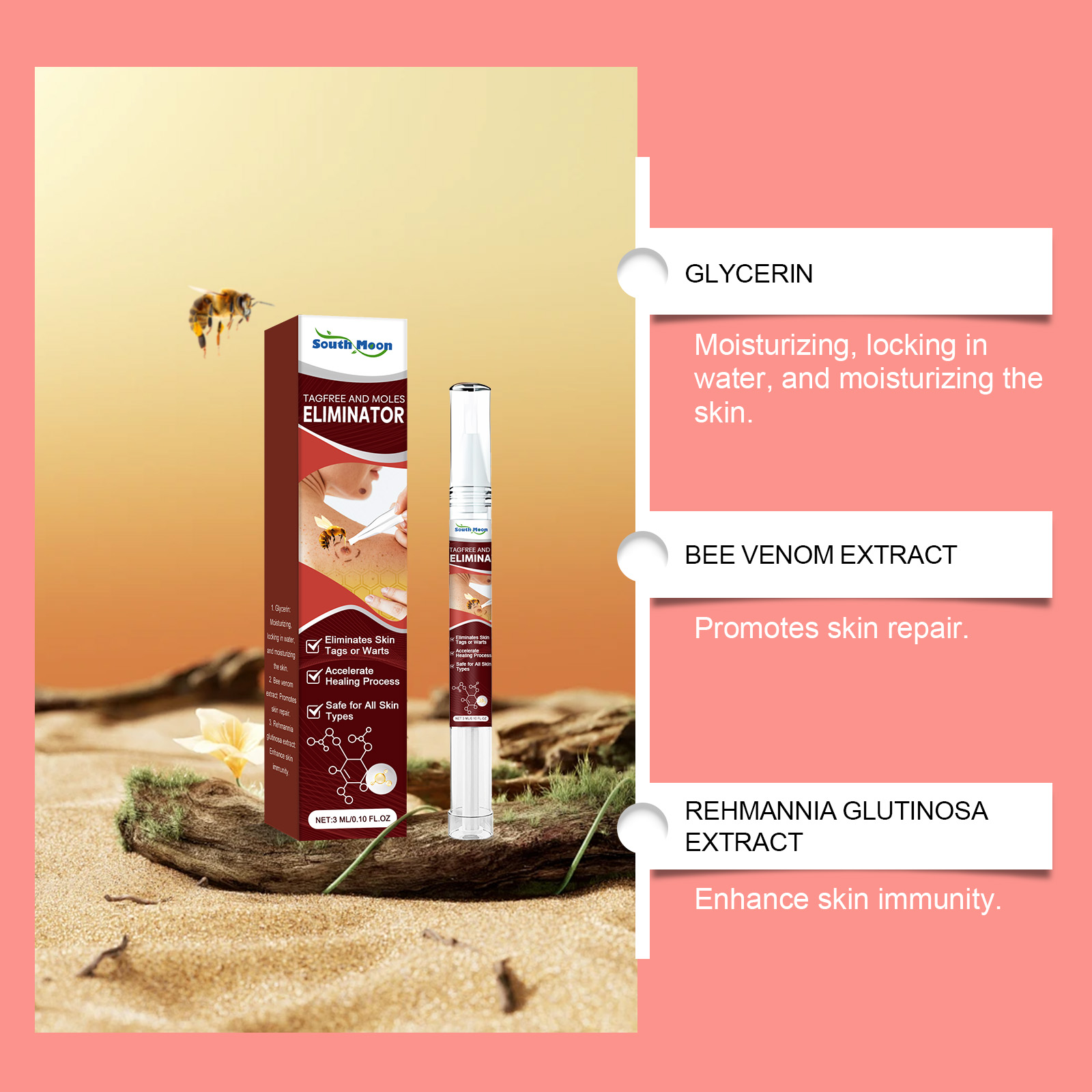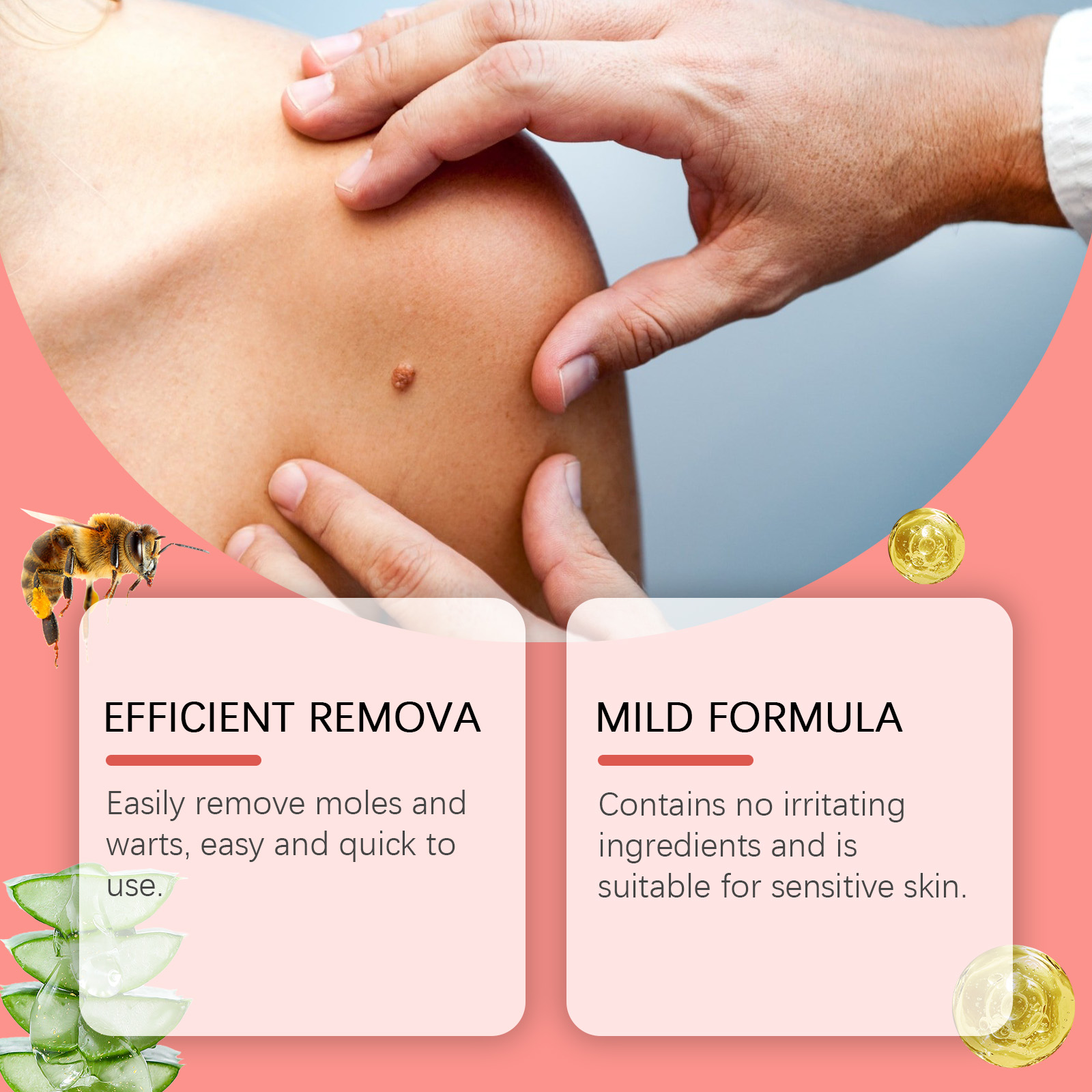 Our mole and wart removal liquid pens contain glycerin and bee venom. It can easily remove moles and warts and is quick and easy to use. Its use is simple: after cleansing the skin and keeping the skin dry, gently pat pigmented or uneven areas, such as skin tags, warts, dark spots, with the tip of the pen, massage in circles with the fingertips to promote absorption. And can effectively remove moles with fast results.