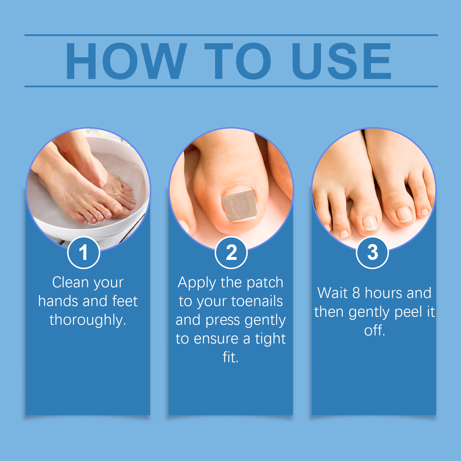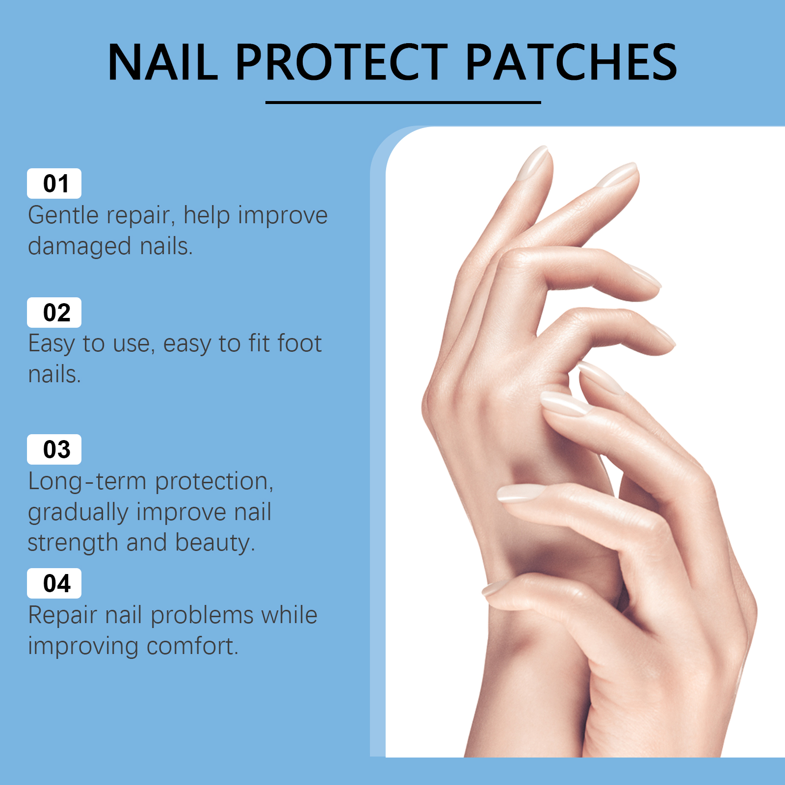 Our nail care strips contain peppermint extract and almond oil. It can improve the appearance of nails, gently repair nails, and enhance the feeling of health. Its application is simple: thoroughly clean your hands and feet, apply the patch to your toenails, press gently to make sure the fit is tight, wait 8 hours, and then gently peel it off. And it can bring a refreshing feeling and help relieve tired feet.