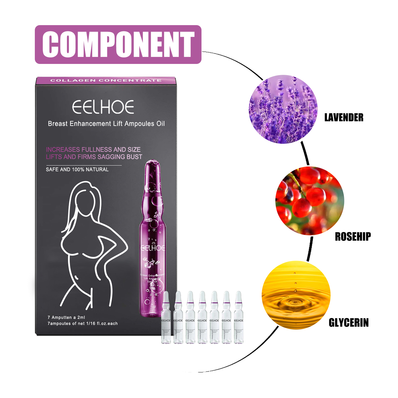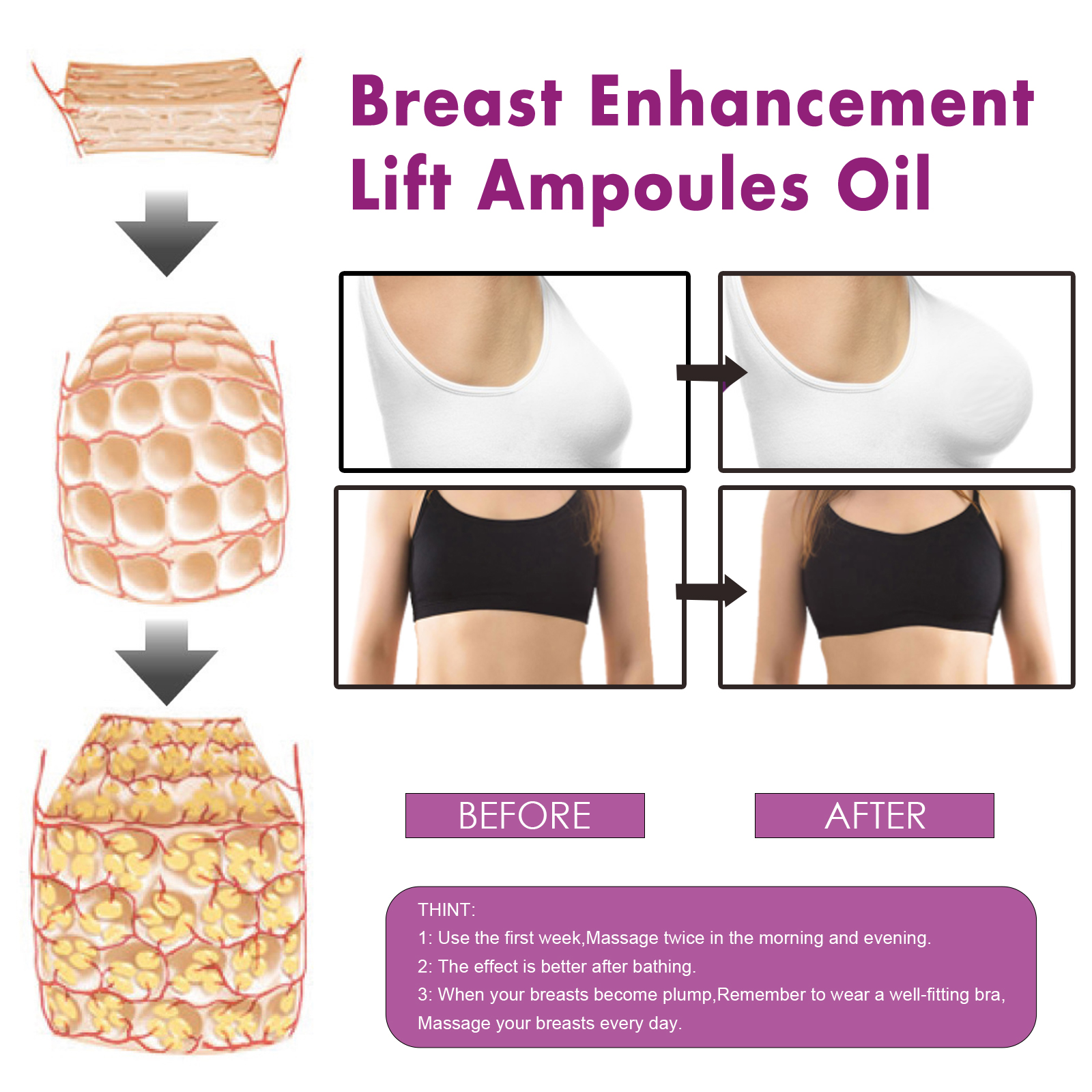 Our Breast Enhancement Lift Ampoules Oil contains glycerin, lavender, rosehip. It can trngthen the absorption of untriets, gather togther to improve sagging, breast voiumo becomes fuller. Its application method is very simple: Break off the head of the ampoule along the groove. After warming the chest, take a little essential oil and rub it on the palm. Apply the essential oil evenly on the chest. Alternate clockwise and counterclockwise, gently massage the chest with both hands. Increases fullness and size, lifts and firms sagging bust.