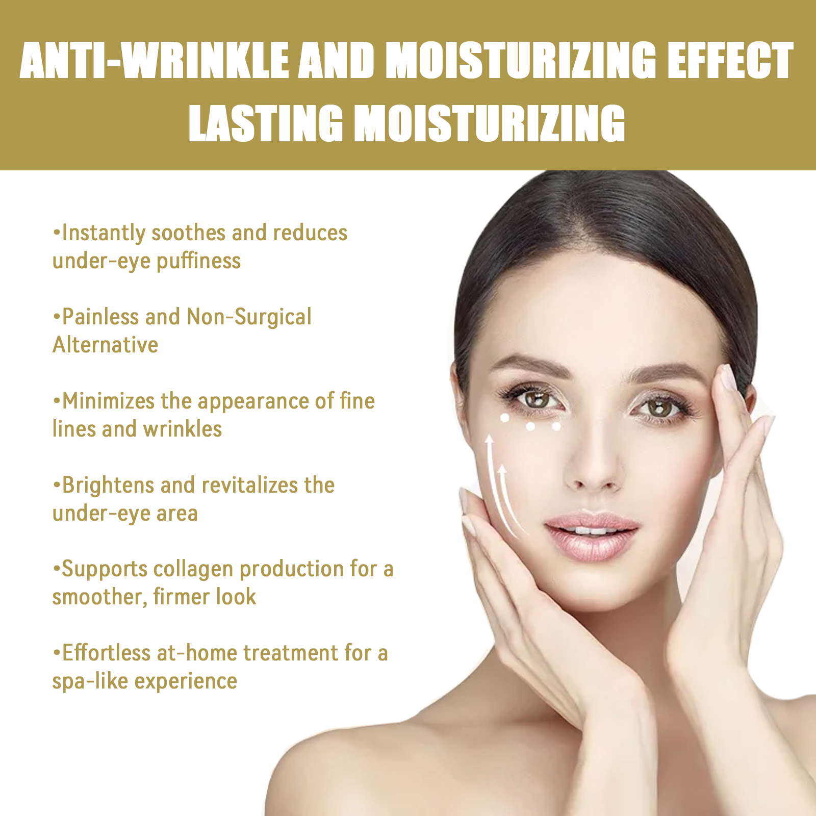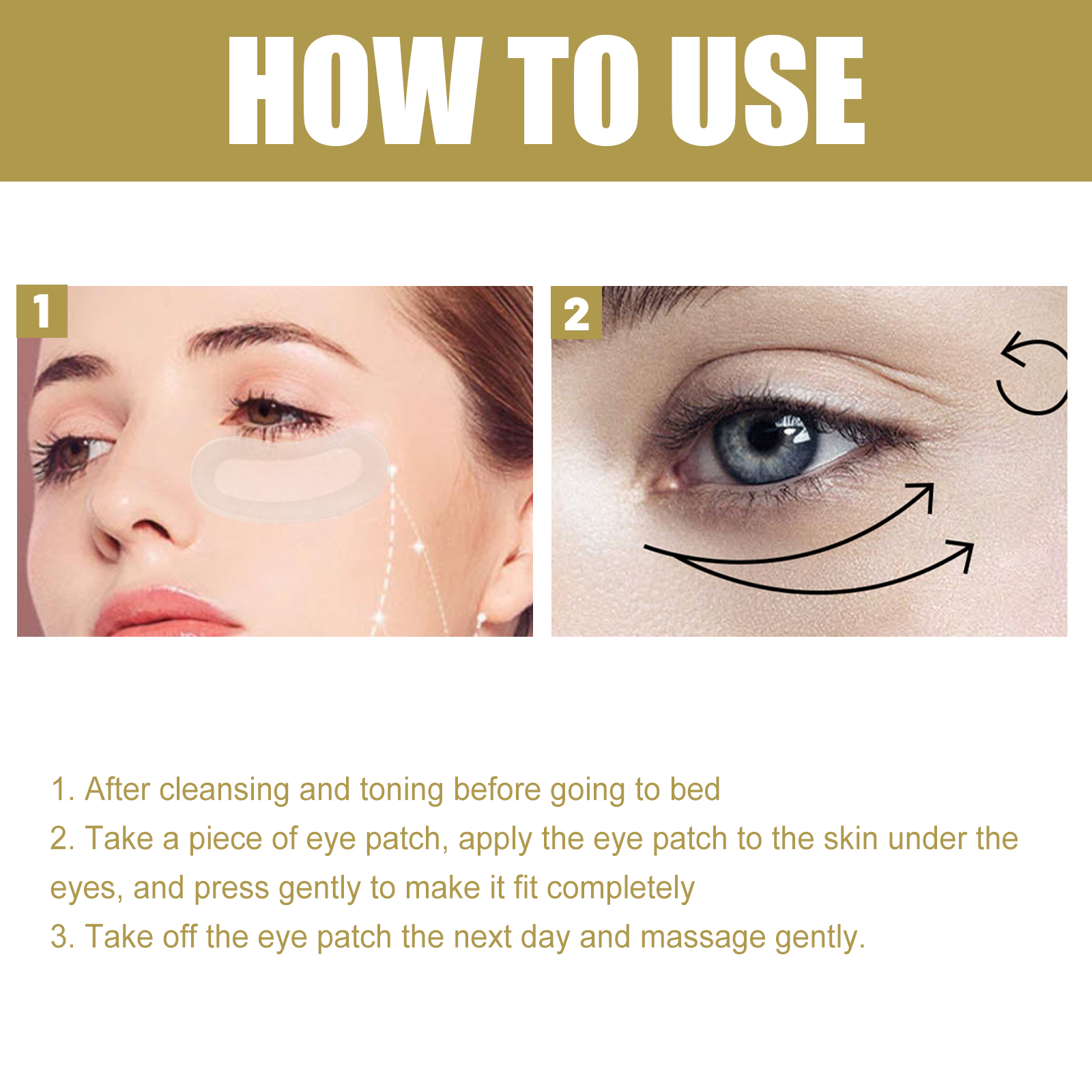 Our eye strips contain glycerin, hydroxyethyl cellulose, and hyaluronic acid. It instantly soothes and reduces under-eye puffiness, painless and a non-surgical option. Reduce the appearance of fine lines and wrinkles. Lighten and activate the under-eye area. Its use is simple: before bed after cleansing and toning. Take an eye patch and place the patch on the skin under your eye, applying gentle pressure to make it fit completely. The next day, remove the blindfold and gently massage. It can also support the production of collagen, making the skin smoother and firmer. Easily treat at home and experience Aspar syndrome.