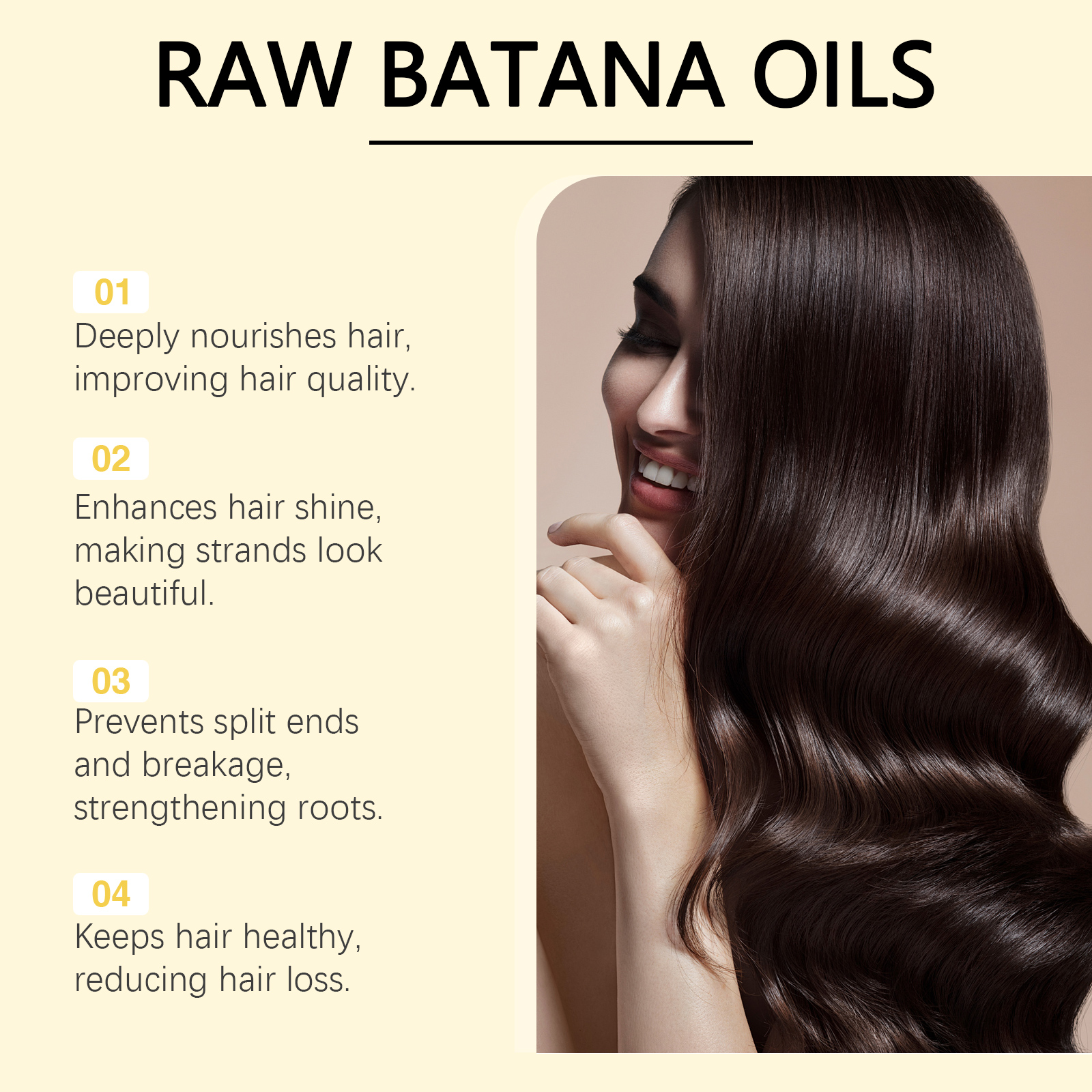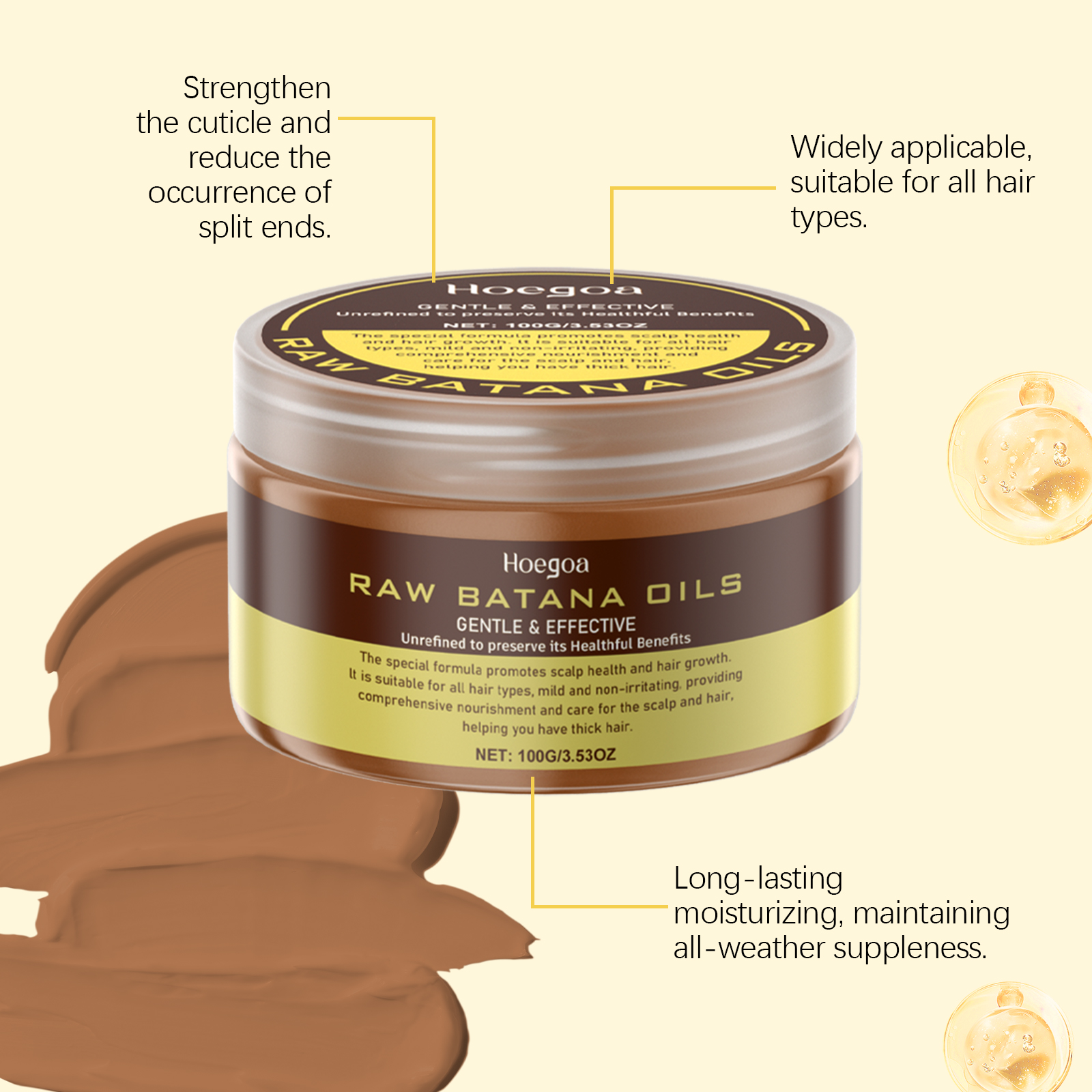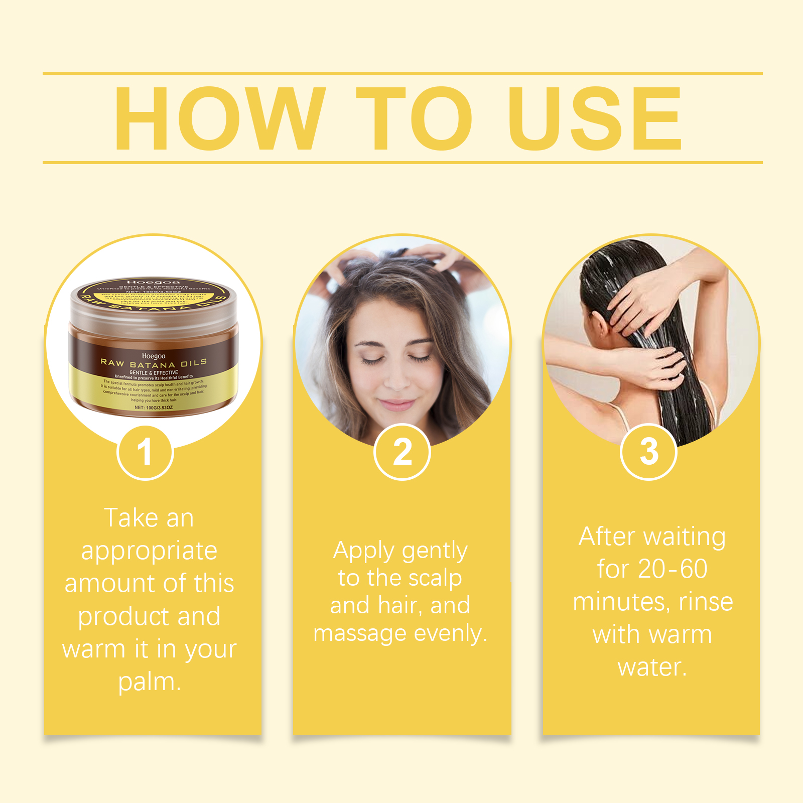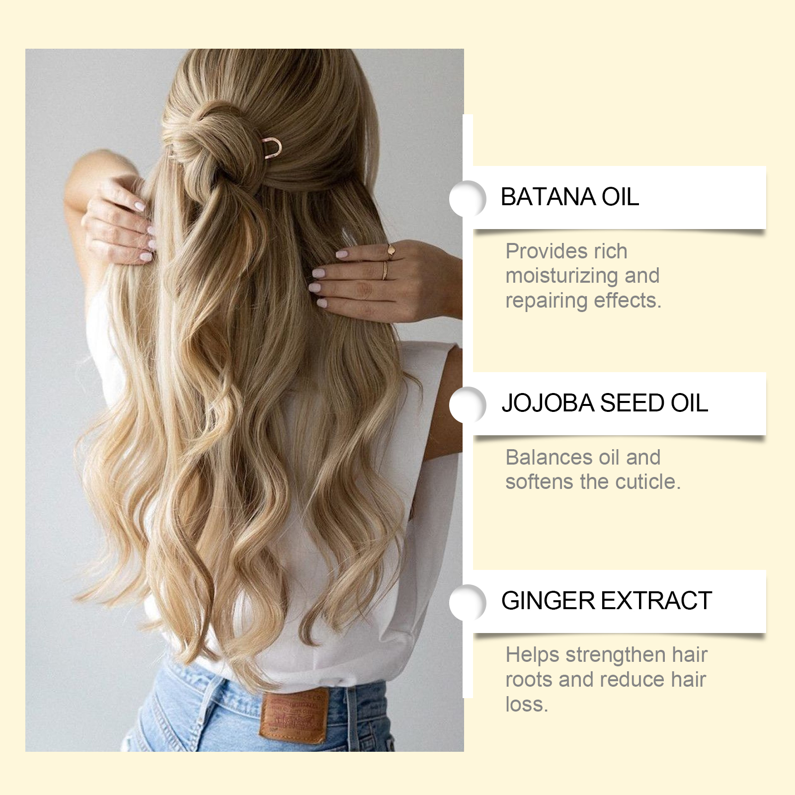 Our Batana hair balm contains Batana oil, Jojoba seed oil, ginger extract. It strengthens and nourishes damaged hair from the inside out. One touch is smooth, soothing. Its use method is very simple: 1. Take appropriate amount of this product in the palm to heat. 2. Gently apply to scalp and hair and massage evenly. 3. Wait 20-60 minutes and rinse with warm water. Enhanced repair to improve dryness and roughness. Reduce dandruff and keep your scalp healthy.