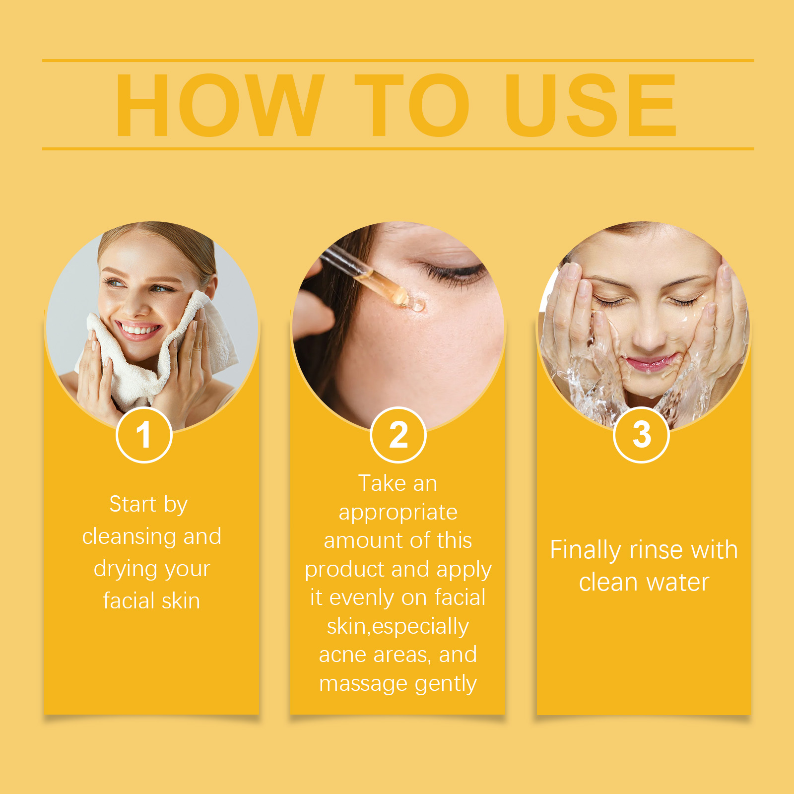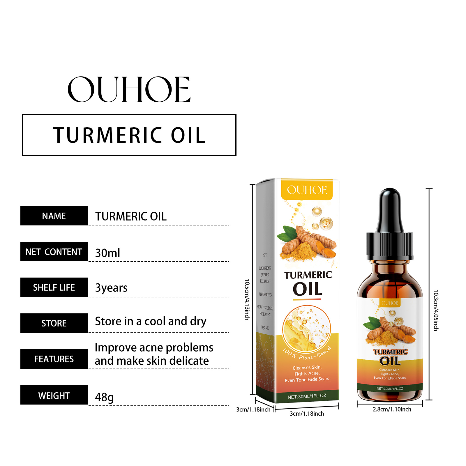 Our cleansing turmeric oil contains lemon extract, kojic acid. It can increase skin shine, improve skin brightness, and even skin tone. Its application method is very simple: first clean and dry your facial skin, apply an appropriate amount of this product evenly to the facial skin, especially the acne area, gently massage, and finally rinse off with water. It also moisturizes and soothes dryness for a long time.