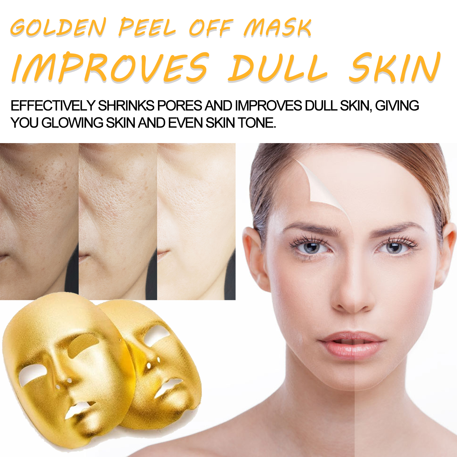 Our Golden Peel Off Mask contains 24K gold leaf, glycerin, kojic acid. It can significantly improve the skin and remove small pimples and acne; Tighten pores, effectively remove blackheads and impurities, and deeply clean skin. Its use method is very simple: clean the face with a hot towel to open the pores, take an appropriate amount of mask, evenly apply on the face, wait for 10-15 minutes to uncover the mask, and rinse with clean water. It can effectively absorb blackheads and impurities, provide deep cleaning for the skin, improve fine lines, tighten the skin, deeply moisturize the skin and improve the skin.