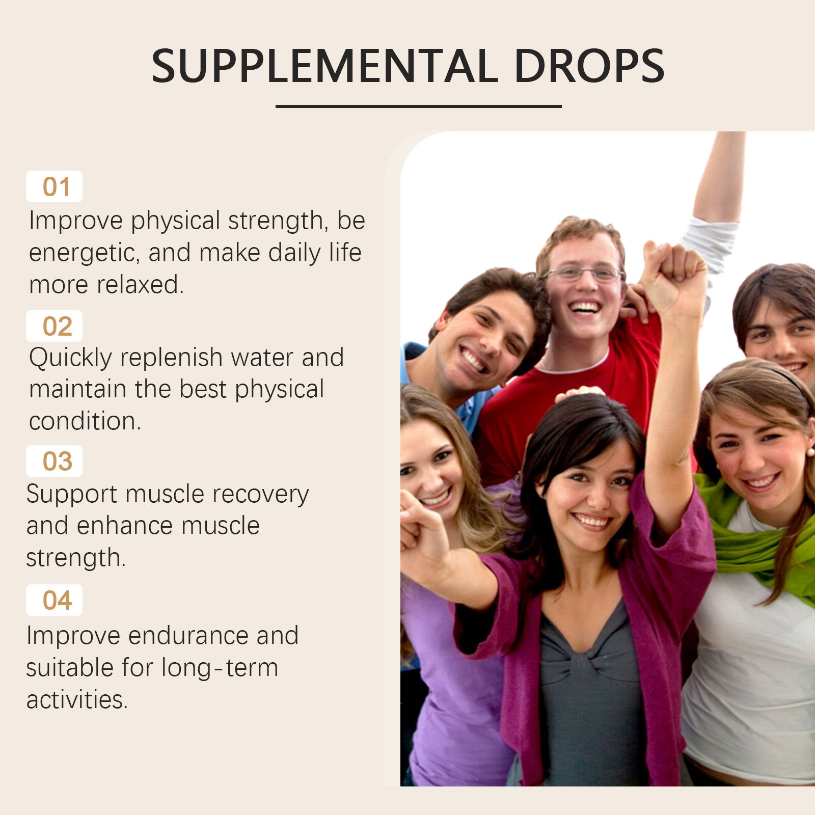 Our food supplements contain Chinese herbal extracts, gluconolactone, vitamin b1. It can effectively promote physical vitality. Suitable for all body types, safe to use; Helps muscles recover quickly. It can maintain lasting durability after use. The way to use it is simple: Shake it well before serving, 1-2 drops at a time. Food supplements help improve long-term endurance performance. Ideal for athletes and busy professionals.