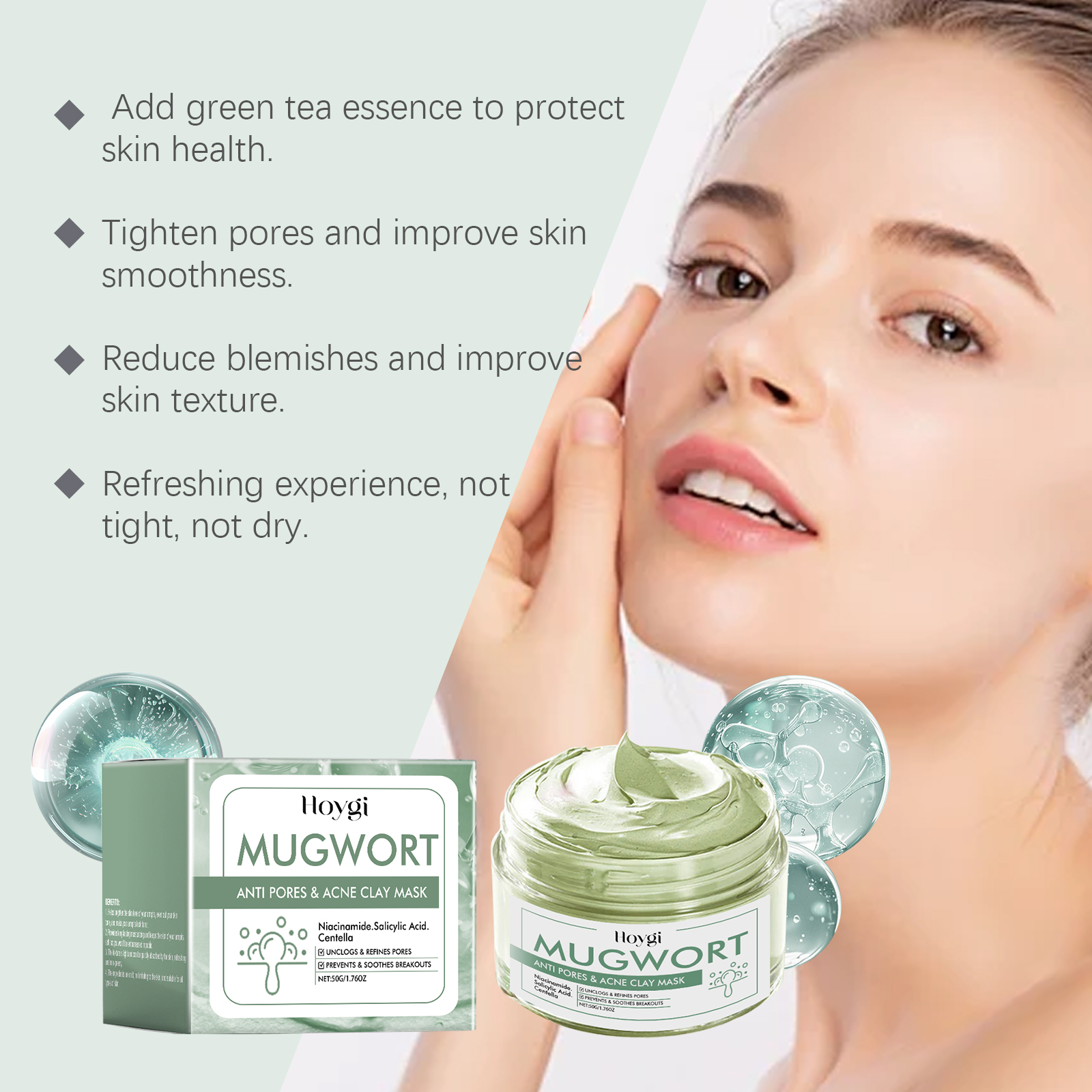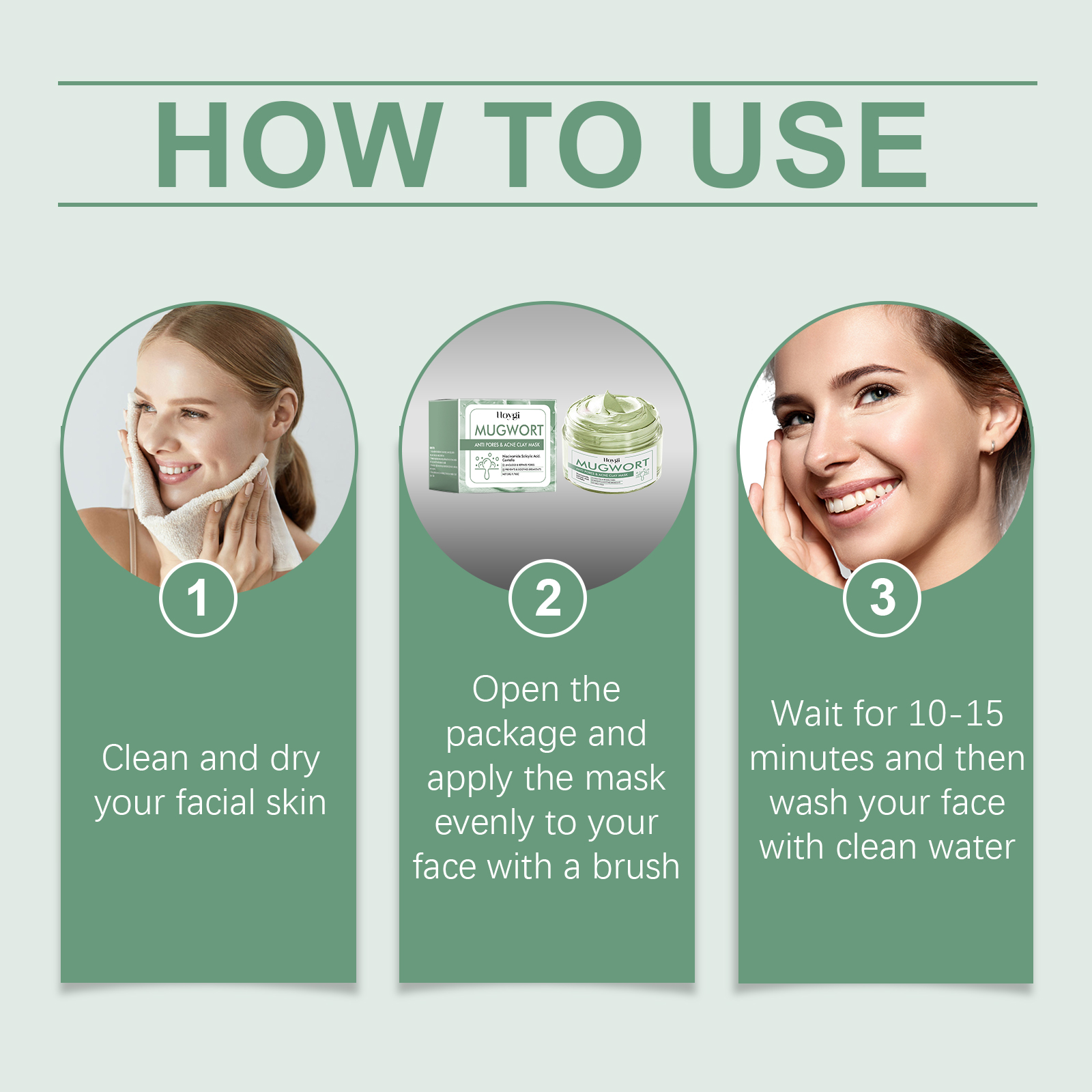 Our black head Green tea cleansing mask contains Asiaticum extract and mugwort extract. It can adjust sebum, lasting oil control goodbye greasy feeling. The way to use it is simple: clean and dry your facial skin, open the package, apply the mask evenly on your face with a brush, wait 10-15 minutes before rinsing your face with clean water. And can penetrate into pores, remove blackheads, restore smooth skin.