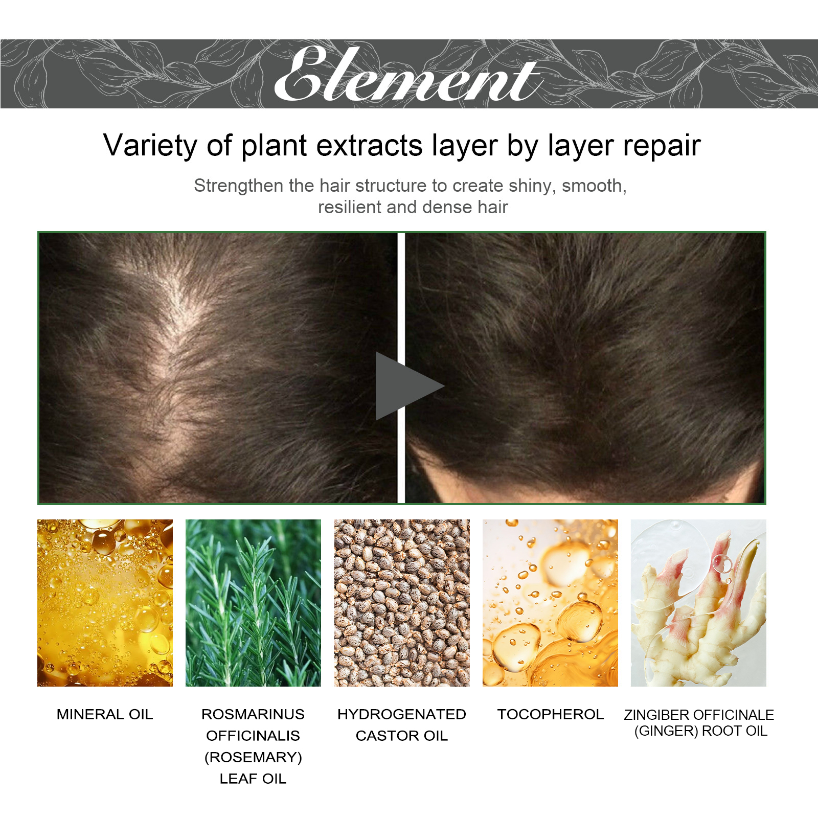 Our hair care serum contains rosemary leaf oil, tocopherol (vitamin E), ginger root oil. It nourishes and protects hair and also improves the health of hair follicles, reduces further hair loss and breakage, prevents further thinning of hair and promotes new thick hair growth. The way to use it is very simple: first wash your hair, take 2-3 drops of this product on the scalp or palm of your hand, massage the scalp with your fingertips until it is completely absorbed. It can deeply awaken dormant hair follicles, promote the growth of new hair, and make hair healthier and thicker.