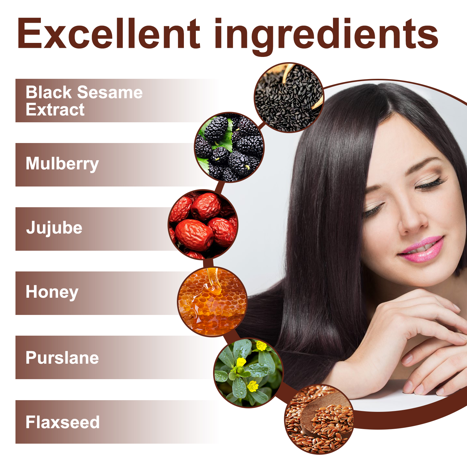 Our hair follicle care black sesame balls contain purslane, flaxseed. It can increase the strength and shine of the hair, making it rejuvenate. Its use is simple: open the package and eat the sesame balls directly, and it can help nourish the hair follicles and maintain the overall health of the scalp.