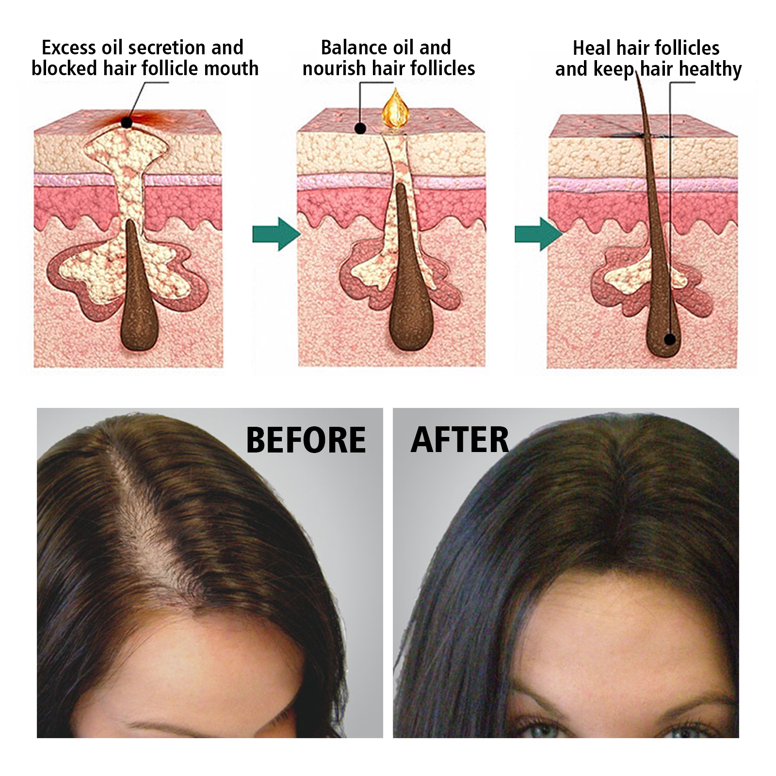 Our hair serum contains rosemary oil, ginger root extract, Angelica extract. It can lift thick hair, promote hair growth, make hair smooth and shiny, effectively improve scalp blood circulation and strengthen every hair follicle and hair roots. Its use method is very simple: first wash the hair, rub until half dry, then take the appropriate amount of essence evenly apply on the scalp, gently massage with the hand in a circular motion until absorbed, in daily use can get better results, guide the rapid growth of hair, so that you have more black and beautiful hair.