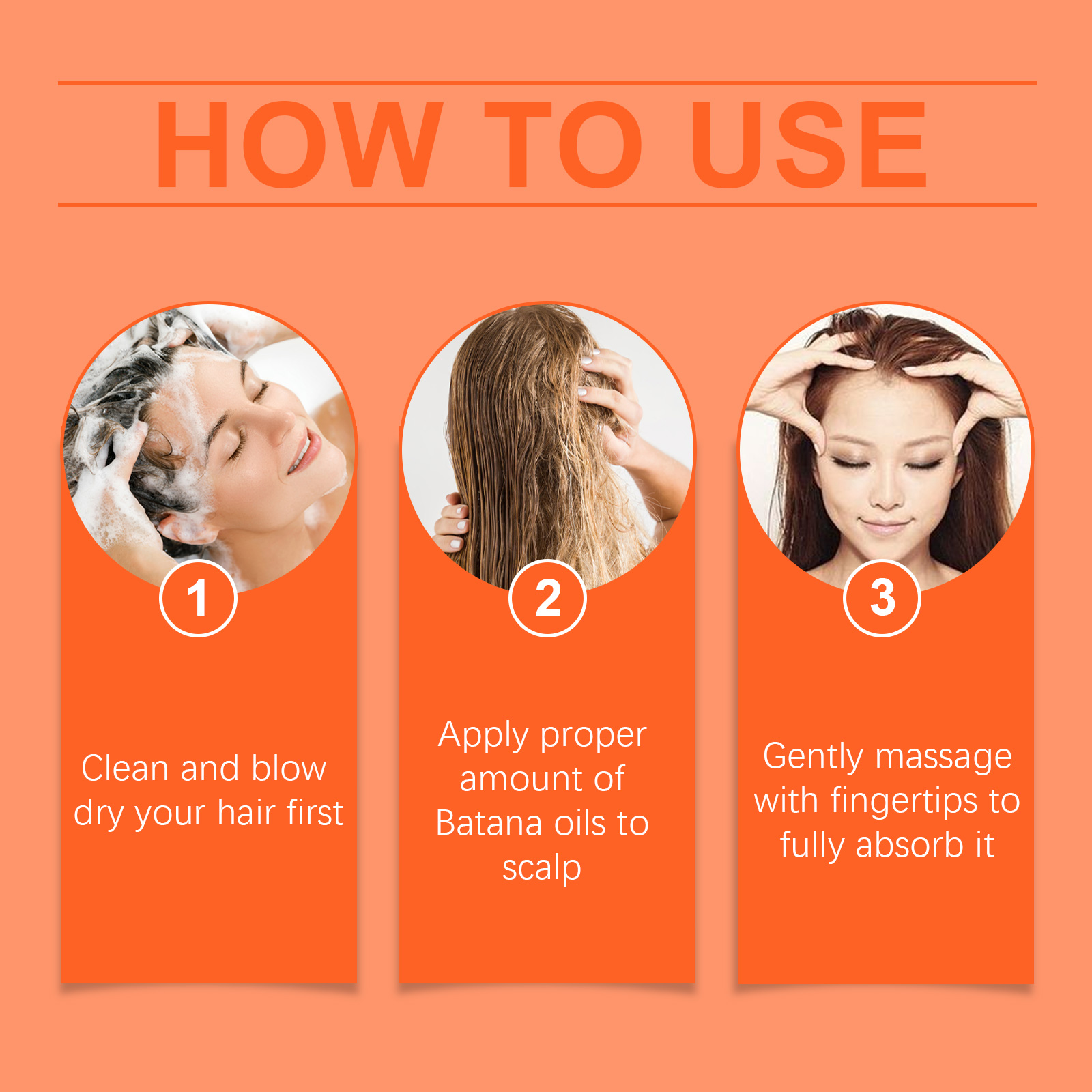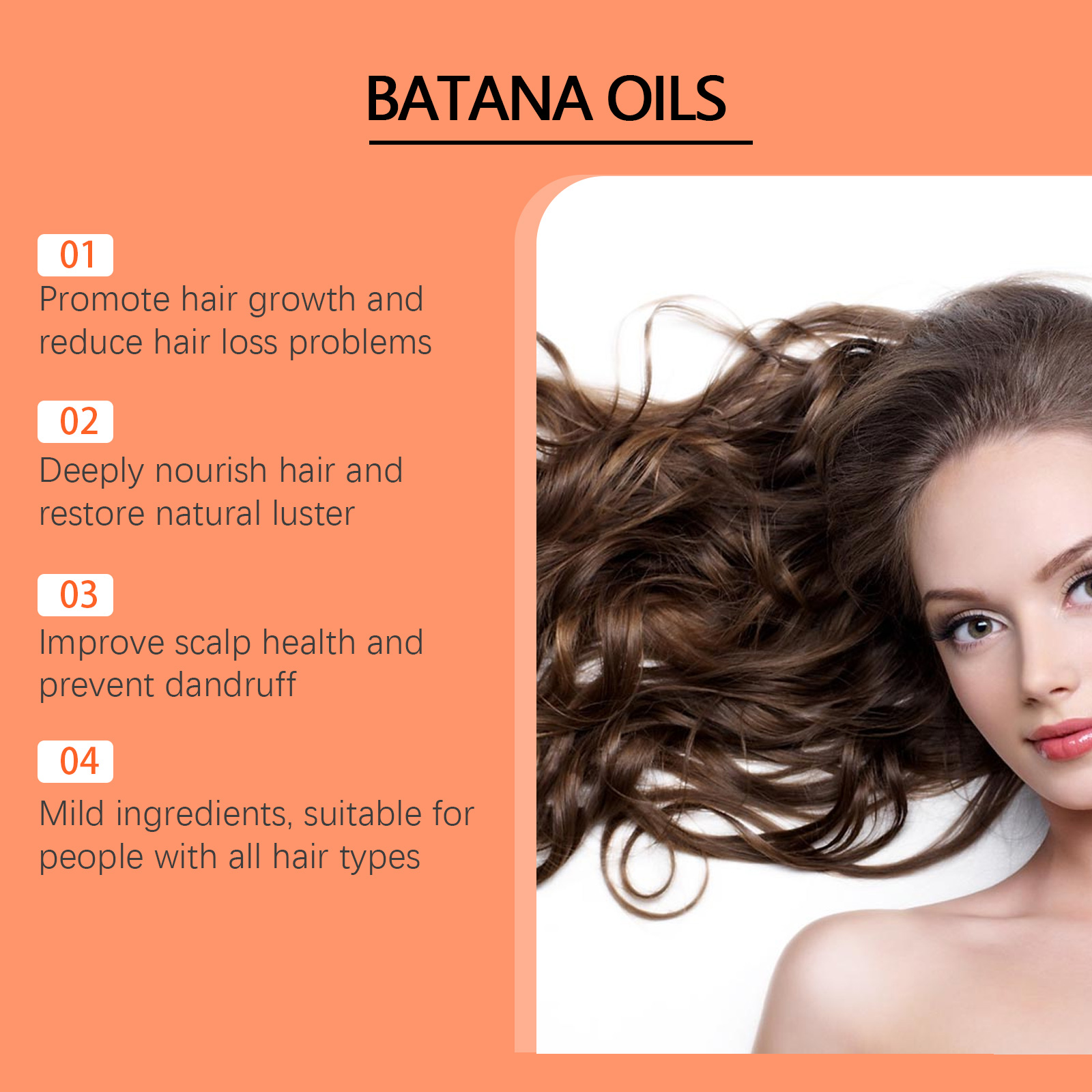 Our Batana hair oil contains palm oil, vitamin E, glycerin. It can be nutritious, stimulate hair follicles, and promote hair growth. Prevent hair loss, strengthen hair roots, reduce hair loss, suitable for people with severe hair loss; Deep nourishing hair and scalp, repair dry damaged hair. Its use method is very simple: 1. Wash and dry your hair first; 2. Apply proper amount of Batana essential oil to scalp; 3. Gently massage with fingertips to fully absorb. Batana hair growth oil provides antioxidant protection and retards hair aging. Helps control scalp oil production and reduce oil. Long term use makes hair smooth and shiny. Increase hair density and make hair look thicker. Anti-inflammatory effects that help relieve scalp inflammation and discomfort. Prevent scalp infections and maintain good hygiene.