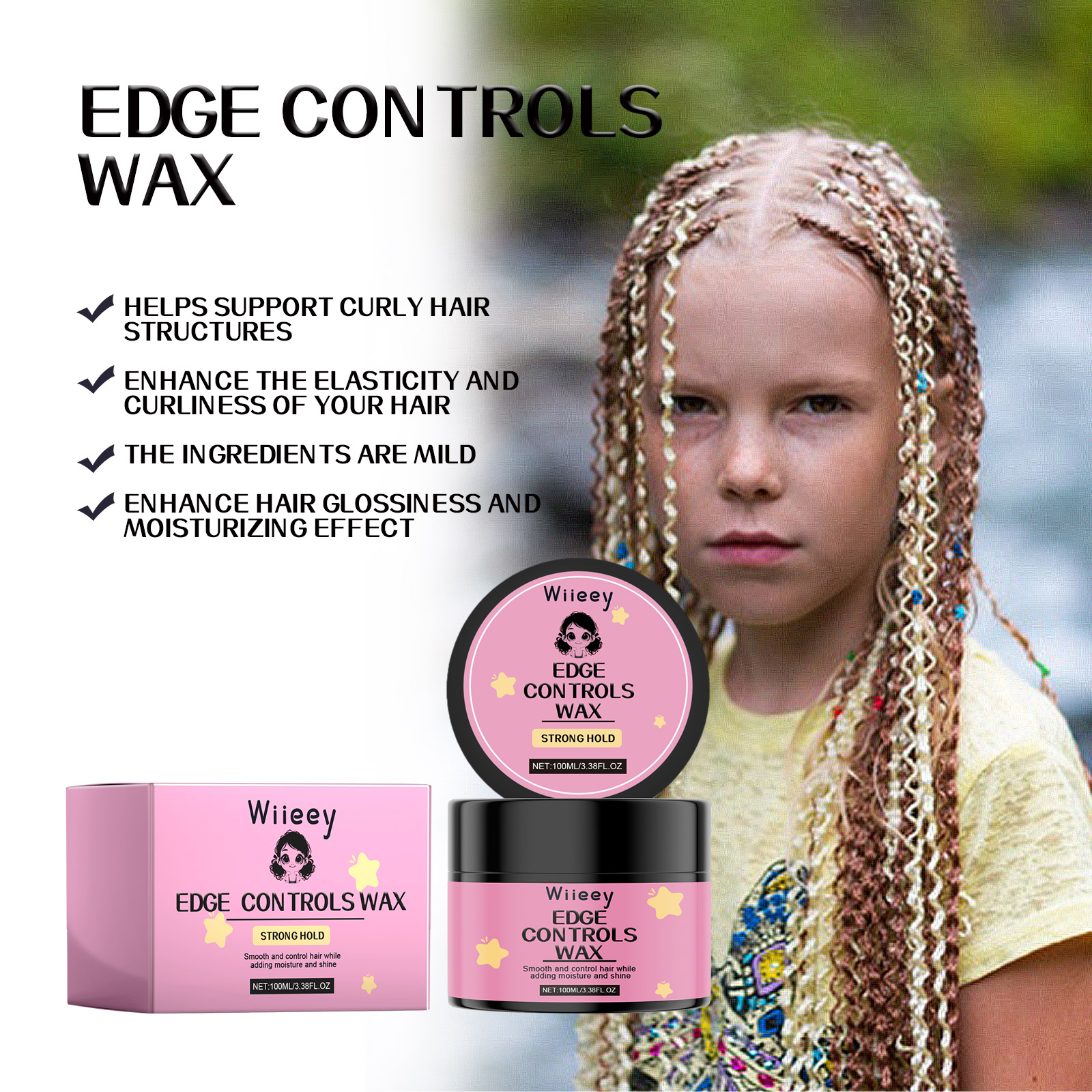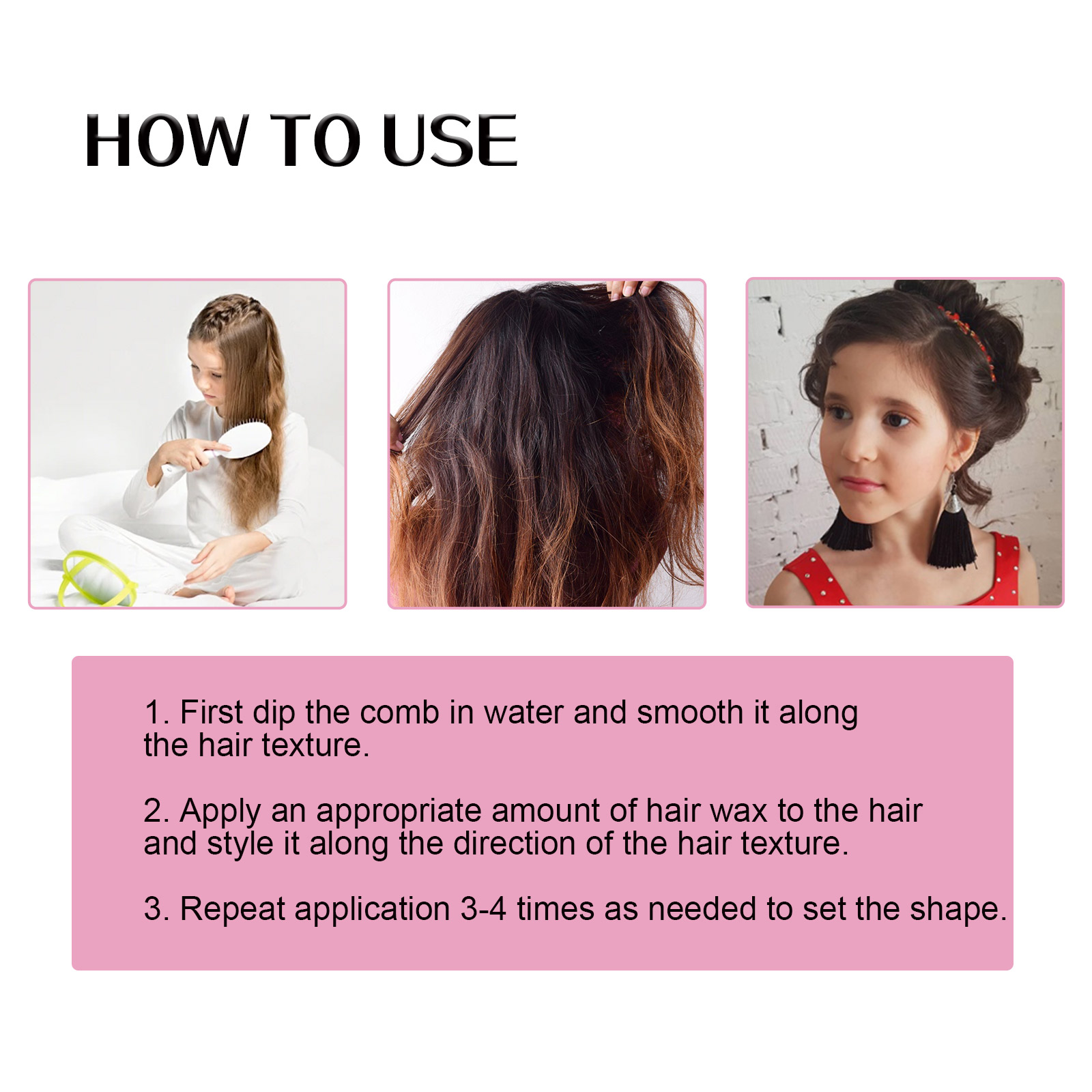 Our holding hair wax contains carbomer, 1, 2-hexanediol, beeswax. It can increase the elasticity and frizz of hair, making it fast and long-lasting. Its use method is very simple: first dip the comb in water, smooth along the hair, apply the right amount of hair wax to the hair, shape along the hair direction, repeat the application 3-4 times as needed to set the shape. It can help support the curly hair structure, enhance the elasticity and curl of the hair, enhance the hair gloss and moisturizing effect.