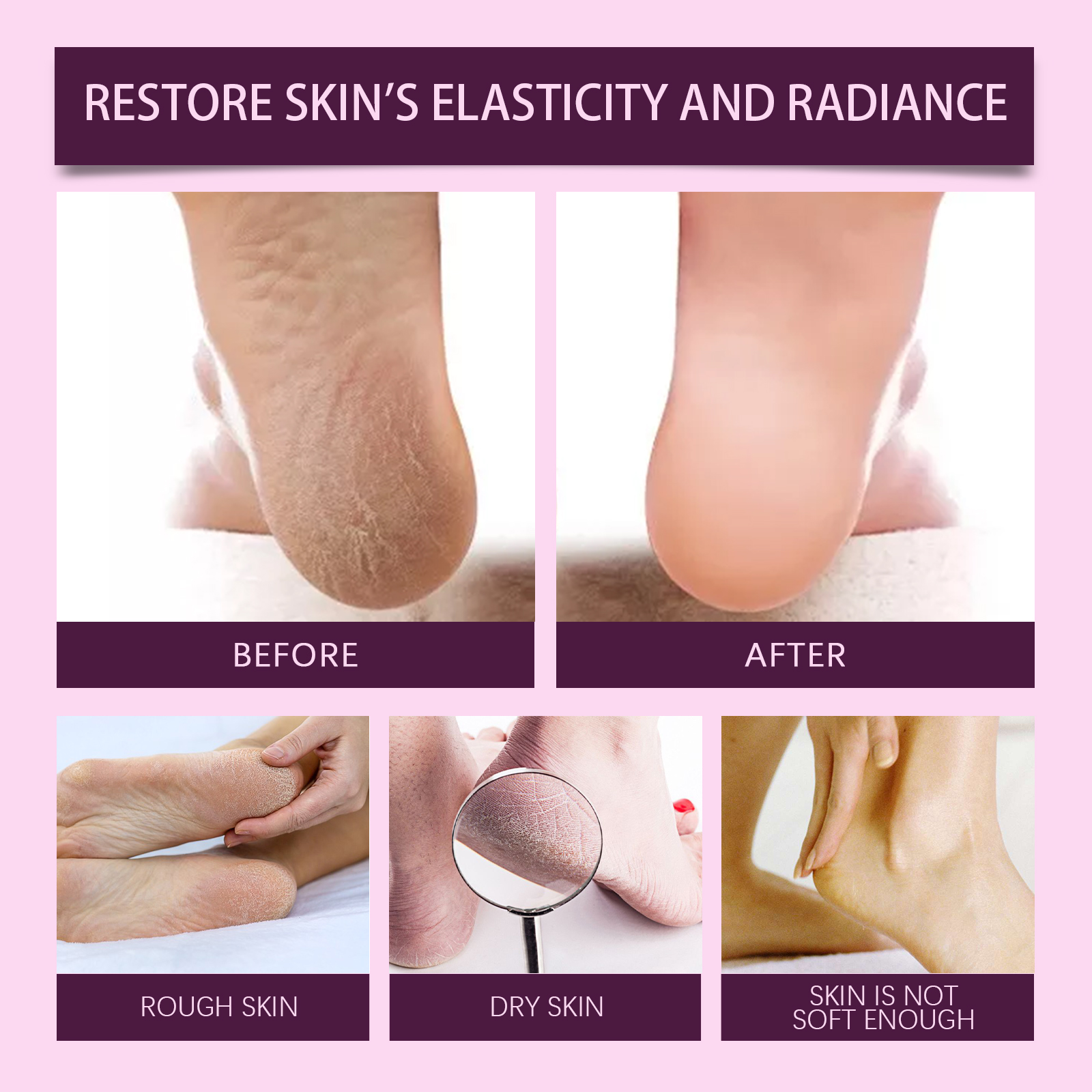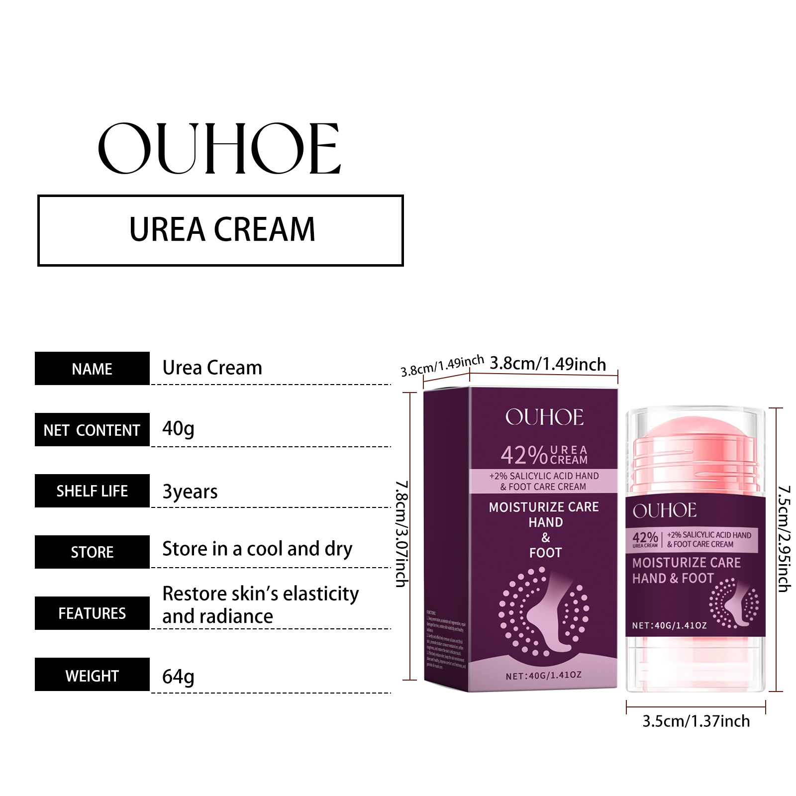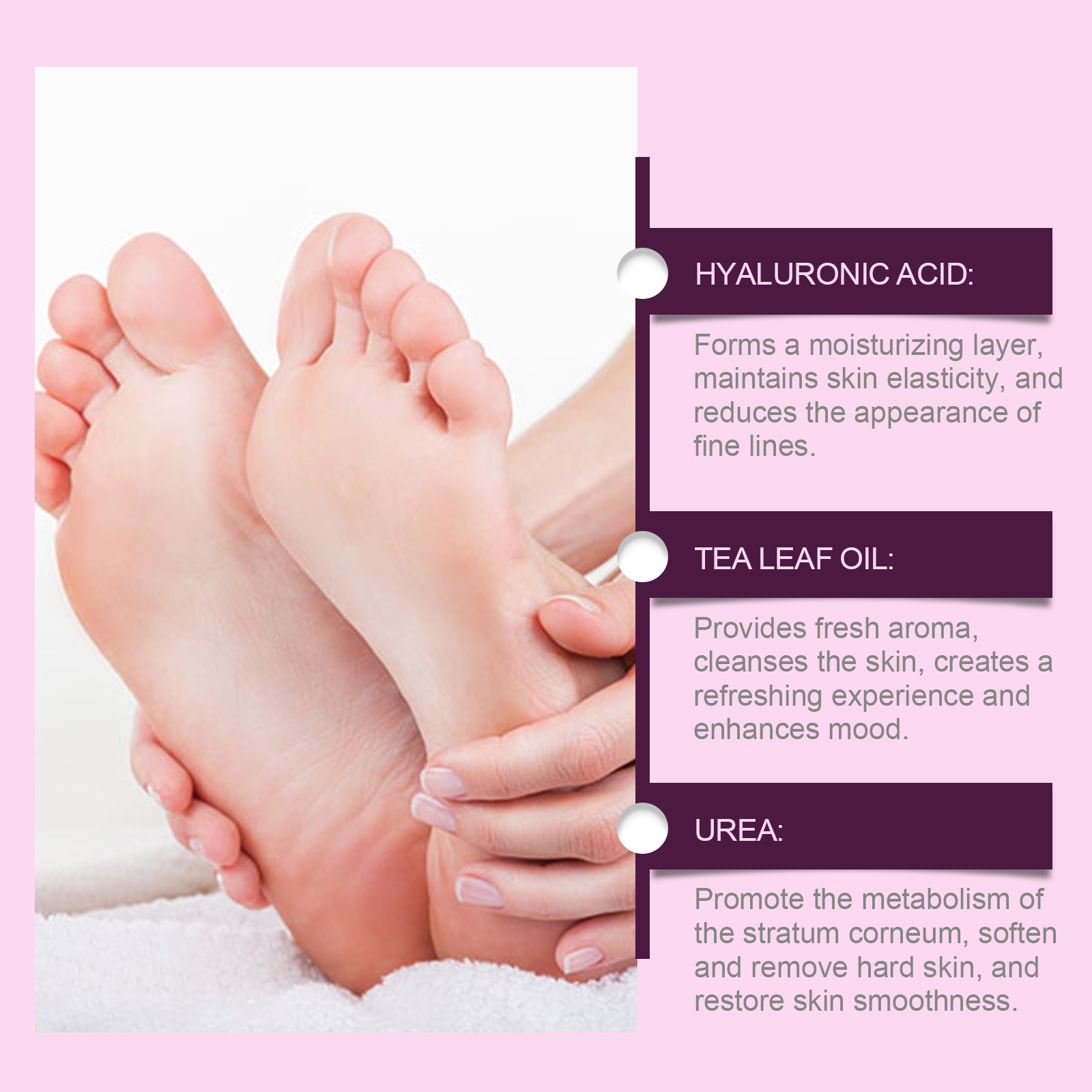 Our heel care cream contains urea and salicylic acid. It hydrates effectively, creating a moisture barrier that locks in moisture. Its use method is very simple: clean and dry the feet, take appropriate amount of this product evenly apply to the heel, gently massage until absorbed. And can promote the metabolism of the stratum corneum, soften and remove the skin hardening, restore the skin smooth.