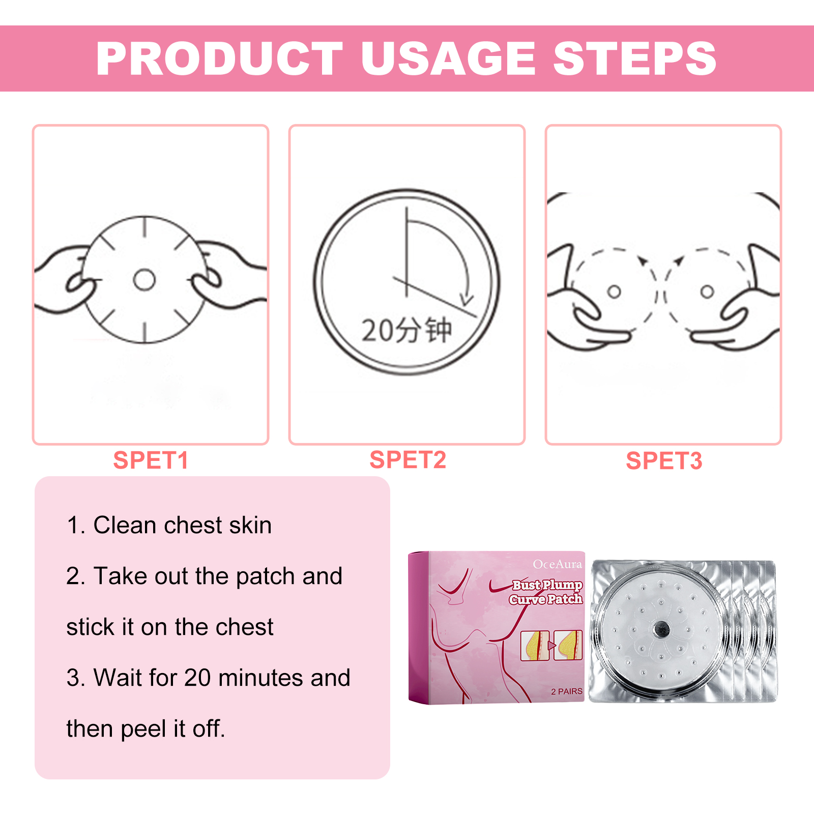 Our Bust Plump Curve Patch contains crystal collagen. It can stimulate breast growth, lift and shape the breast, increase the size of the breast, improve the overall appearance of the breast, and keep the skin soft and elastic. The way to use it is very simple: clean the chest skin, take out the product on the chest, wait for 20 minutes to tear off. It can effectively lift and tighten sagging breasts, help improve skin elasticity, promote a youthful appearance, stimulate collagen production, and thus strengthen breast tissue.