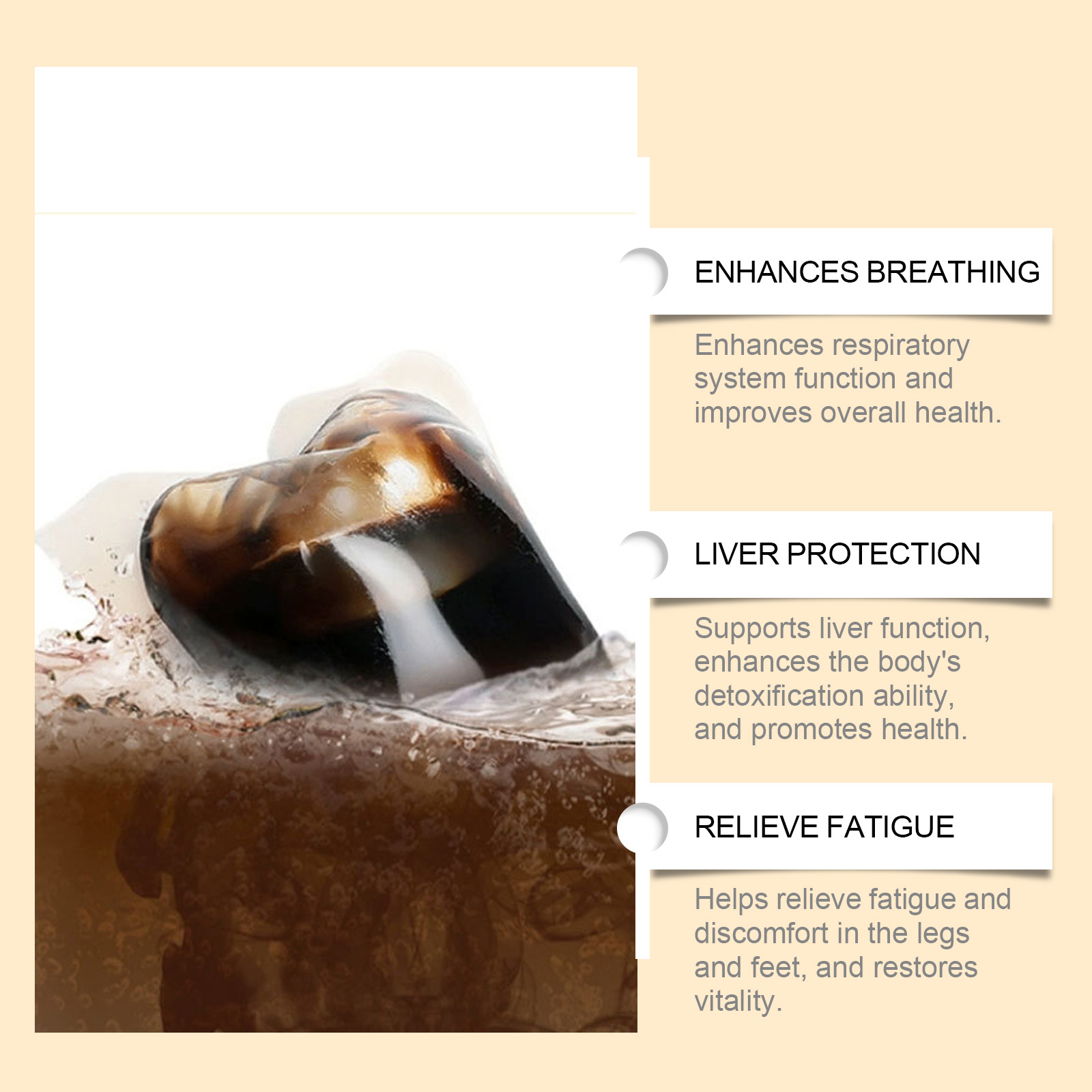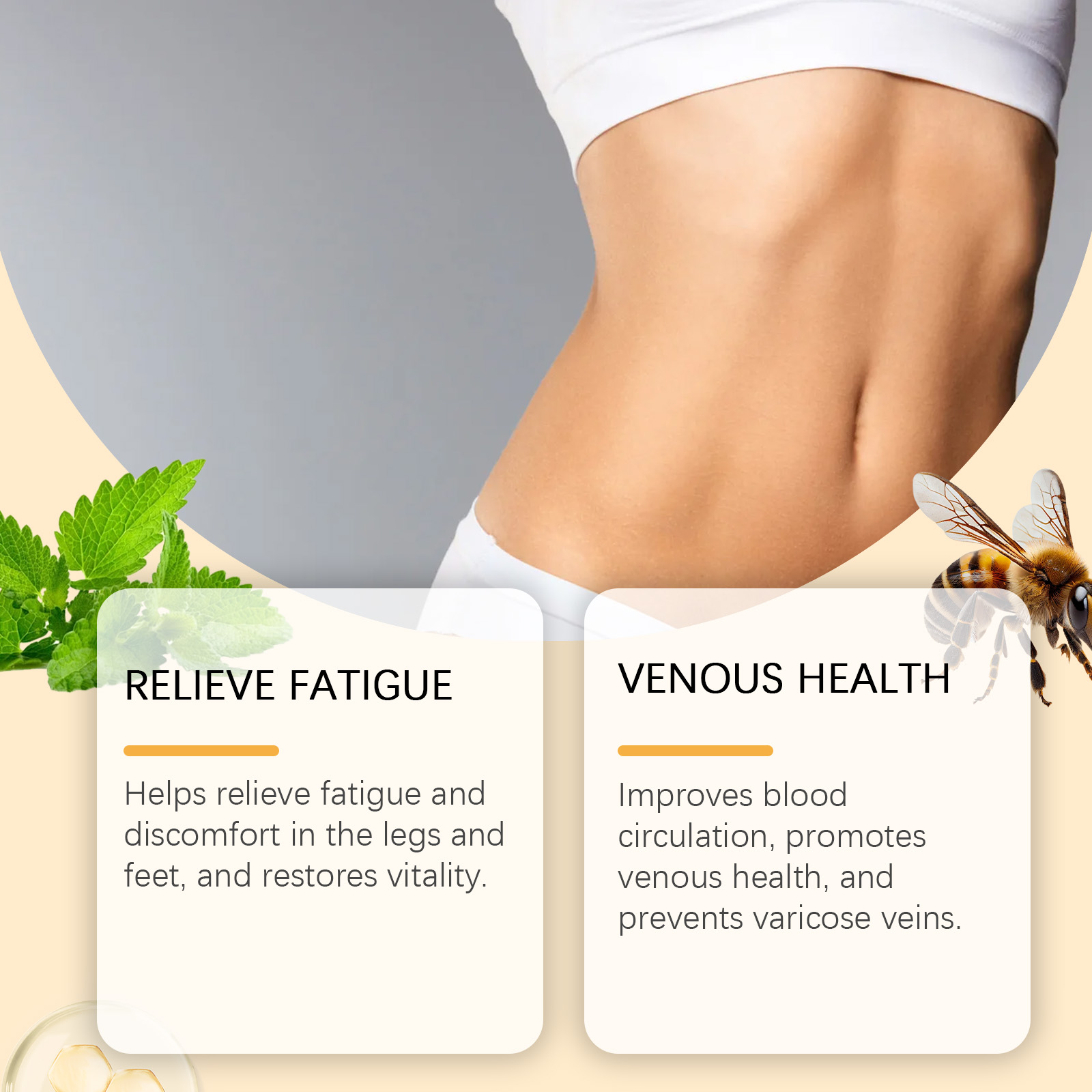Our herbal slimming foot bath beads contain mint leaves and glycerin. It can relieve fatigue and discomfort in the legs and feet and restore vitality. Its use is simple: prepare a bucket of hot water at 40-50°C, put one pill of this product into the water, wait for it to dissolve, and then soak your feet for 15-30 minutes before drying. And can stimulate and speed up the body's metabolic process.
