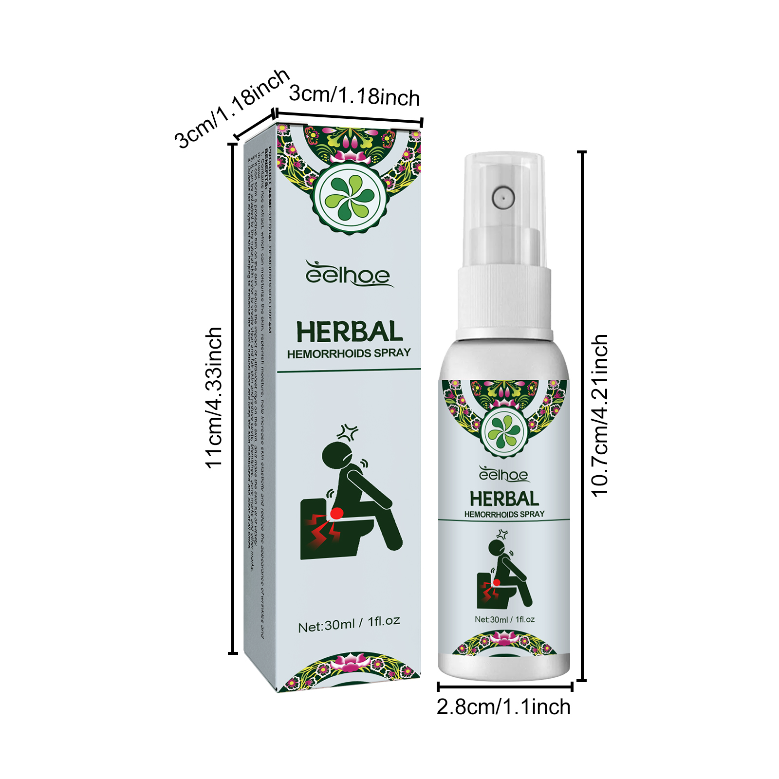 Our herbal hemorrhoids spray contains honeysuckle extract, purslane extract. It soothes damaged tissue and speeds its recovery. The way to use it is simple: 1. Clean and dry the affected area. 2. Take 1-2 pumps and spray directly on the affected area. 3. It is recommended to use for 1-2 weeks, and the effect will be better. And can relieve pain, itching and other discomfort.