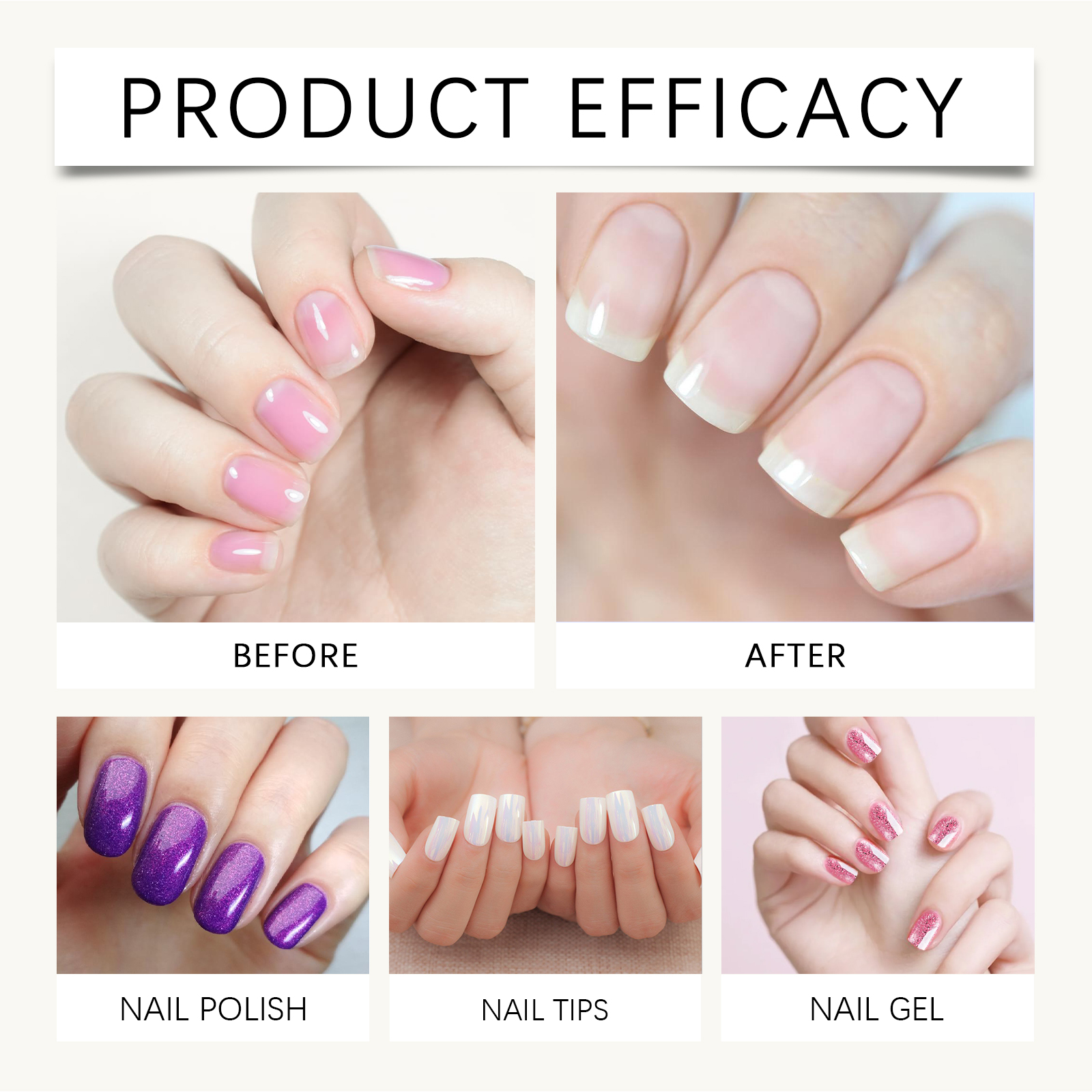 Our herbal nail creams contain vitamin E and propylene glycol. It thickens nails and improves toughness. Its application method is very simple: clean and dry the nails and surrounding skin, take a proper amount of nail polish, evenly apply to the nails; Massage gently with your fingertips to absorb. And easy to use, suitable for daily care, and easy to maintain the condition of nails.