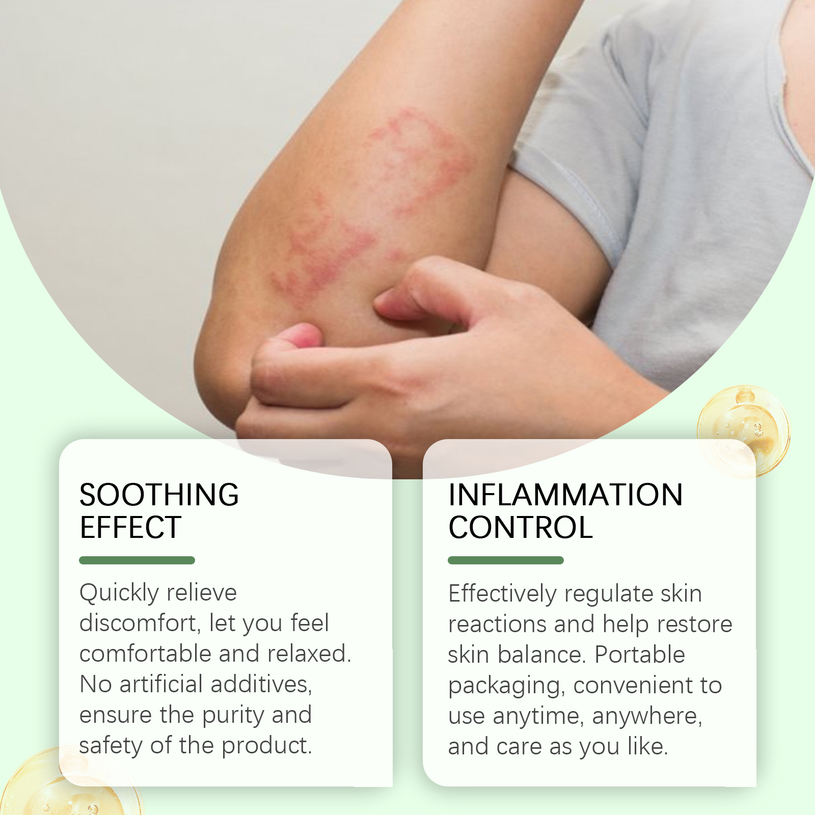 Our herbal skin soothing cream contains snow root extract, tocopherol (vitamin E), aloe vera leaf extract. It can effectively regulate the skin response to help restore skin balance portable packaging, easy to use anytime, anywhere, as you want to care. Its use method is very simple: apply appropriate amount of this product to the affected area, gently massage to promote absorption. And can easily absorb, make the skin feel fresh.