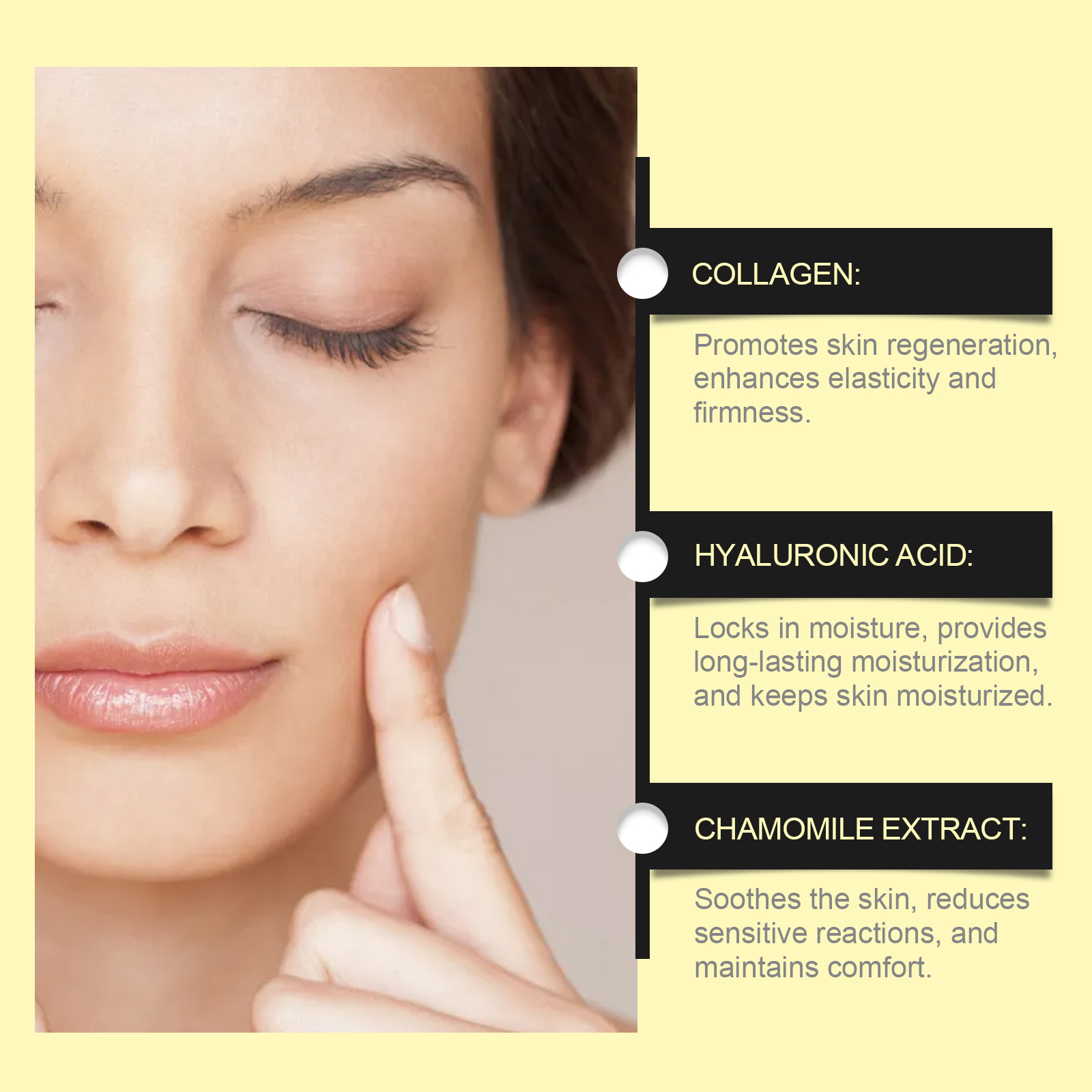 Our herbal repair essence contains chamomile extract, ceramide. It locks in moisture and keeps skin hydrated for a long time. Its use method is very simple: clean the facial skin, keep the skin dry, take an appropriate amount of essence, evenly apply on the face, gently massage to promote absorption. It also soothes the skin and reduces irritation.