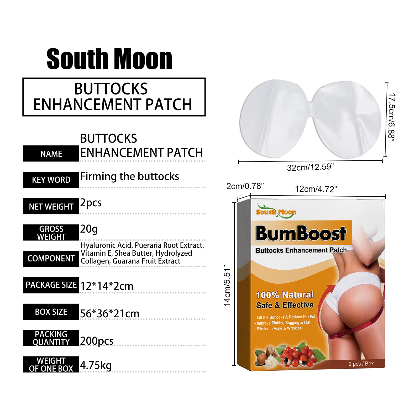 Our butt lift contains hydrolyzed collagen and guarana fruit extract. It can speed up blood circulation, reduce fat accumulation in the buttocks, reduce the appearance of fat, and make the buttocks firmer and fuller. Its use method is very simple: the first step, clean and dry the buttock skin, the second step, remove the patch, stick on the buttock for about 10 minutes, the third step, remove the patch, gently massage with the hand, rinse with water, the fourth step, daily use can obtain better results. And it can make a different you.