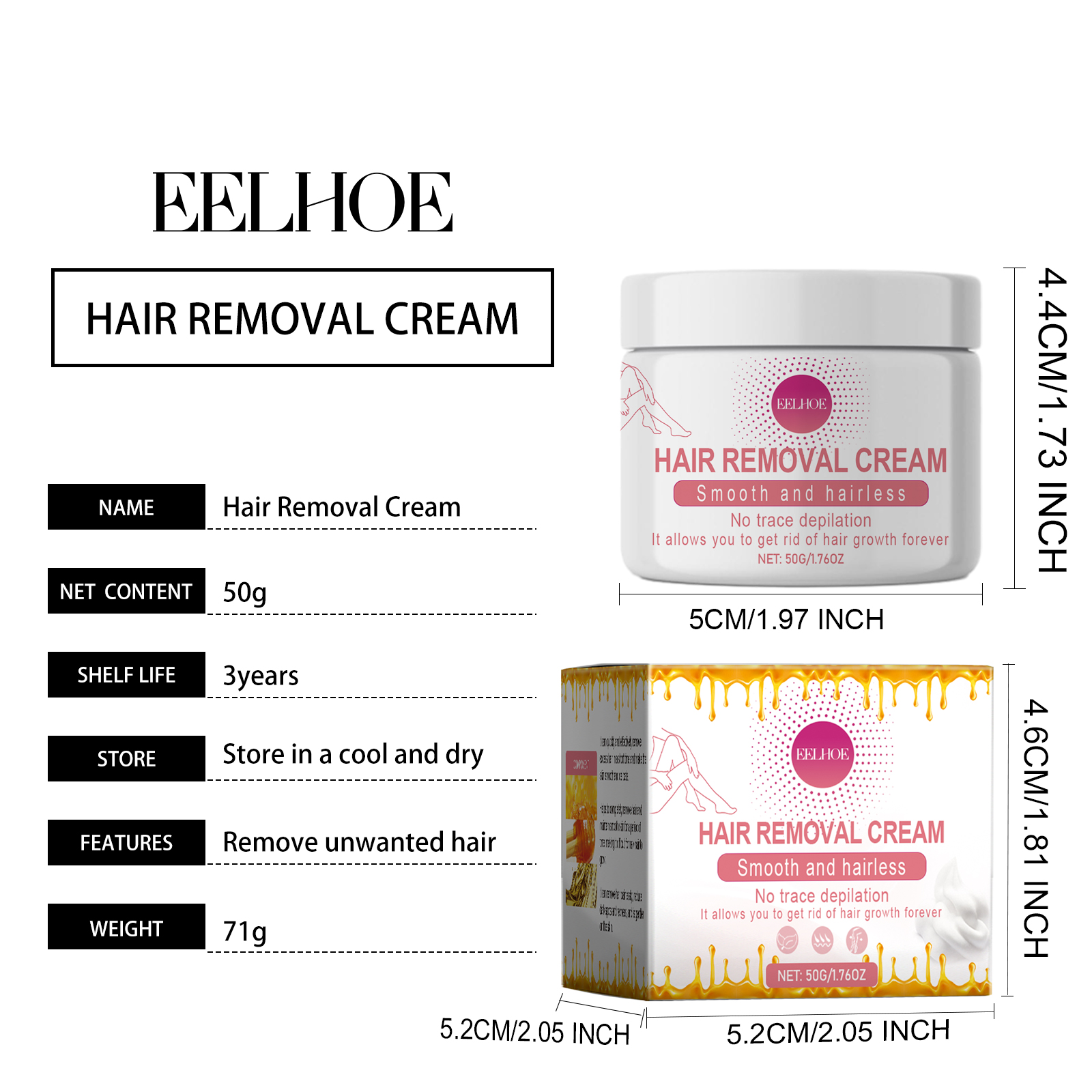 Our Hair Removal Cream contains honey, vitamin E, aloe vera extract. It can quickly and effectively remove excess hair in a short period of time, make the skin smooth and delicate, help to completely remove hair, and maintain smooth skin for a period of time, not easy to grow new hair. Its use method is very simple: evenly apply the appropriate amount of this product to the desired area, leave for 5 minutes, wipe off the residue, and finally rinse with clean water. It can remove hair without pain, reduce black spots and redness, and is more gentle on the skin. This product contains moisturizing ingredients, so that you can remove hair while moisturizing the skin and reducing dryness.