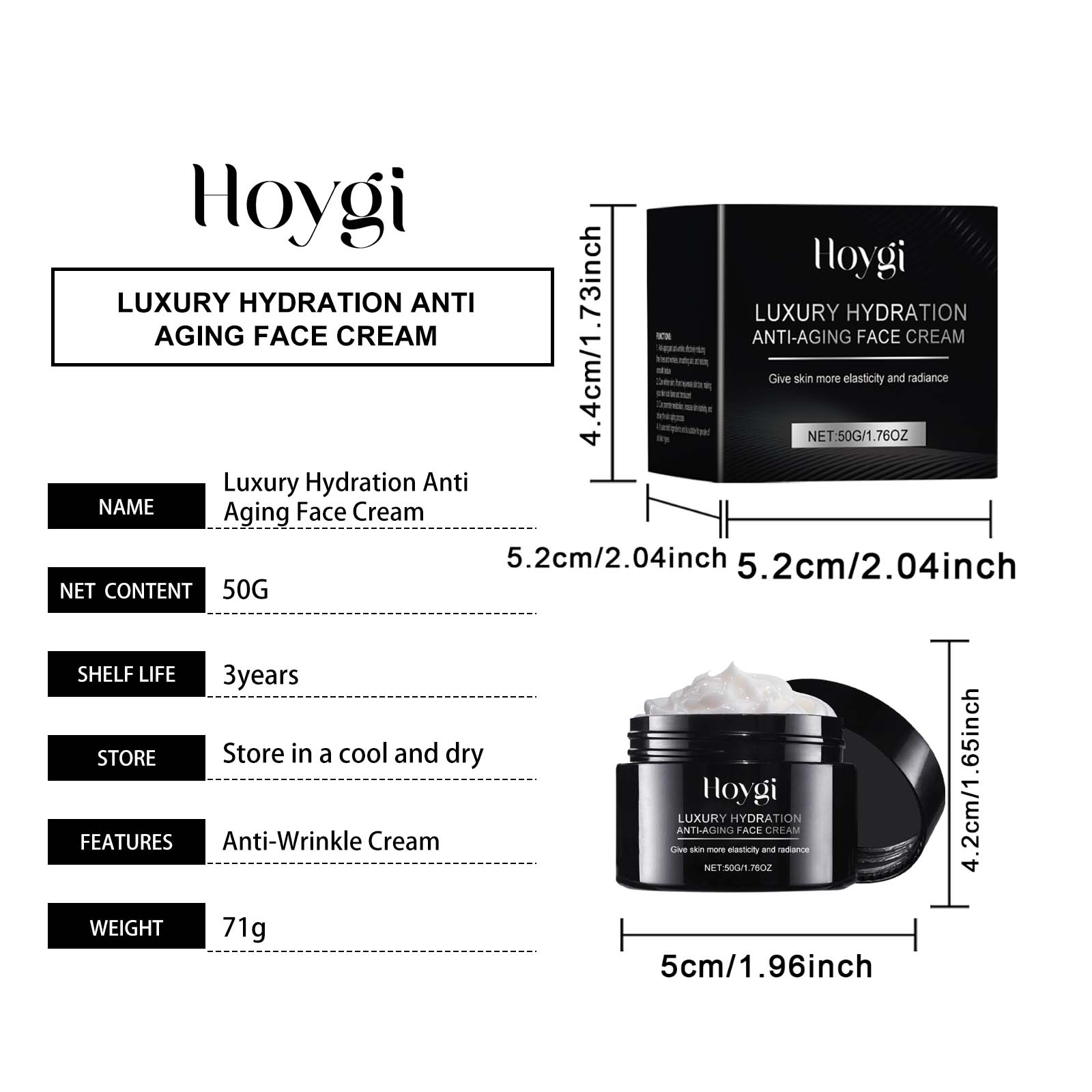 Hyaluronic Acid Anti-Wrinkle Face Cream Moisturizing and Hydrating Cream