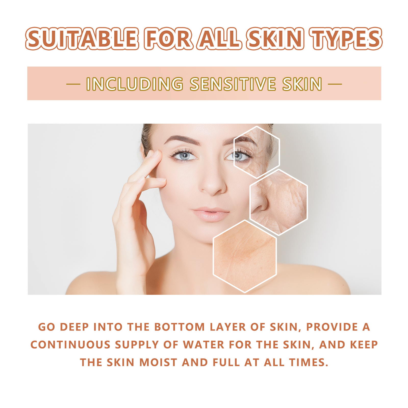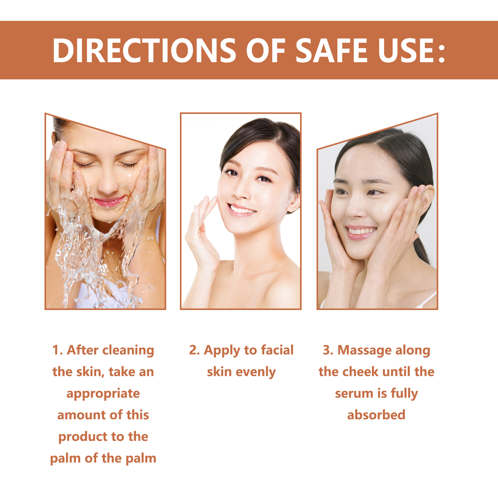 Our hyaluronic acid facial serum contains hydrolyzed collagen, arbutin and pearl extract. It can reduce wrinkles and fine lines, slow down skin aging, make skin look younger, improve uneven skin tone, make skin tone more uniform and bright, can deeply nourish skin, increase skin water content, keep skin hydrated. Its application method is very simple: after cleaning the skin, take appropriate amount of this product in the palm, evenly apply to the face skin, massage along the cheeks until the essence is completely absorbed. It can penetrate into the bottom of the skin, provide a steady stream of moisture for the skin, and keep the skin hydrated and full at all times.