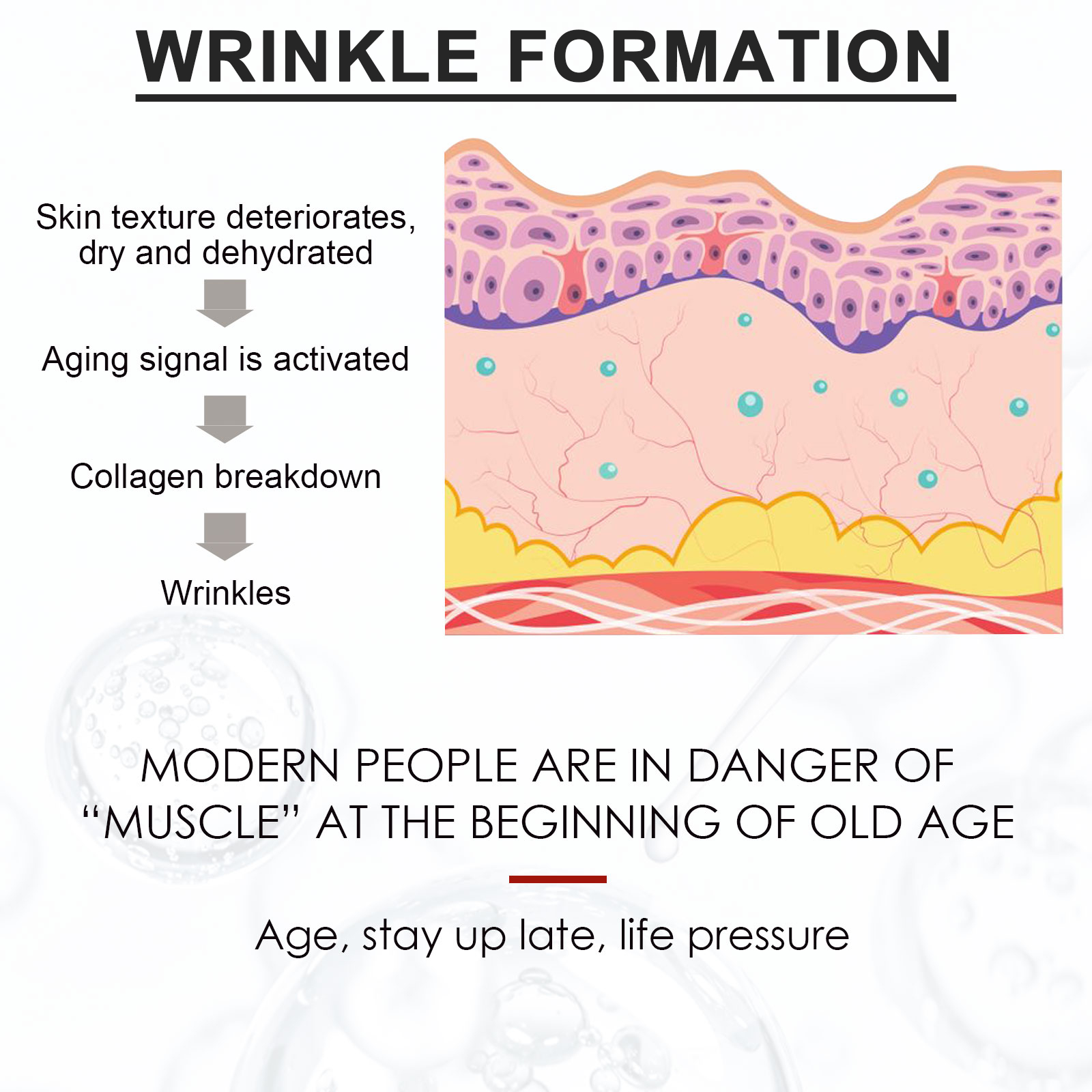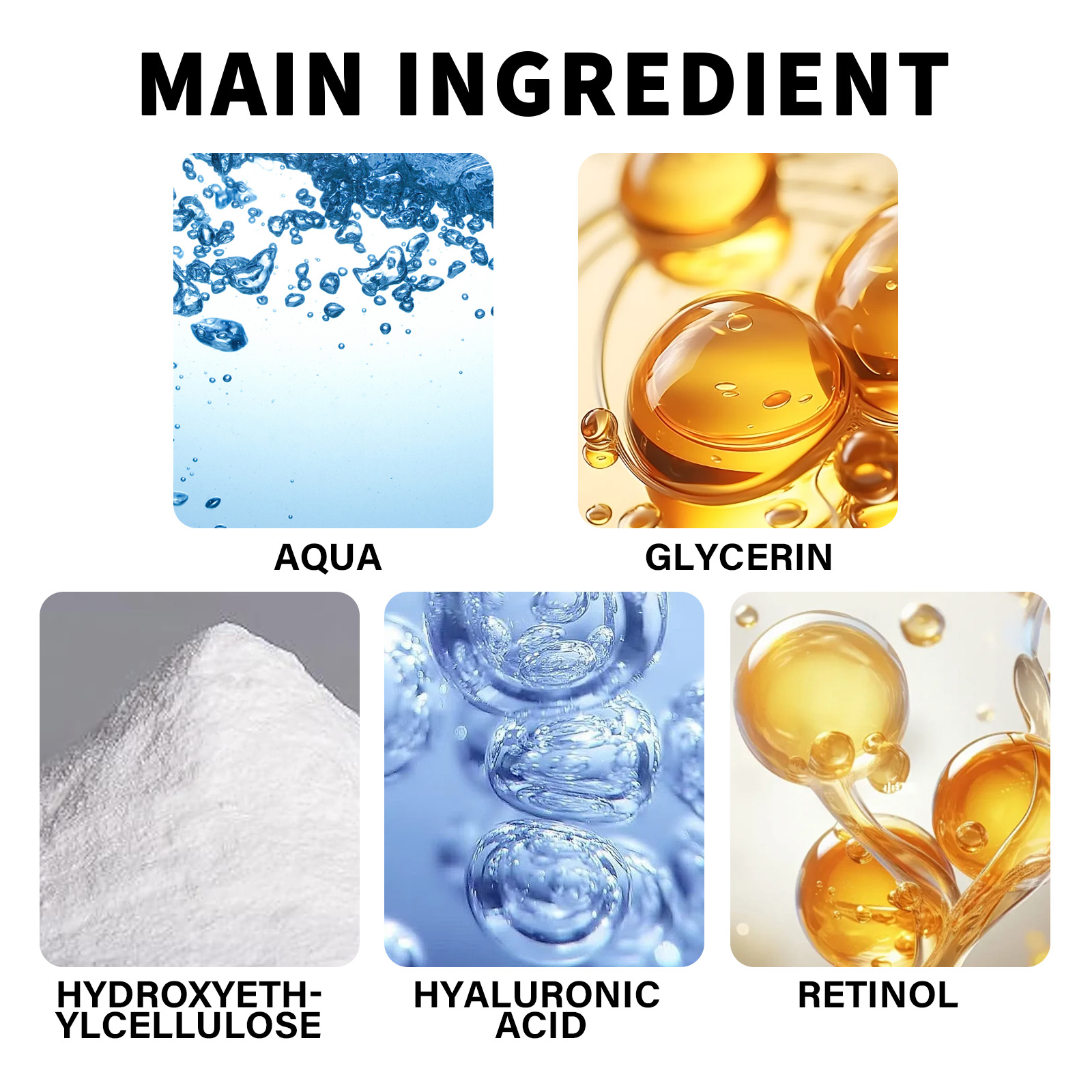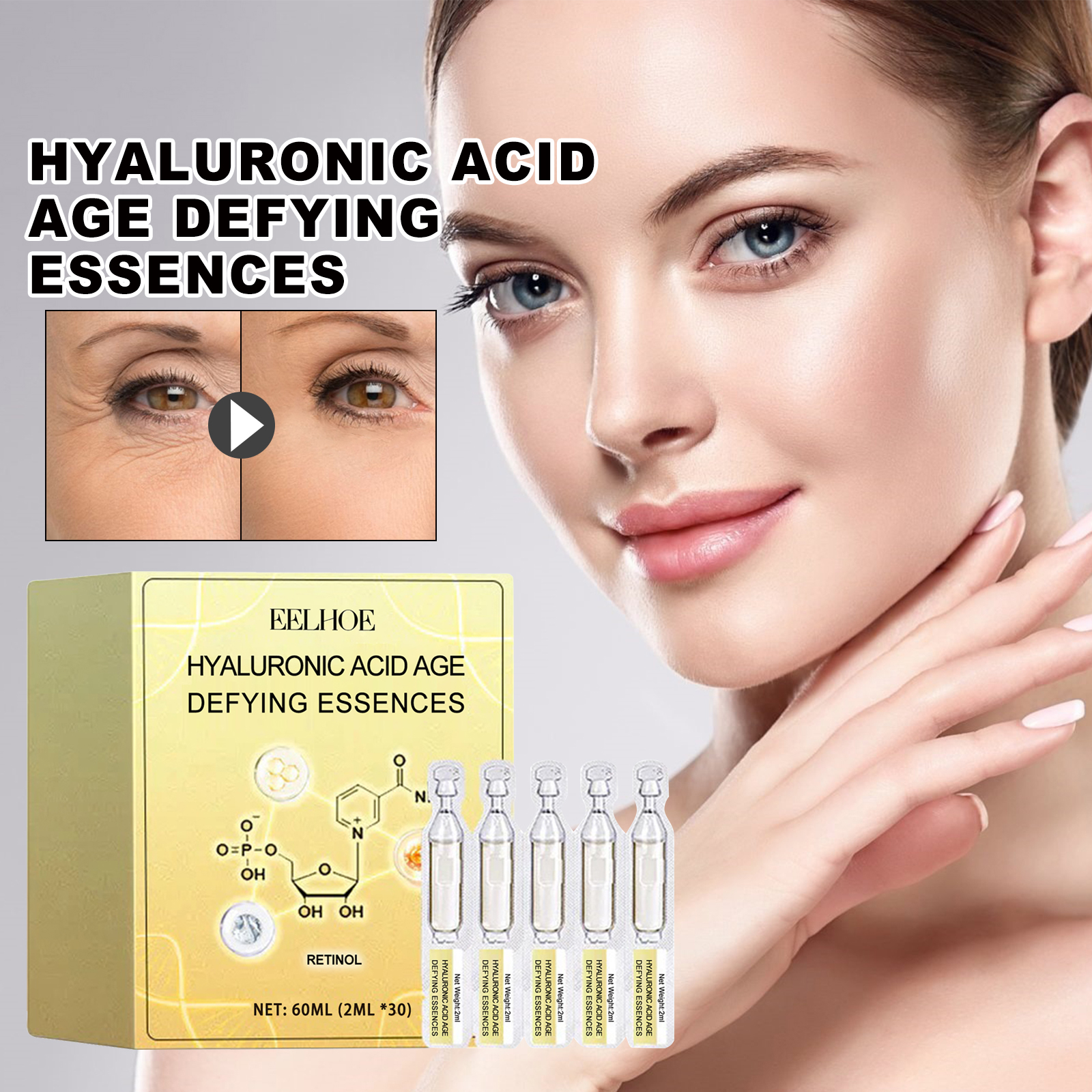 Our hyaluronic acid firming serum contains hydroxyethyl cellulose, hyaluronic acid and retinol. It reduces the appearance of fine lines, wrinkles and age spots while locking in moisture and restoring smooth, firm and smooth skin. Its use method is very simple: after cleansing and toning, take a tube of essence in the palm, evenly apply on the face, gently massage in circles until absorbed, use every day, the effect is better. Smooth fine lines, remove melanin, lighten skin, make skin smooth and moist, improve skin quality.