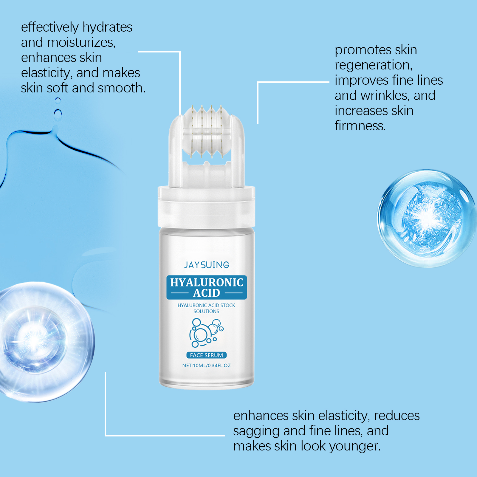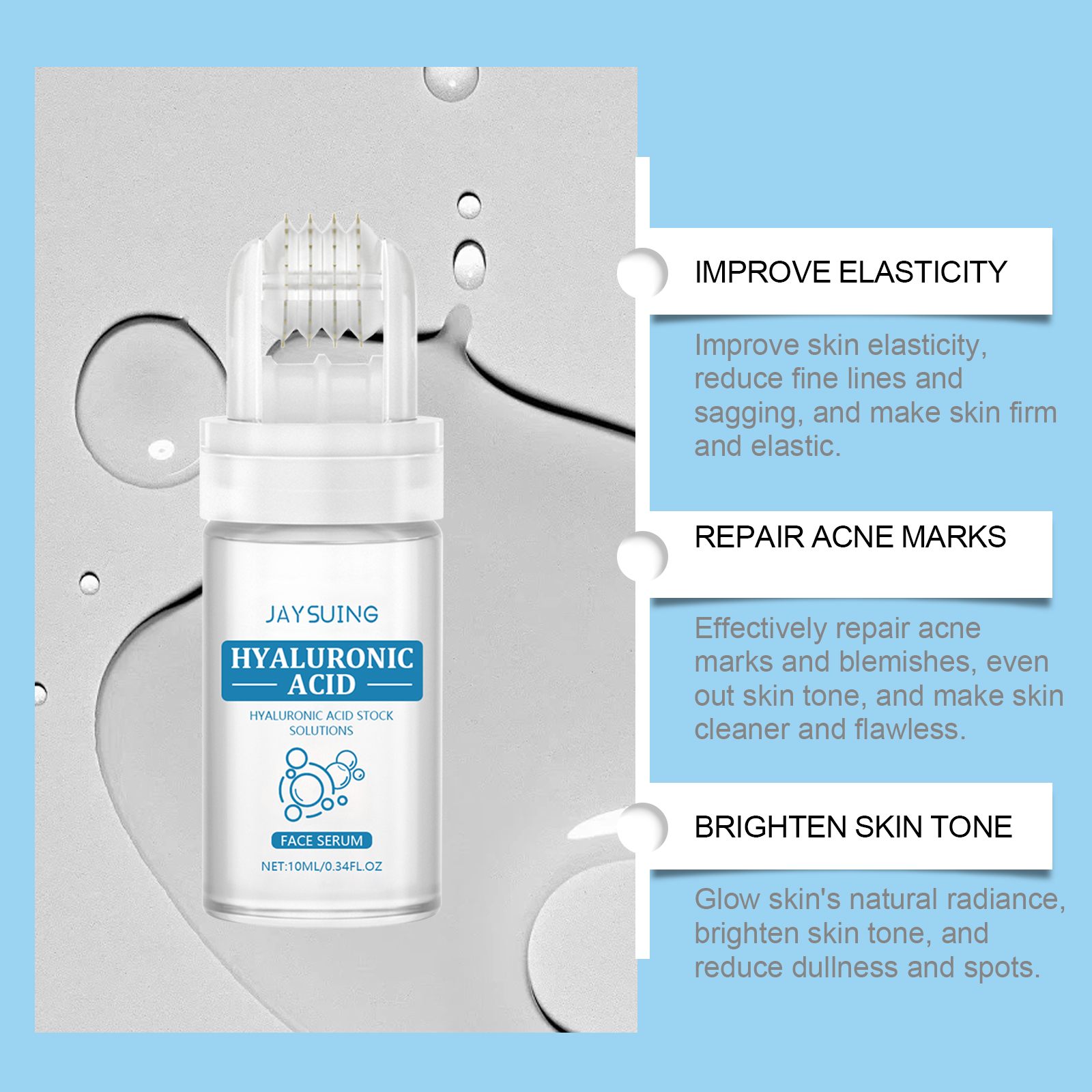 Hyaluronic Acid Roller Essence Improves Skin Pores Hydration Moisturizing Enhances Facial Radiance