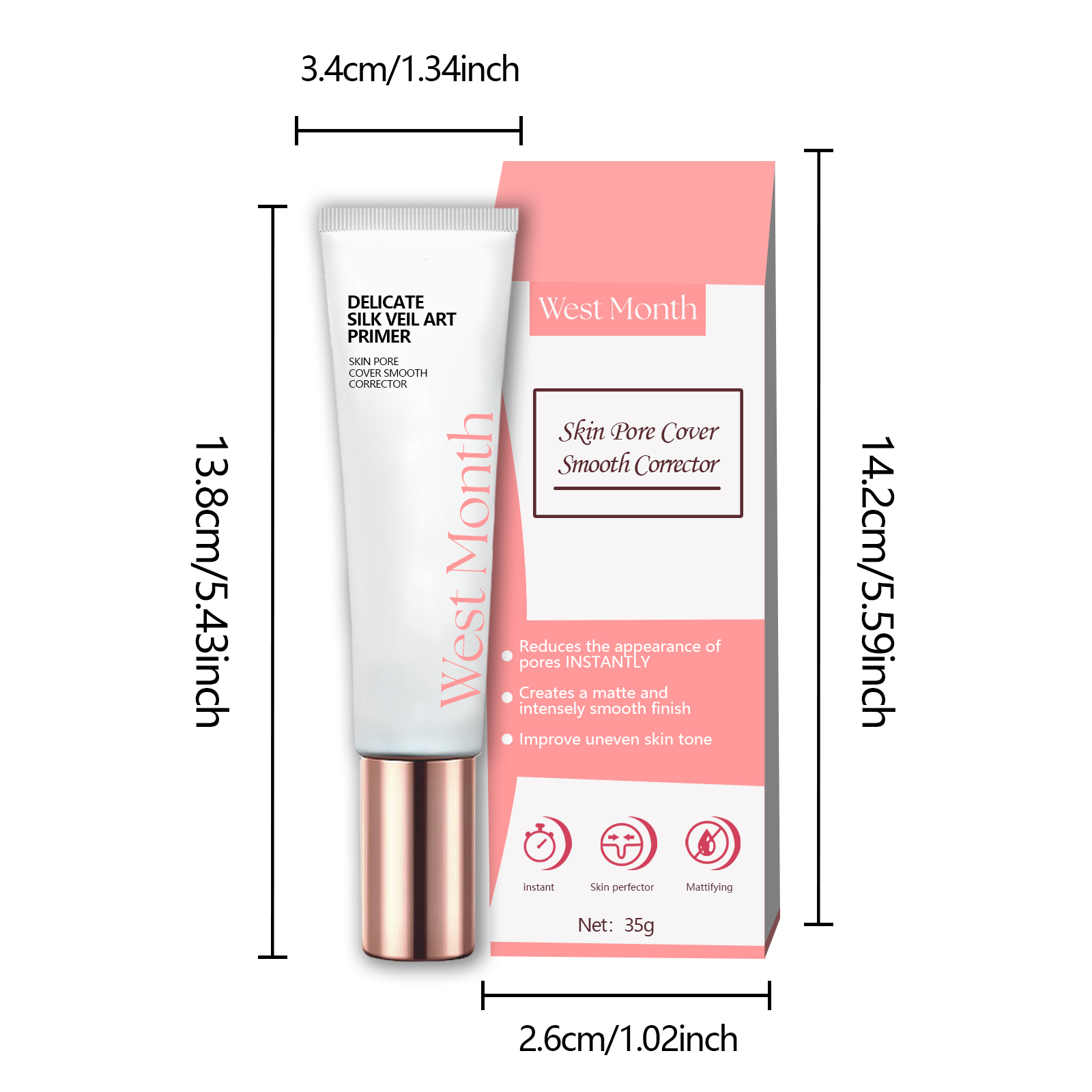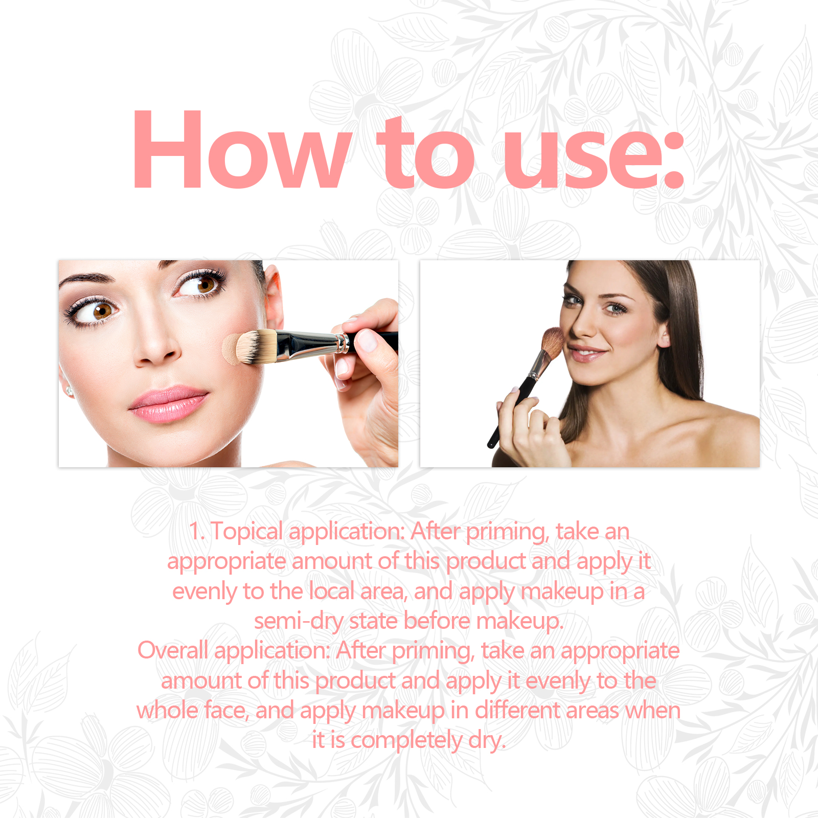 Our Invisible Pores primer contains hyaluronic acid and Centella asiatica complex root extract. It can enhance the durability of the makeup effect, make the makeup effect more delicate, extend the wearing time, and do not scatter the makeup smooth. Its use method is very simple: topical use: after applying makeup, take appropriate amount of this product evenly apply to the local area, and apply makeup in a semi-dry state before applying makeup. After applying makeup, take appropriate amount of this product evenly spread on the whole face, wait until completely dry, apply makeup on different parts. And it can improve the uneven skin tone, correct the skin tone and dullness, lighten the skin tone, and lay the foundation for the next even makeup.