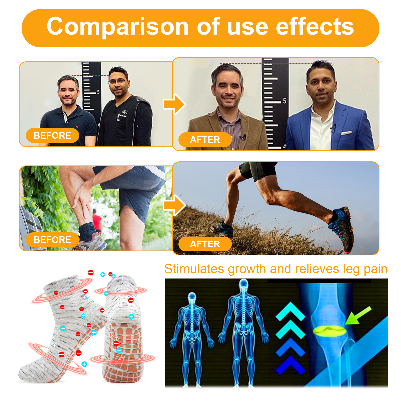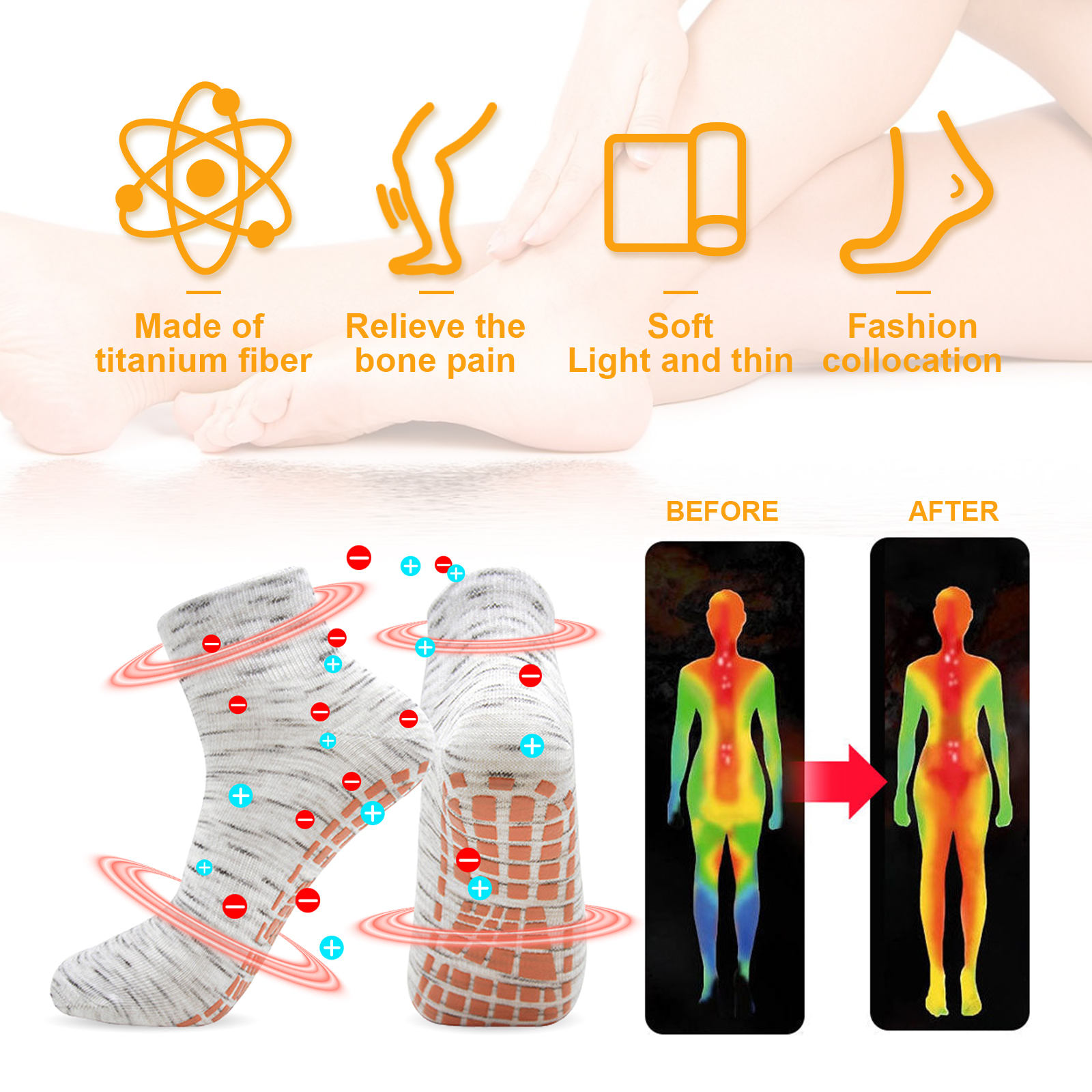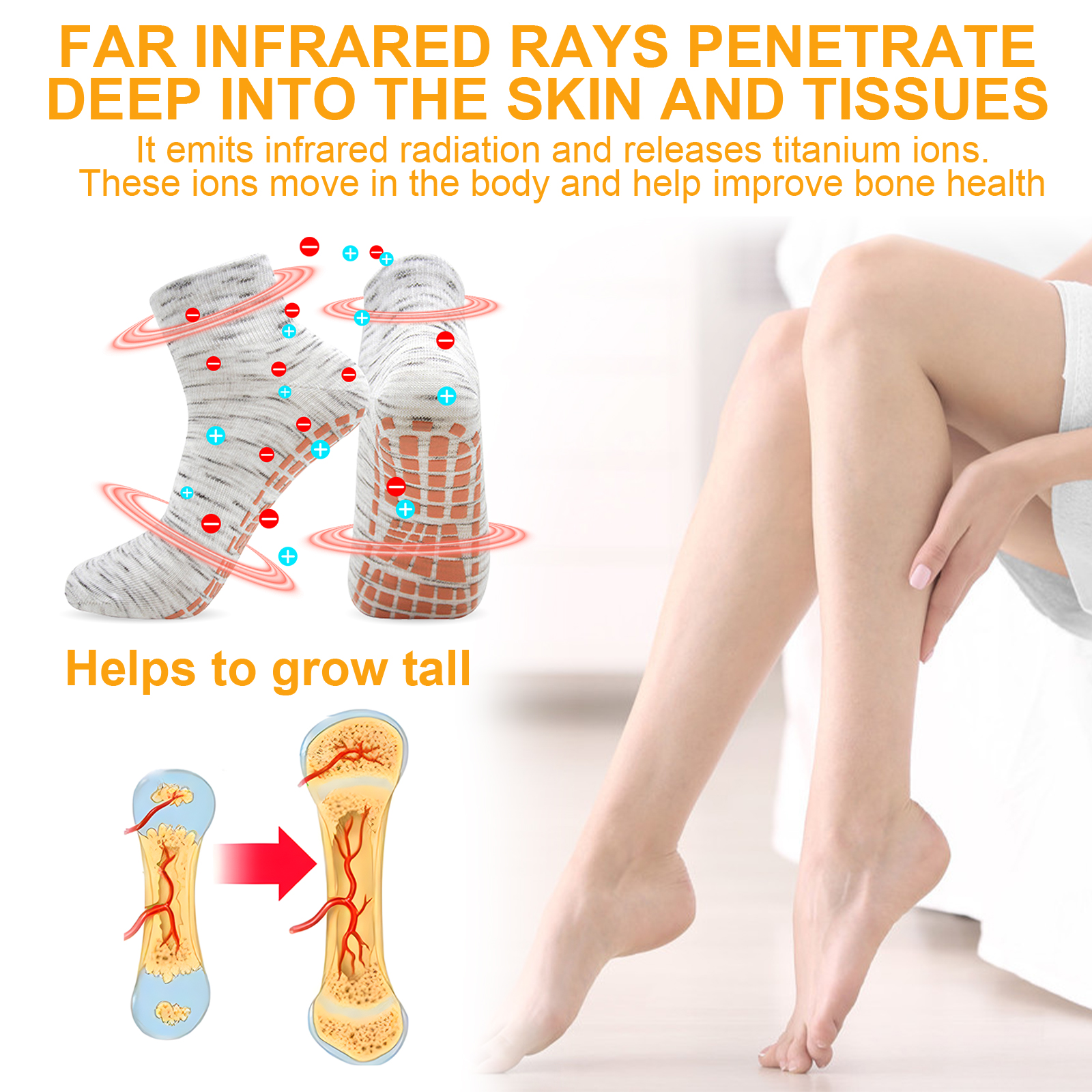 Our Warm Socks contain ultra-fine titanium fiber, nano coating. It can emits infrared radiation and releases titanium ions, help improve bone health, thereby helping to grow taller, relieve bone pain and reduce leg cramps. Its application method is very simple: Clean and dry feet. Wear this product on your feet. Just carry out your daily activities as usual. Made of soft material, which can keep feet warm and comfortable.