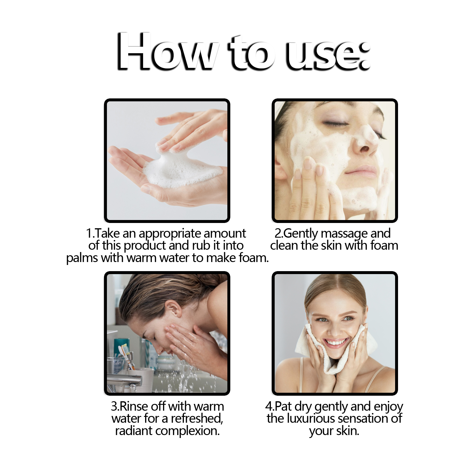 Our Jasmine cleanser contains jasmine rice fermented filtrate, jasmine flower extract, provitamin B5. It can 1. Clean facial pores, restore skin shine, remove fine lines on the skin, relieve sensitive skin, and keep skin hydrated. Its use method is very simple: 1. Use method: Take appropriate amount of this product, knead palm with warm water to form foam. 2. Gently massage and clean skin with foam; 3. Rinse with warm water to give your skin a glow. 4. Pat dry and enjoy the luxurious feeling of skin. Our Jasmine cleanser effectively slows down the aging process, leaving your skin forever youthful, radiant, and stronger with time.