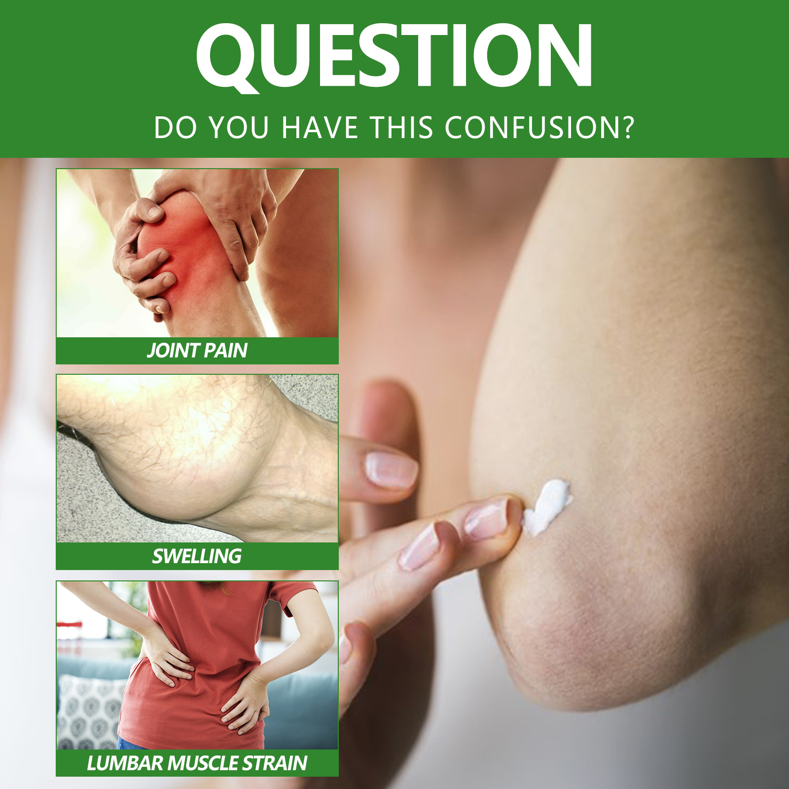 Our joint care cream contains glycerin, mineral oil. It can effectively reduce discomfort and swelling in joints and bones. Its use method is very simple: 1. Clean and dry the skin of the joint; 2. Apply proper amount of face cream evenly to joints; 3. Gently massage in a circle with your hand until absorbed; 4. Daily use can get better results. Joint care cream to treat knee swelling, fatigue injury, lumbar pain, grief, lumbar disc pain and other problems.