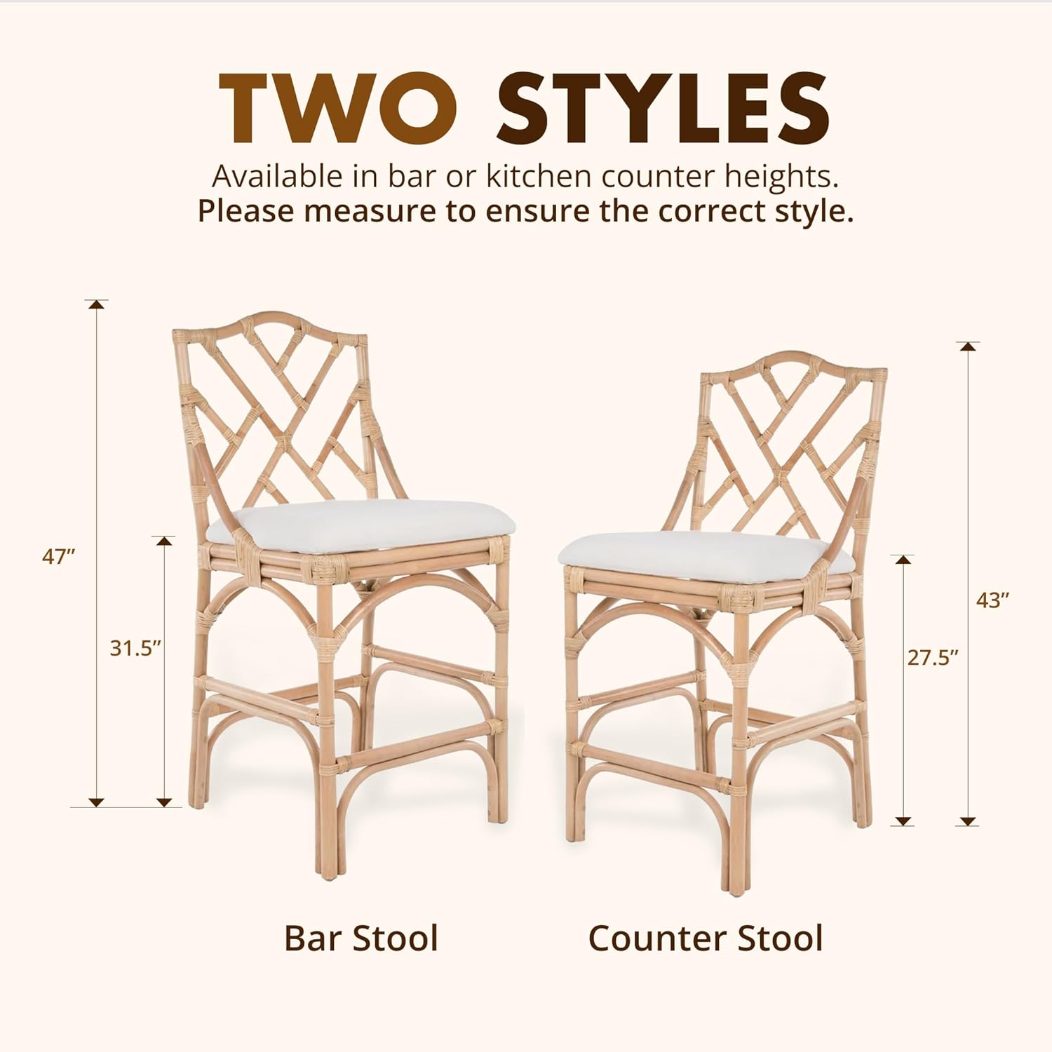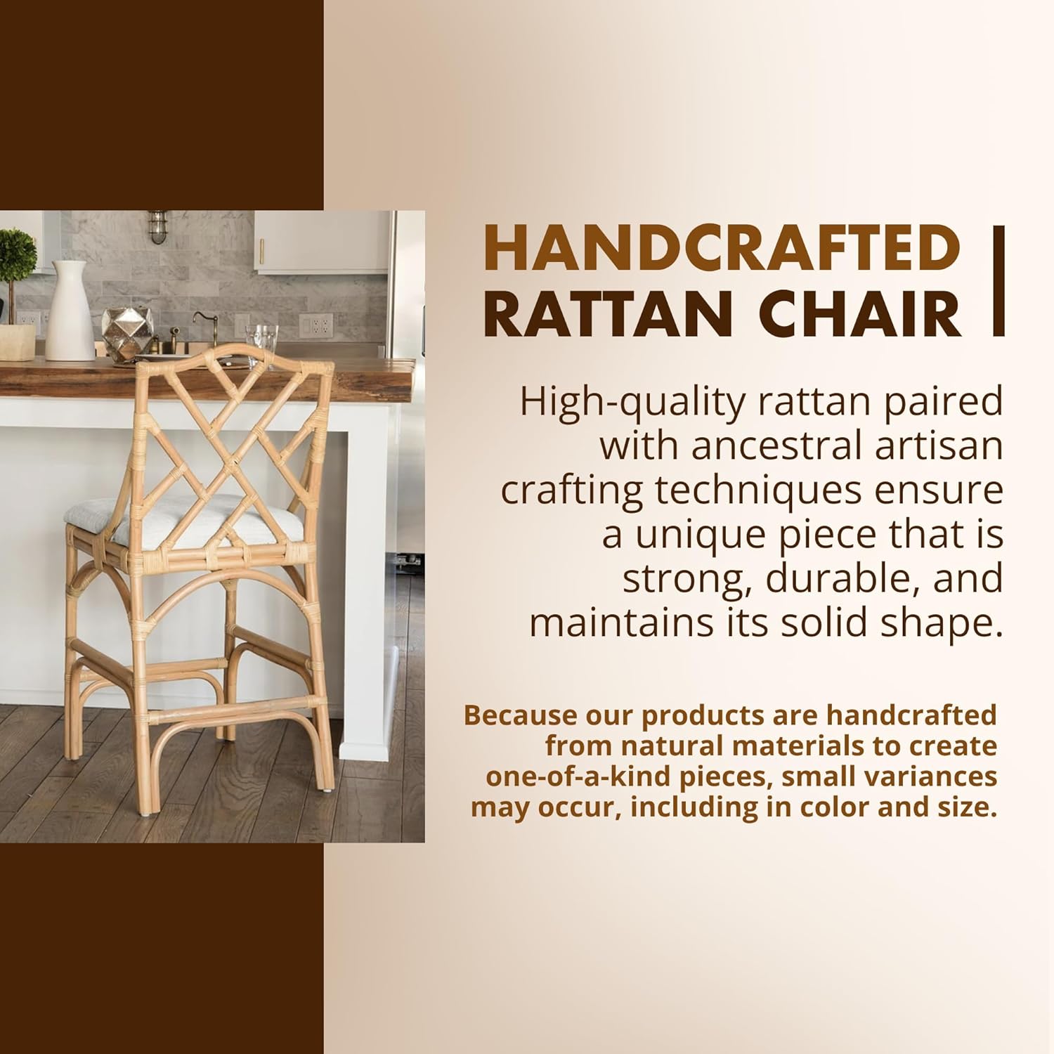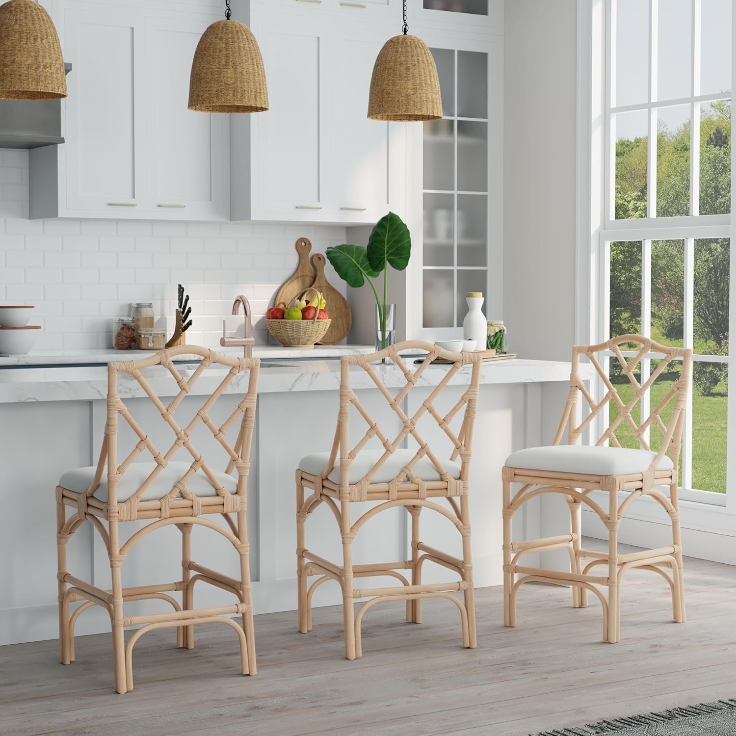 KOUBOO Chippendale Rattan Kitchen Counter Chair, Kitchen Island Seating, Kitchen Furniture, Bohemian Decor, Contemporary Seating, Off White Upholstery, Natural