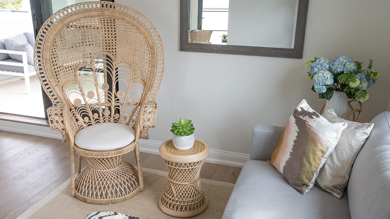 KOUBOO Rattan with Seat Cushion, Natural Color Lady Peacock Lounge Chair, Light Brown