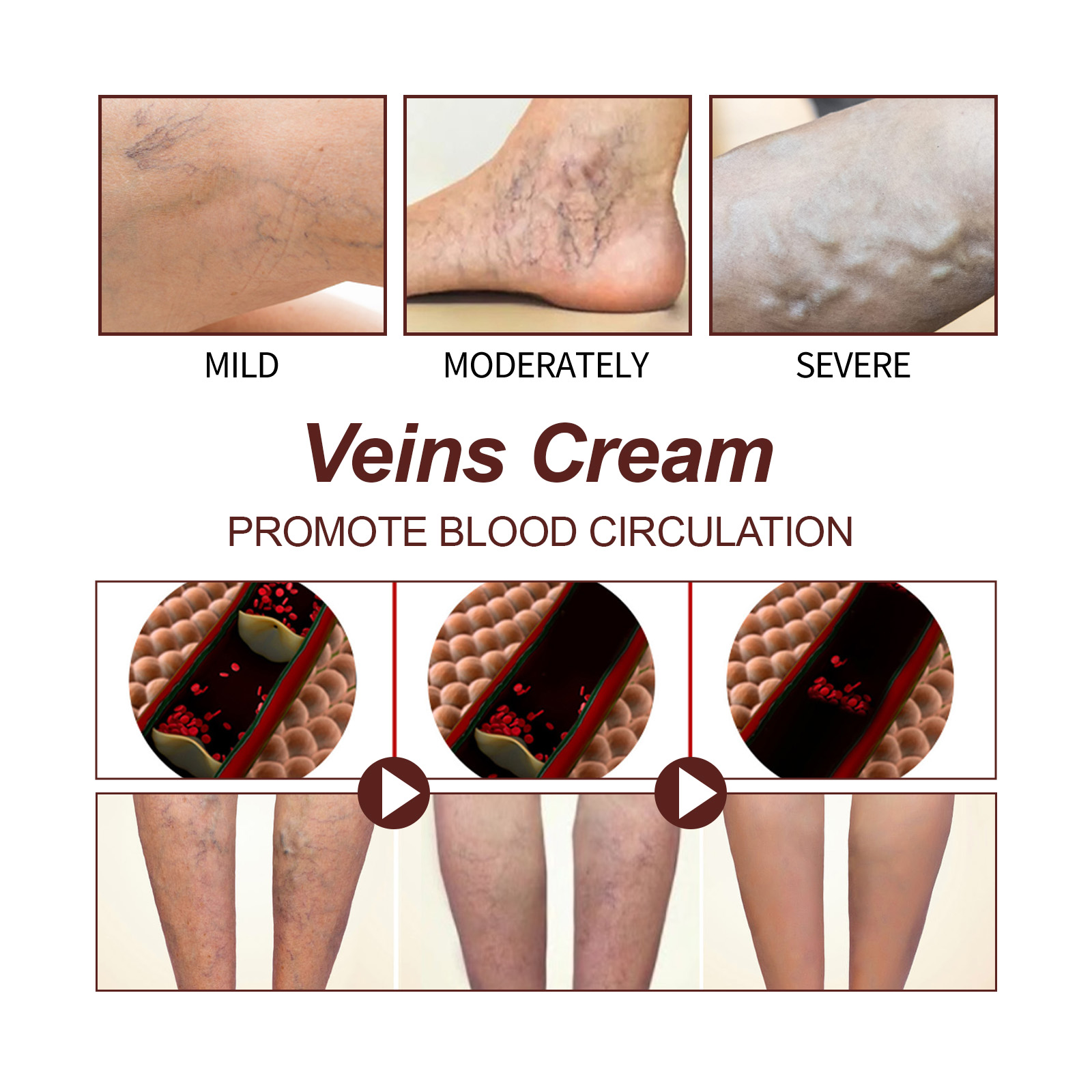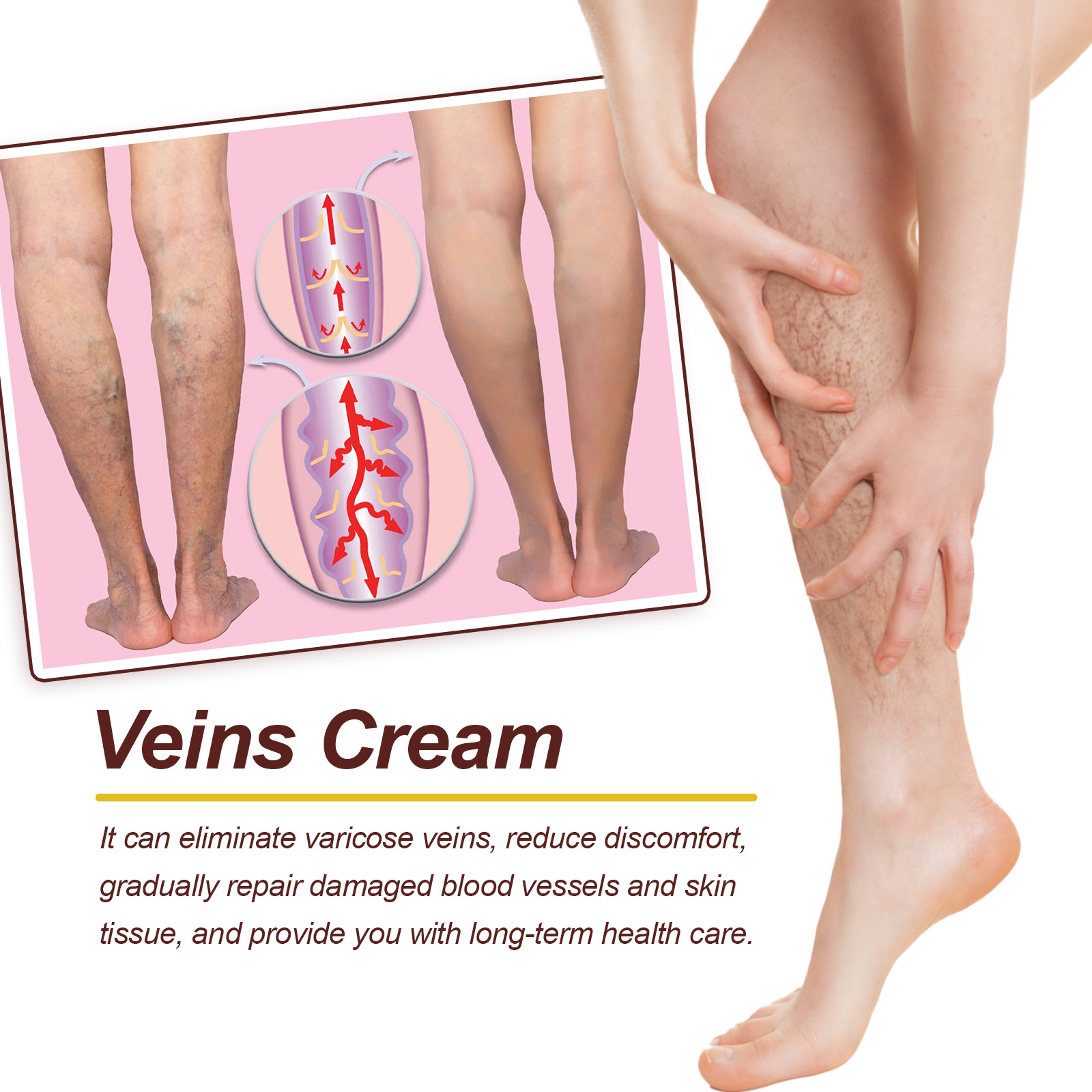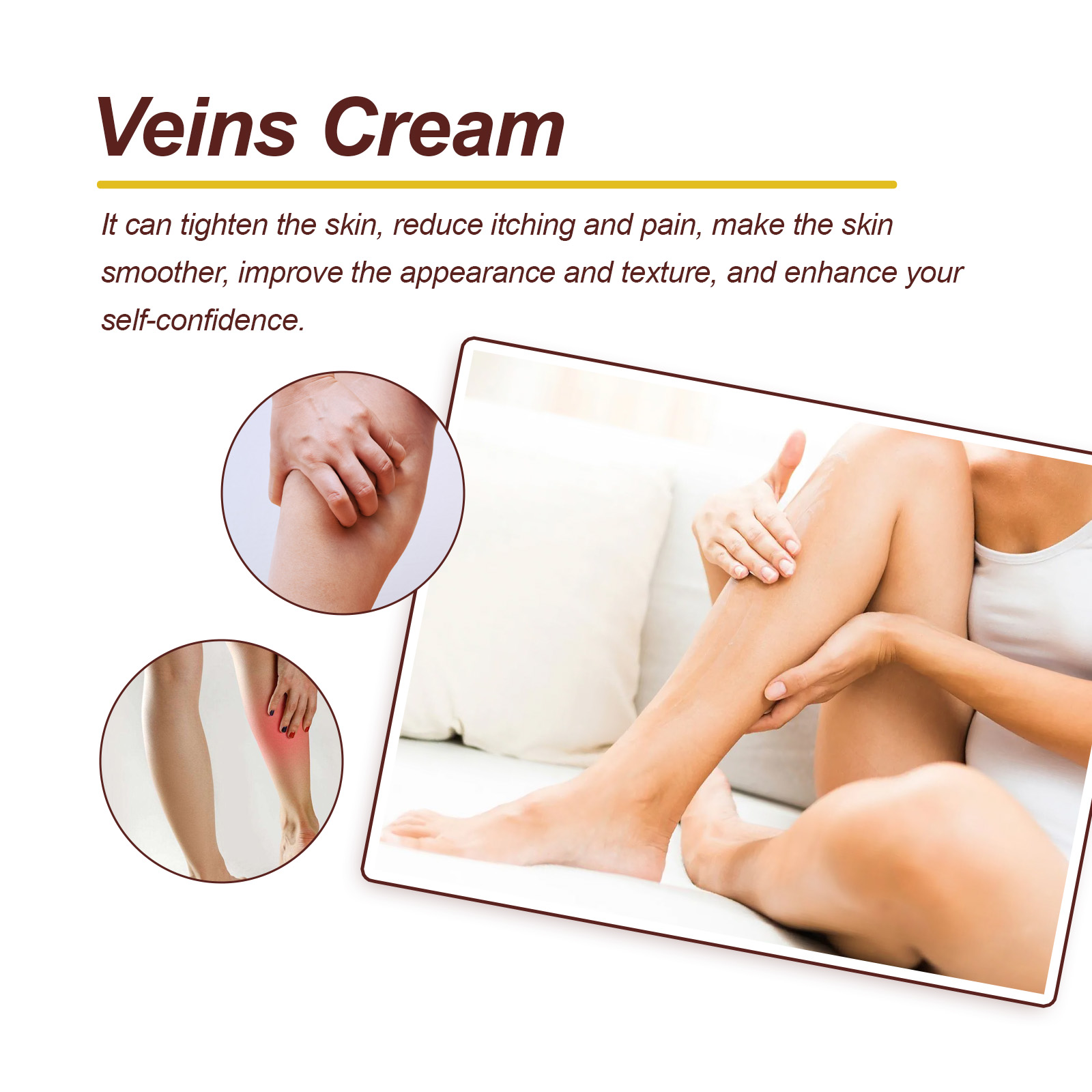 Our leg cream contains Gubuazu butter, hydrolyzed hyaluronic acid. It can eliminate varicose veins, reduce discomfort, and gradually repair damaged blood vessels and skin tissue, providing you with long-term health care. Its use is simple: 1. Keep your skin clean and dry. 2. Apply appropriate amount to affected area and rub evenly. 3. Use 2 to 4 times a day. And can tighten the skin, reduce itching and pain, make the skin smoother, improve the appearance and texture, and boost your confidence.