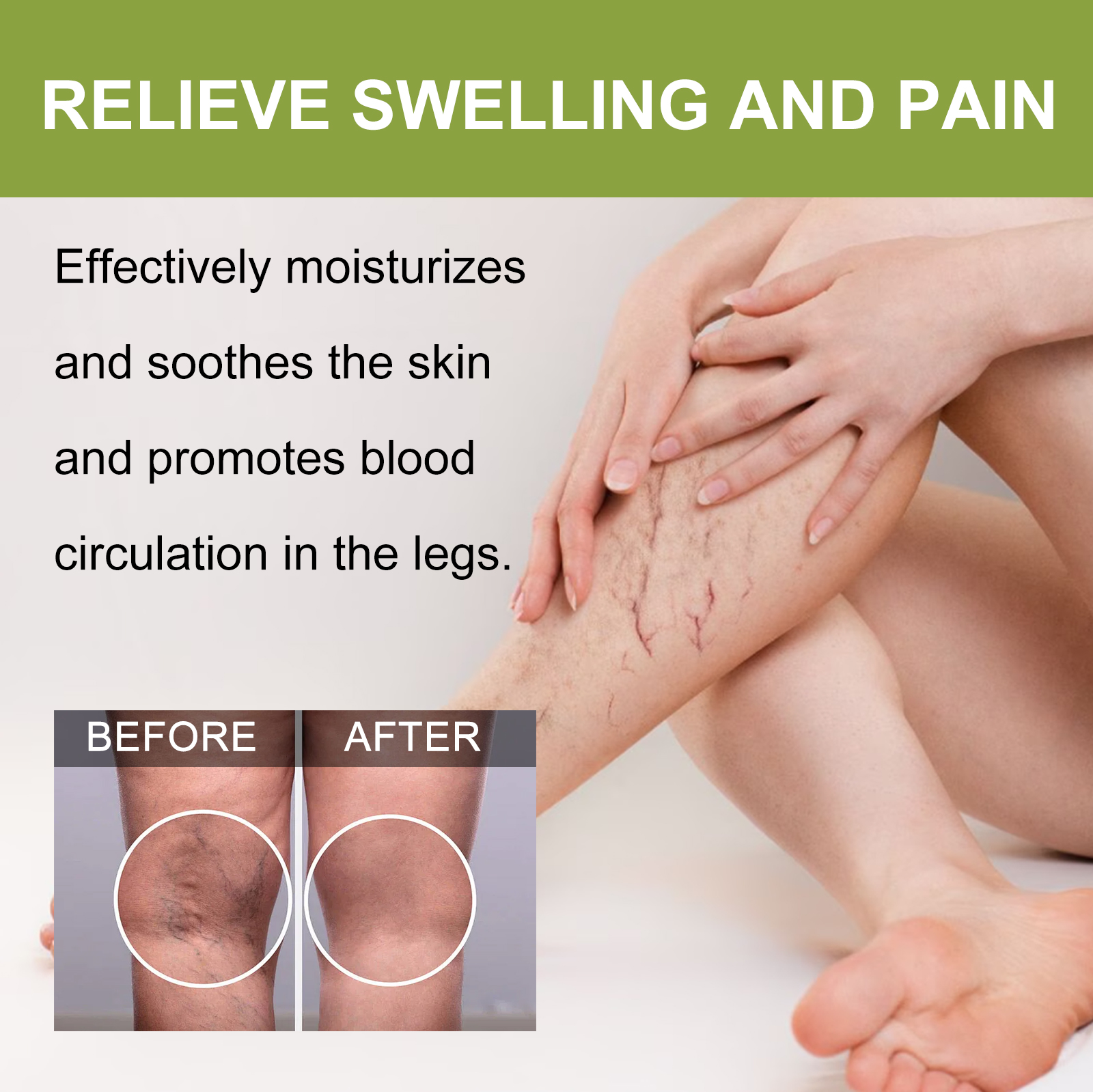 Our leg cream contains glycerin and mineral oil. It can reduce the appearance of varicose veins, make the legs smoother, improve blood circulation, reduce venous visibility, promote overall vascular health, relieve leg fatigue and pain from varicose veins, and increase comfort. Its use is very simple: after cleaning the affected area, apply appropriate amount of this product to the affected area, and gently massage to help absorption. It can relieve swelling pain, improve varicose veins and numbness of limbs, and restore healthy and beautiful legs.