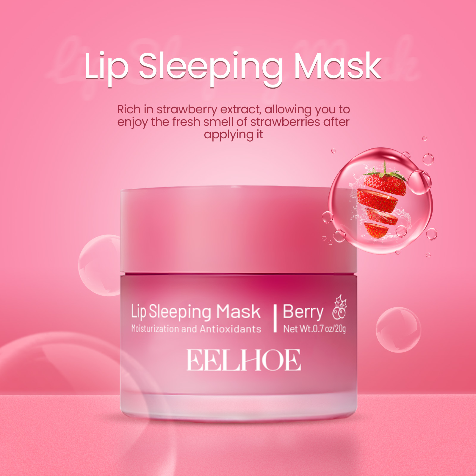 Our Lip Sleeping Mask contains strawberry extract, shea butter, camellia oil. It can deeply moisturize, gently exfoliate, reduce lip wrinkles, smooth lips, enhance lip elasticity, and make your lips fuller and fuller. Its use method is very simple: take an appropriate amount of this product evenly applied to the lips, you can directly sleep, the next day with a wet tissue to wipe off excess dead skin can be. Can improve dry peeling, moisturize lips, restore and protect delicate lip skin.
