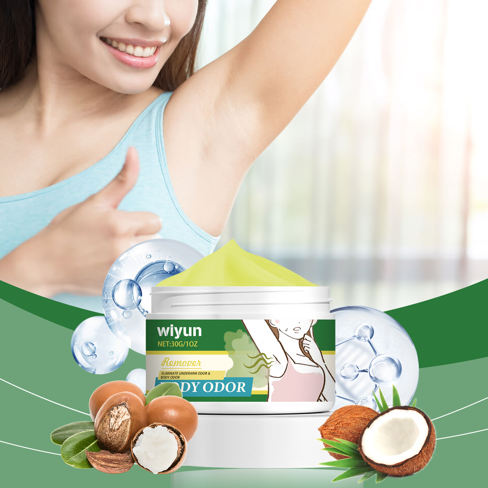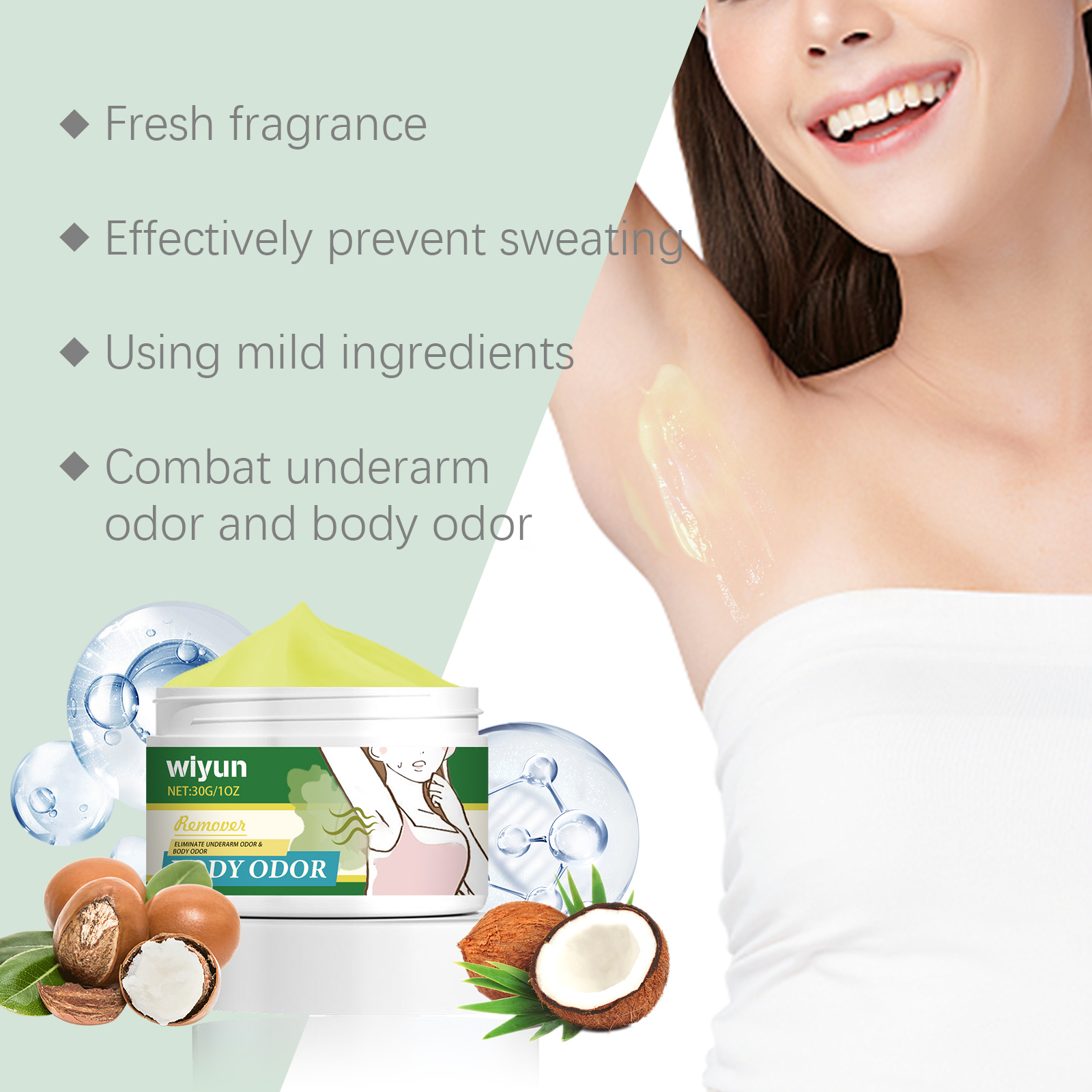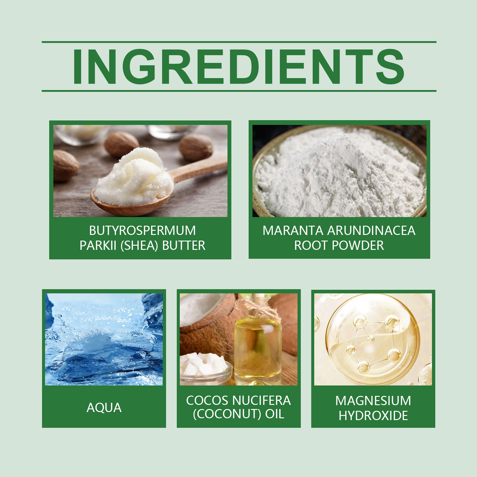 Our body balm contains shea butter, arrowroot root powder and coconut oil. It suppresses odors for a long time and keeps you fresh and dry throughout the day. A powerful antiperspirant formula that reduces sweat production and keeps you dry and comfortable throughout the day. Its application method is very simple: 1. Thoroughly clean the skin, dry it first; 2. Apply appropriate amount of the product evenly on the armpit skin; 3. Massage gently to promote better absorption. Dry quickly after use, non-sticky, leaving no white marks, refreshing and comfortable.