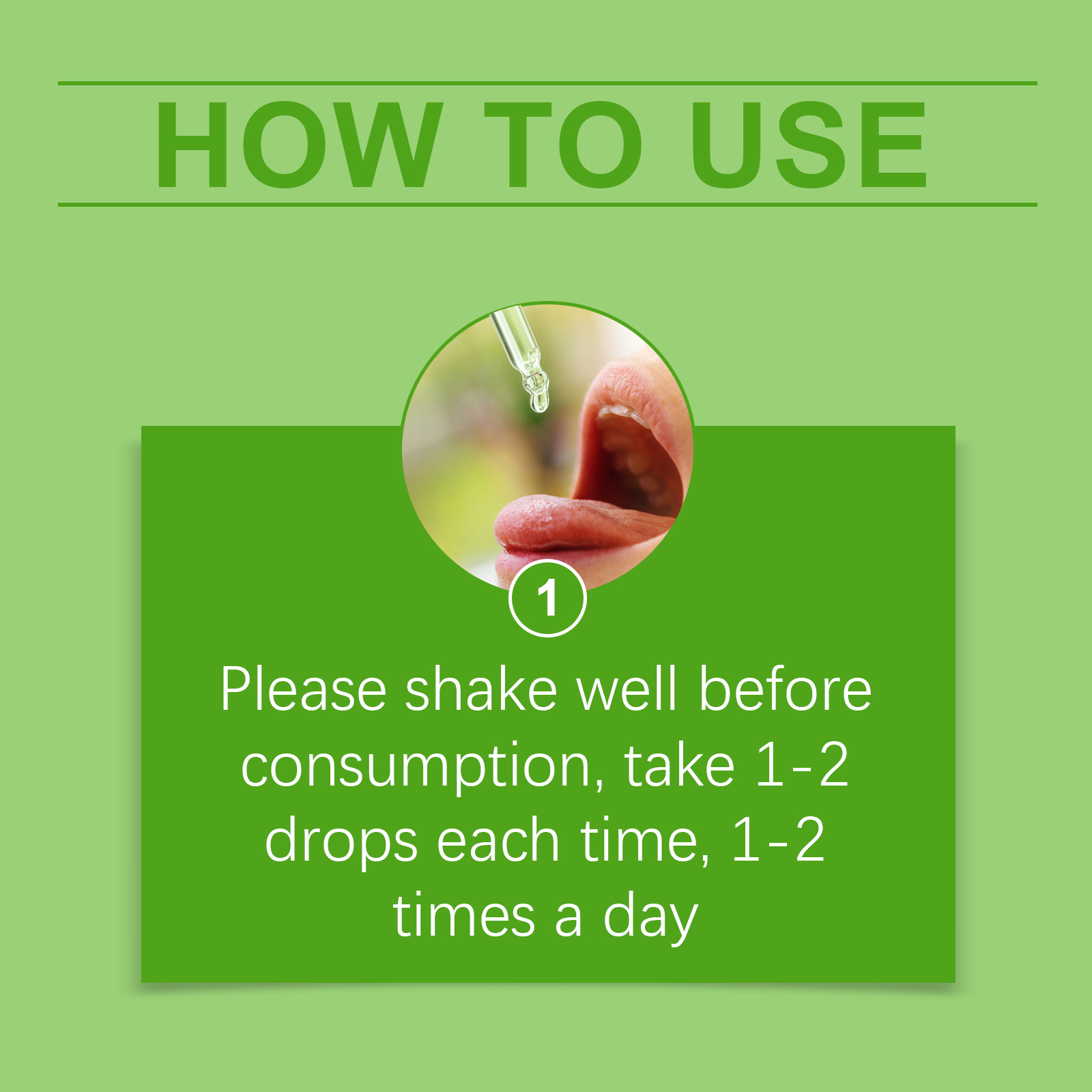 Our lung health declines containing extracts of traditional Chinese medicine, gluconolactone, vitamin b1. It can provide a fresh feeling and make you feel comfortable. Help maintain product stability and effectiveness; Provides a sense of cooling and improves the user experience. The way to use it is very simple: shake it well before eating, 1-2 drops each time, 1-2 times a day. The ingredients are safe and do no other harm to the body. Provides daily freshness and improves the feeling of your breath.