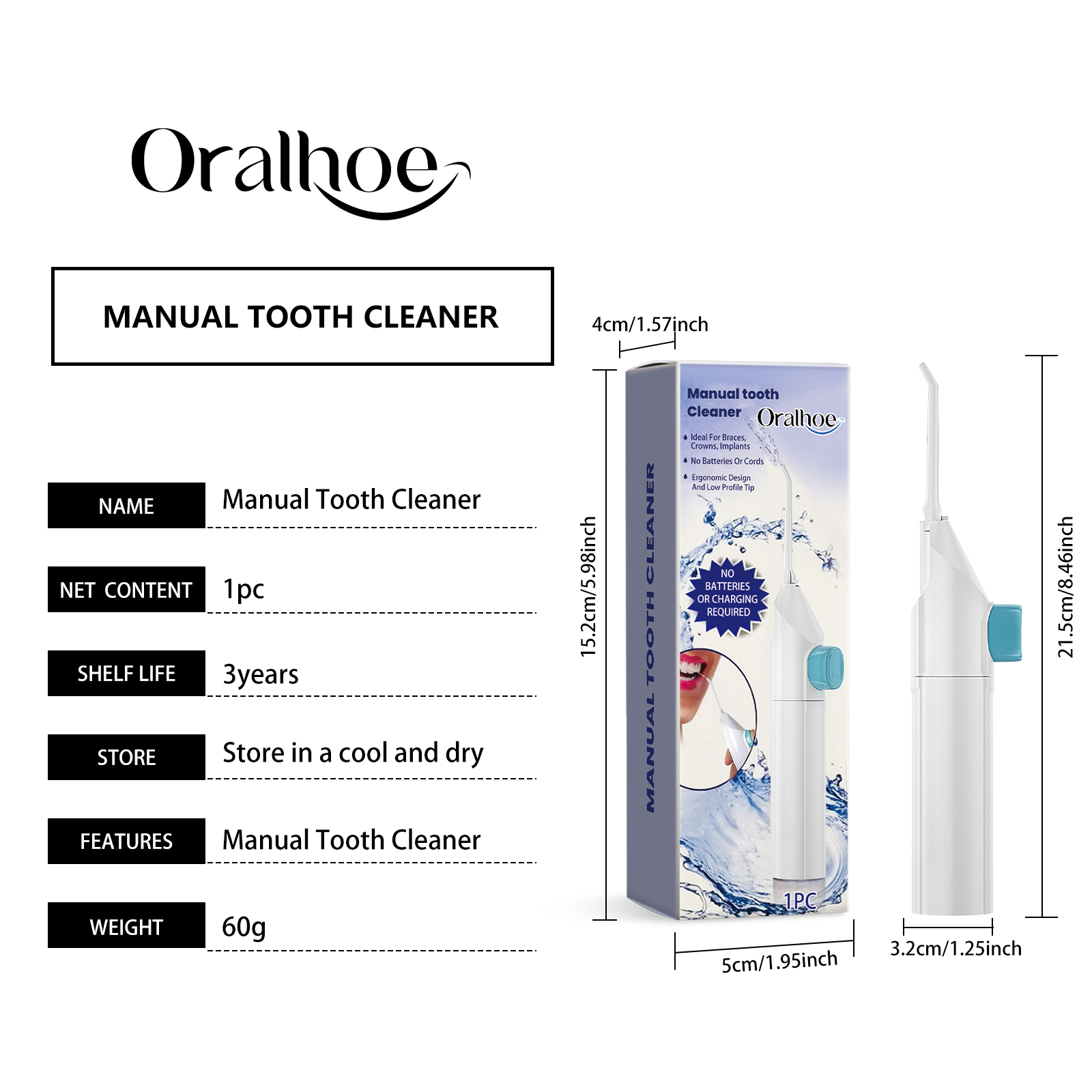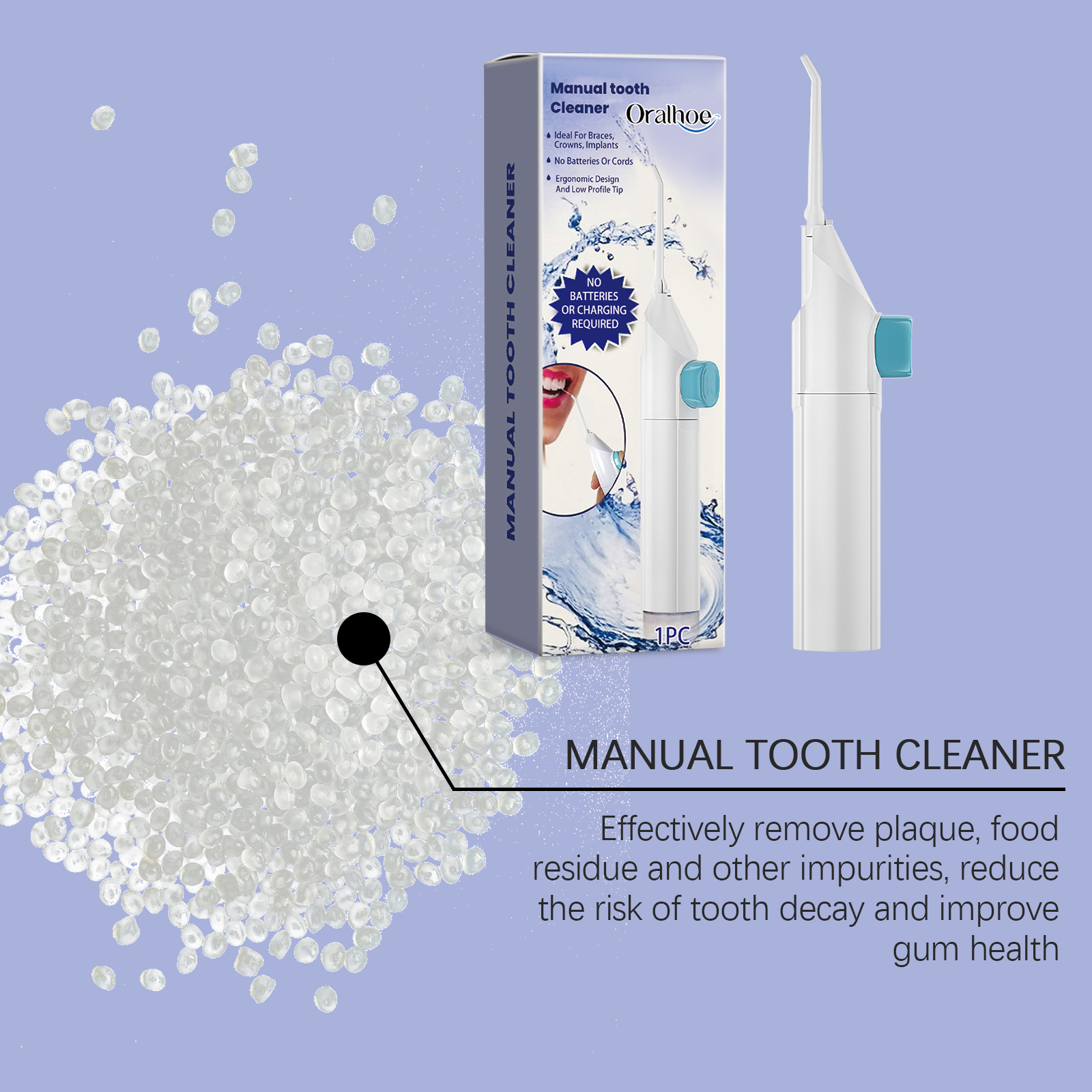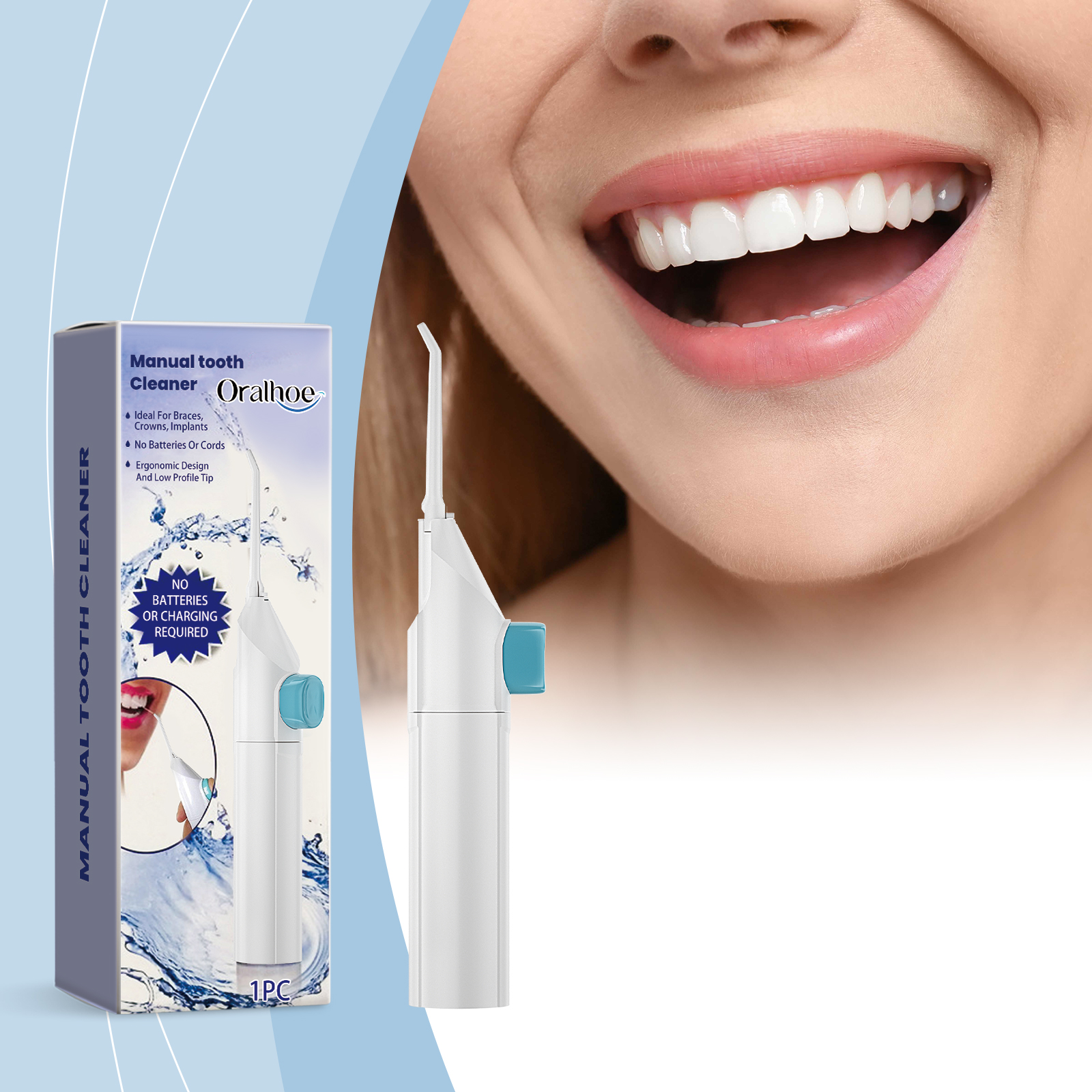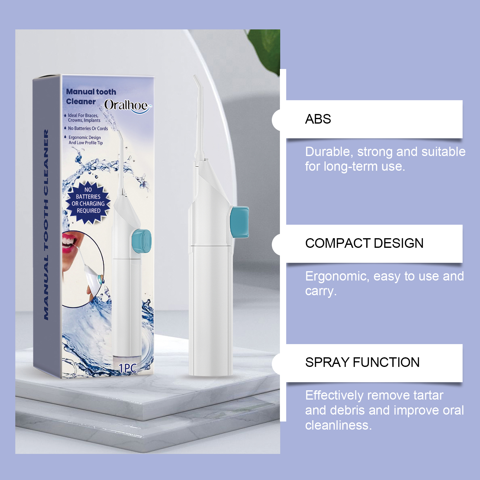 Our manual dental cleaners contain ABS. It can effectively remove tartar and debris and improve oral cleanliness. Its use method is very simple: 1. Disassemble the reservoir, the pump housing hose and nozzle are completely immersed in water, press the button for 60 seconds to discharge the air; 2. Unscrew the cover of the button opening when using. Open the bottle cap to the left and fill the tank with water. 3. Install the liquid guide head, gently press the button to adjust the strength of the water flow, move between the teeth and gums, and clean. Powerful spray, deep decontamination. The new floss design reduces irritation and discomfort and provides a gentle and comfortable cleaning experience.