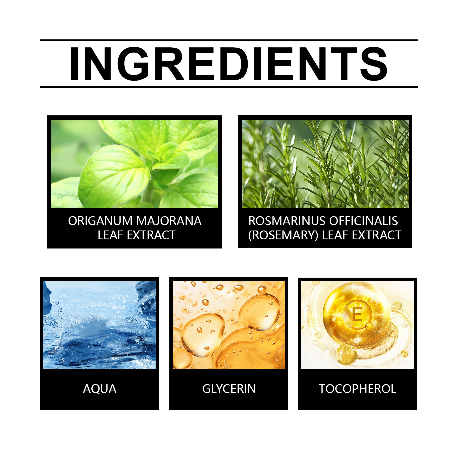 Our Marjoram hair oil contains marjoram extract, rosemary leaves. It keeps your hair moisturized and soft for a long time. Its use method is very simple: after shampooing, take an appropriate amount of marjoram hair oil drops in the palm, rub twice, and then evenly apply to the scalp, waiting for absorption. And it can improve the anti-breakage ability of hair and reduce hair breakage. Improve the overall texture of hair and enhance natural elasticity. Easy to take care of, reduce styling worries.