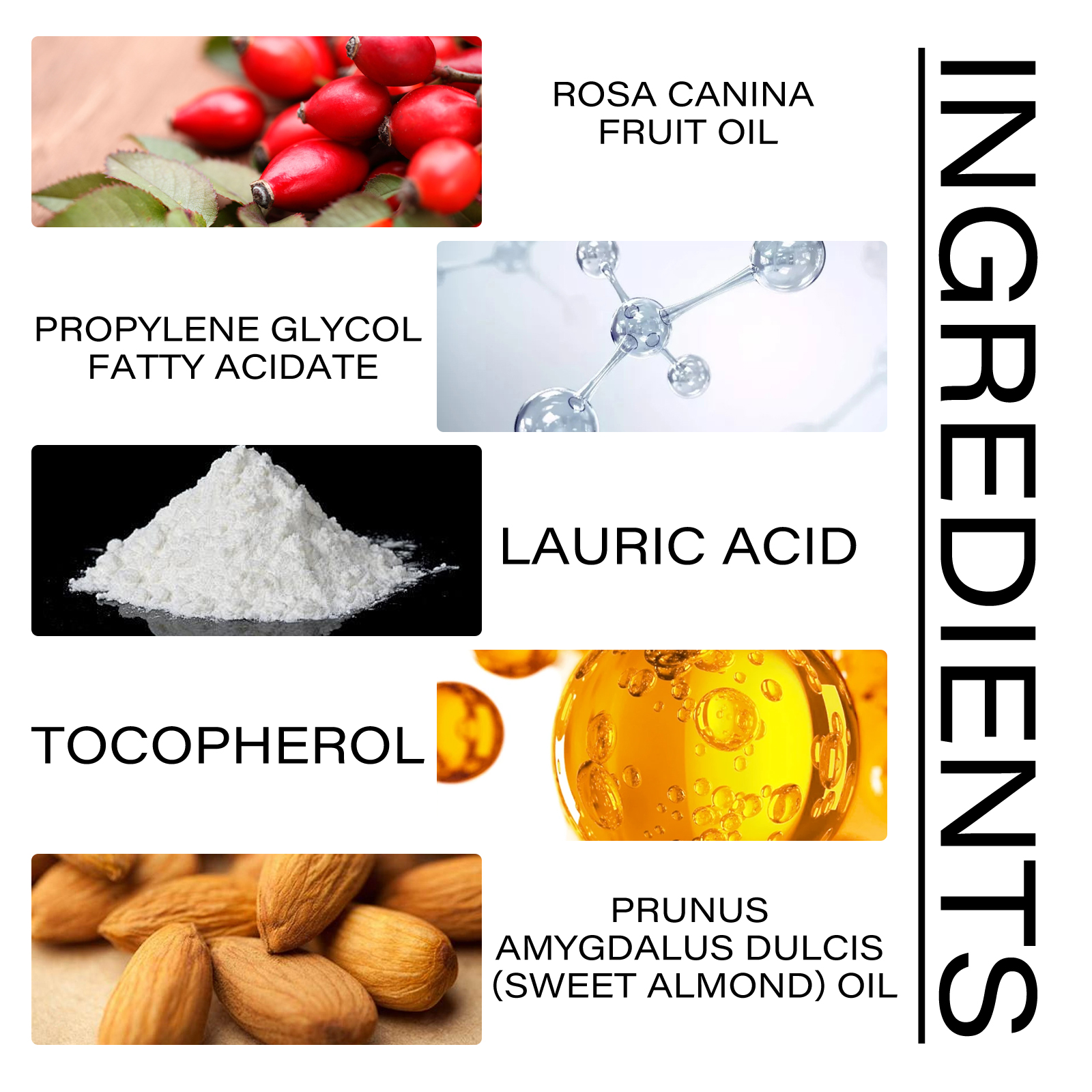 Our rosehip oil contains propylene glycol fatty acid esters and lauric acid. It can repair scars, make the skin elastic, restore the original skin moisture state. Its use is very simple: use it as a hair conditioner, before washing your hair, take an appropriate amount of rose hip oil evenly apply to your hair, after 15 minutes wash it off with shampoo, use it as a body oil, you can mix it with body lotion, apply it to your whole body after bathing, use it to remove makeup. First, apply an appropriate amount to the face, wait for 1-2 minutes, and wash off after emulsifying the cosmetics. And you can massage your body.