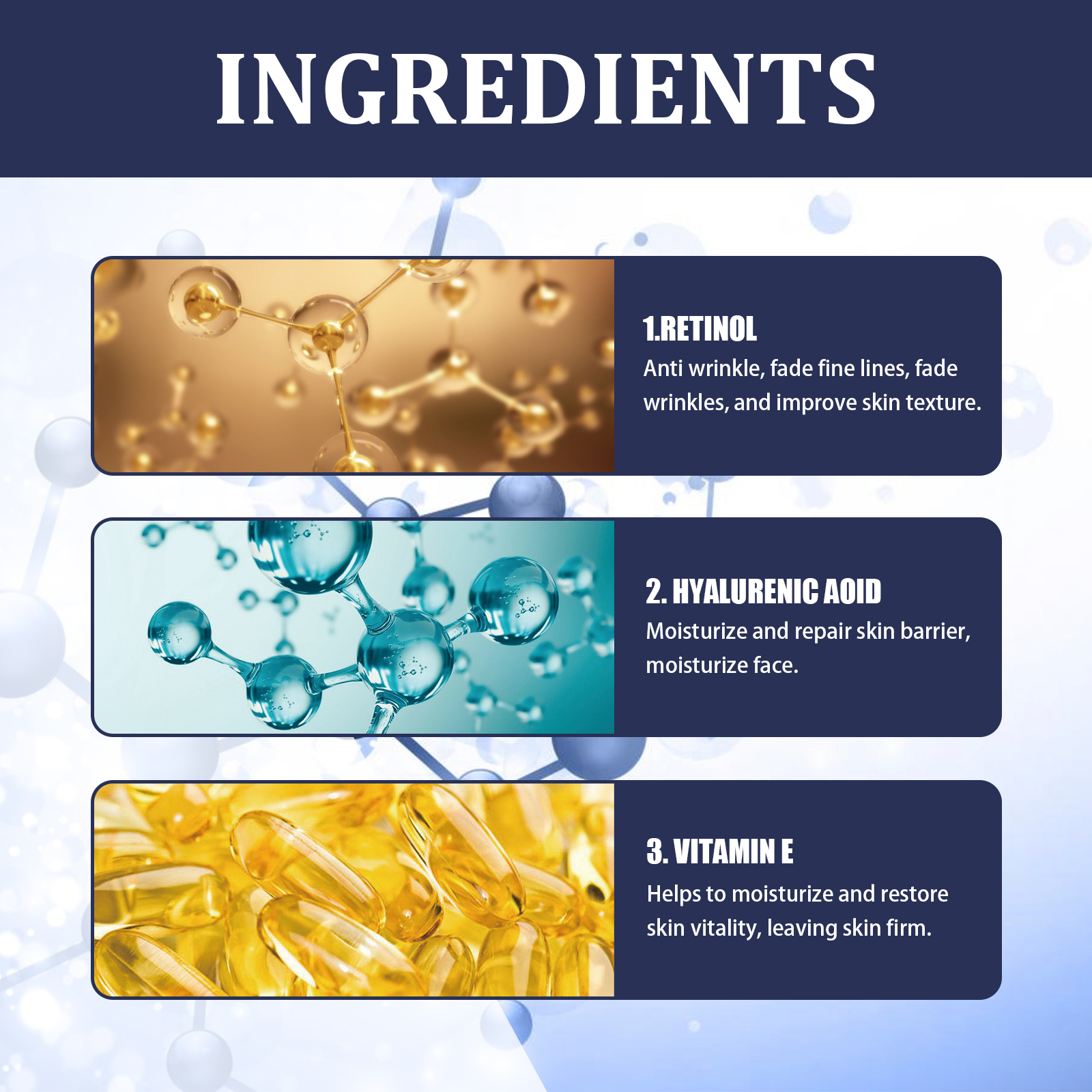 Our anti-aging cream for men contains retinol, hyaluronic steroids, vitamin E. It can improve skin elasticity; Anti-wrinkle, fade fine lines and wrinkles; Strengthen the underlying skin; Skin is firm and delicate; Enhance skin collagen; Moisturize and rejuvenate skin. Its use method is very simple: every morning and evening, apply appropriate amount of this product evenly on the face, gently massage until absorbed. Moisturize and repair skin barrier, moisturize face. Vitamin e moisturizes the skin, rejuvenates the skin and keeps it firm.