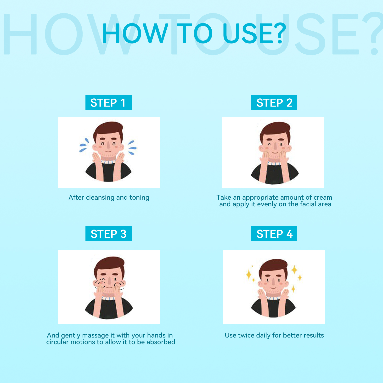 Our anti-aging cream for men contains retinol, collagen, and hyaluronic acid. It can provide adequate moisture, soften and repair the skin, which helps to improve dry skin conditions, making it smoother and softer. Its use is very simple: 1. After cleaning and toning; 2. Apply proper amount of cream to face evenly; 3. Then gently massage with your hand in a circular motion to allow it to be absorbed; 4. Use twice a day for better results. The combination of herbs provides powerful nutrients and treatments that moisturize the scalp, increase the tensile strength of the hair, reduce hair breakage and hair loss problems, these herbs repair damaged hair and protect the health of the scalp.