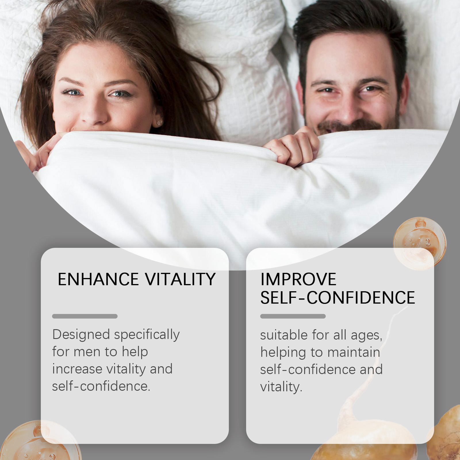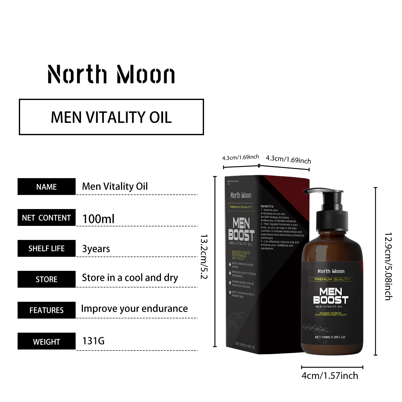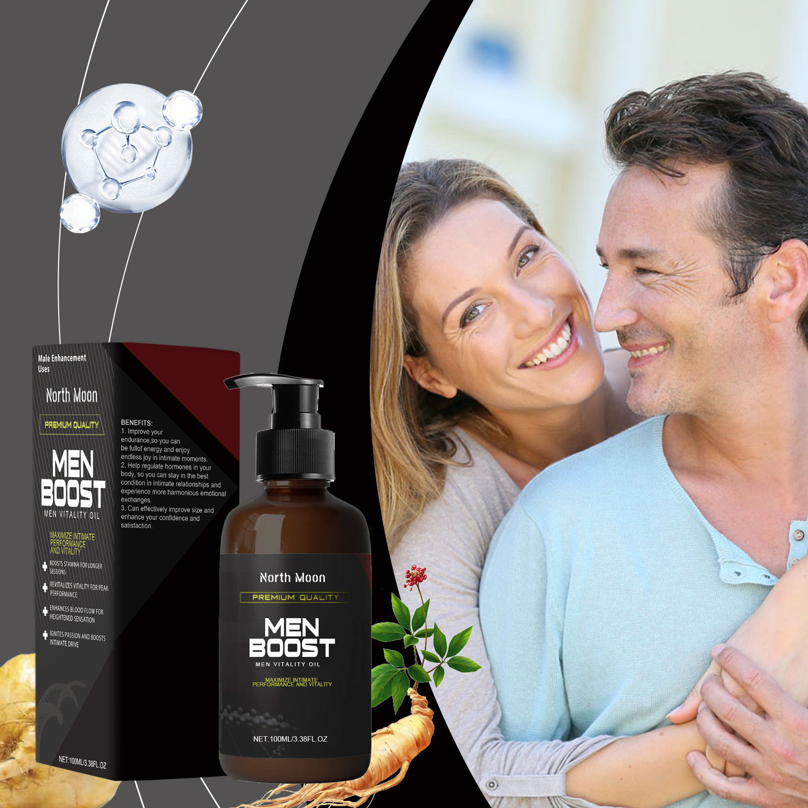 Our Men's Body care oil contains Epimedium extract, ginseng root extract, maca root extract. It can be light in texture, fast absorption, non-greasy, comfortable to use. Daily use, simple and convenient, the effect is remarkable; Designed for men to help them increase their energy and confidence. The way to use it is simple: 1. Clean your private parts and keep them dry; 2. Apply appropriate amount of the product evenly on the private parts and surrounding skin; 3. Gently massage until completely absorbed. Suitable for all ages, it helps to maintain confidence and vitality.