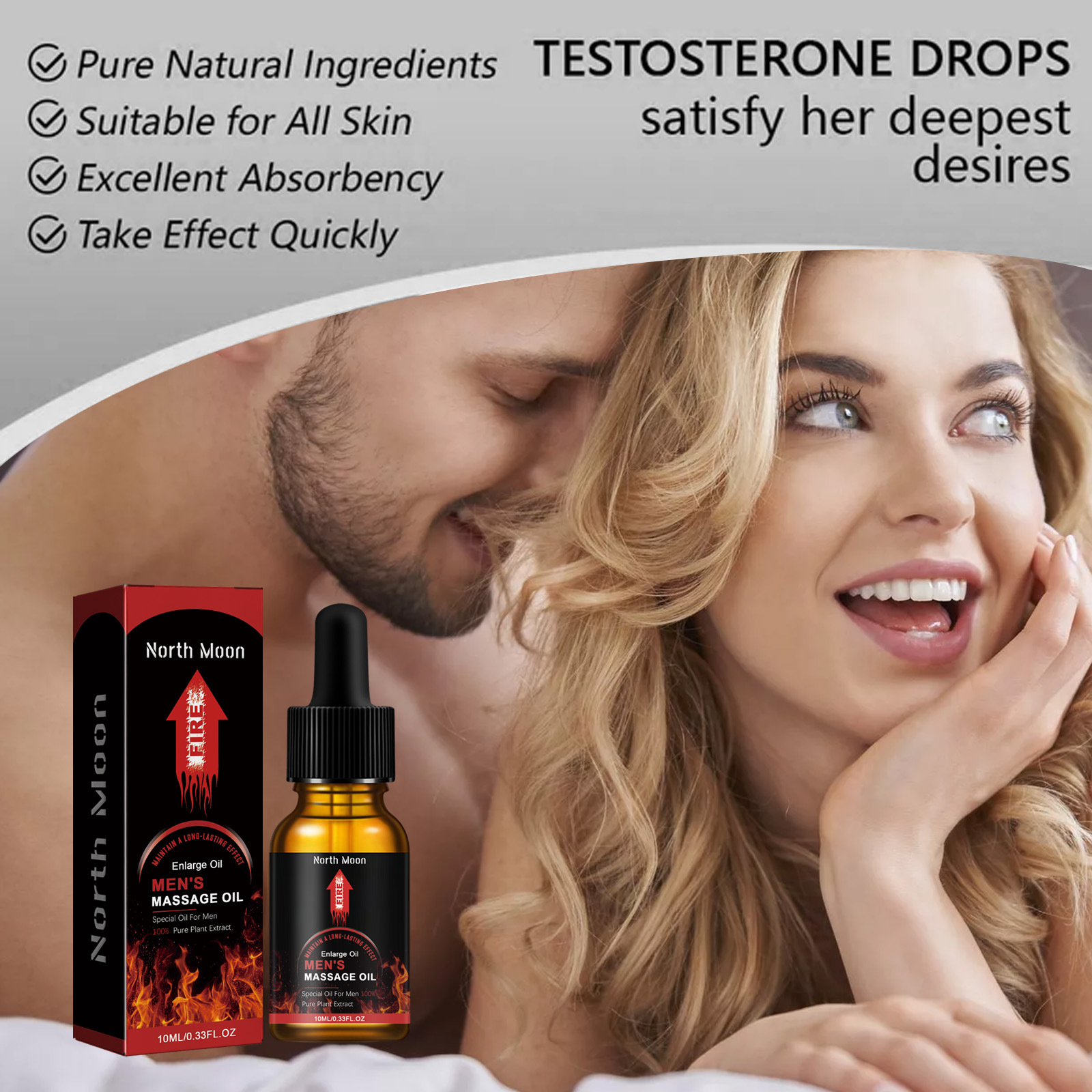 Our Men's tonic contains glycerin, panthenol and PCA sodium. It can rekindle passion and restore confidence, essential oils are gentle, non-irritating, inhibit bacteria, help improve sexual coldness, relax the body and mind, feel the effects of drugs, ignite deeper secret emotions. Its use method is very simple: 1. Clean and dry hands and private parts 2. Apply appropriate amount of massage oil to the desired area 3. Rinse with water after use. Men's enhanced liquid is pure natural ingredients, suitable for all skin, good absorption, quick effect.