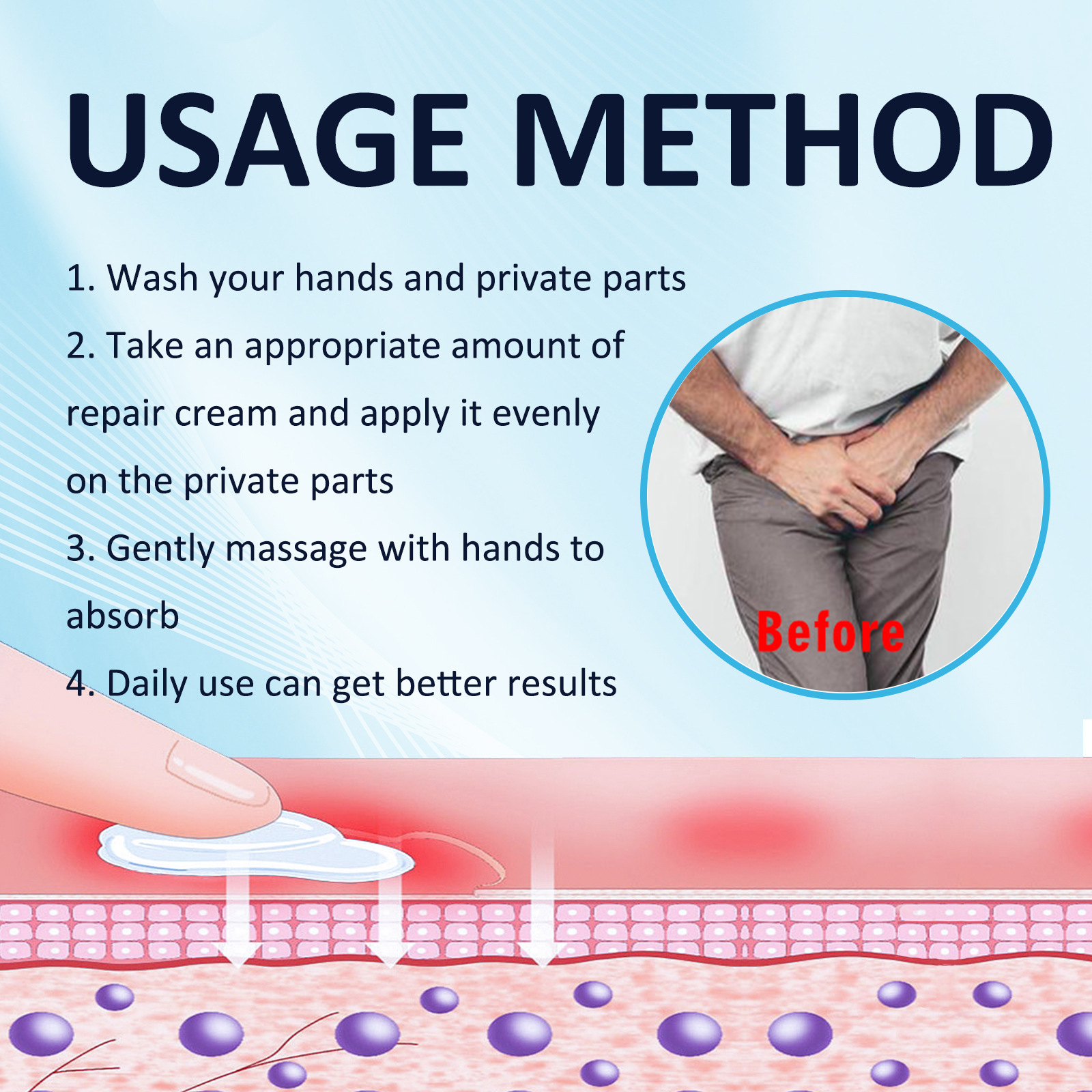 Our Prostate Care Cream contains Sophora Flavescens Extract, Aloe Vera Extract, Angelica Extract. It can be targeted to relieve prostate inflammation symptoms, reduce inflammation and discomfort, and promote prostate health. Its use method is very simple: wash your hands and private parts, take a proper amount of repair cream evenly apply on private parts, gently massage with your hands to absorb, daily use can get better results. It can improve the overall health of the prostate, relieve frequent urination, eliminate abdominal pain, promote healthy urinary function, reduce nighttime urination and insomnia.