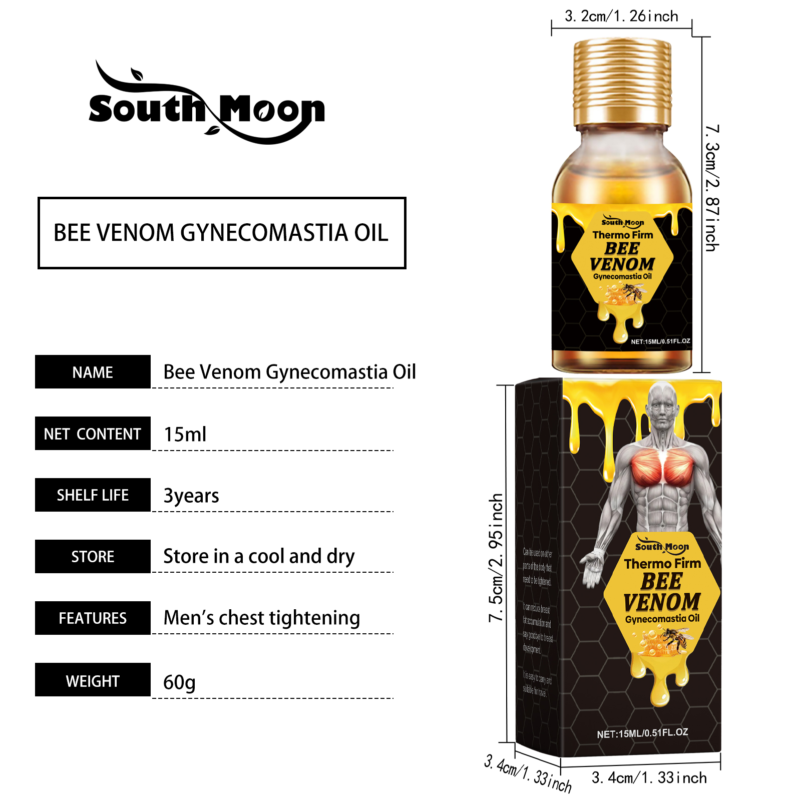 Our bee venom male breast development oil contains mint leaves, vitamin E (tocopherol), coconut oil. It can deeply nourish the skin, restore skin elasticity and shine. Its application method is very simple: apply an appropriate amount of this product evenly to the chest area, gently massage until completely absorbed. It can also improve blood circulation in the chest, speed up metabolism, and improve overall chest health.