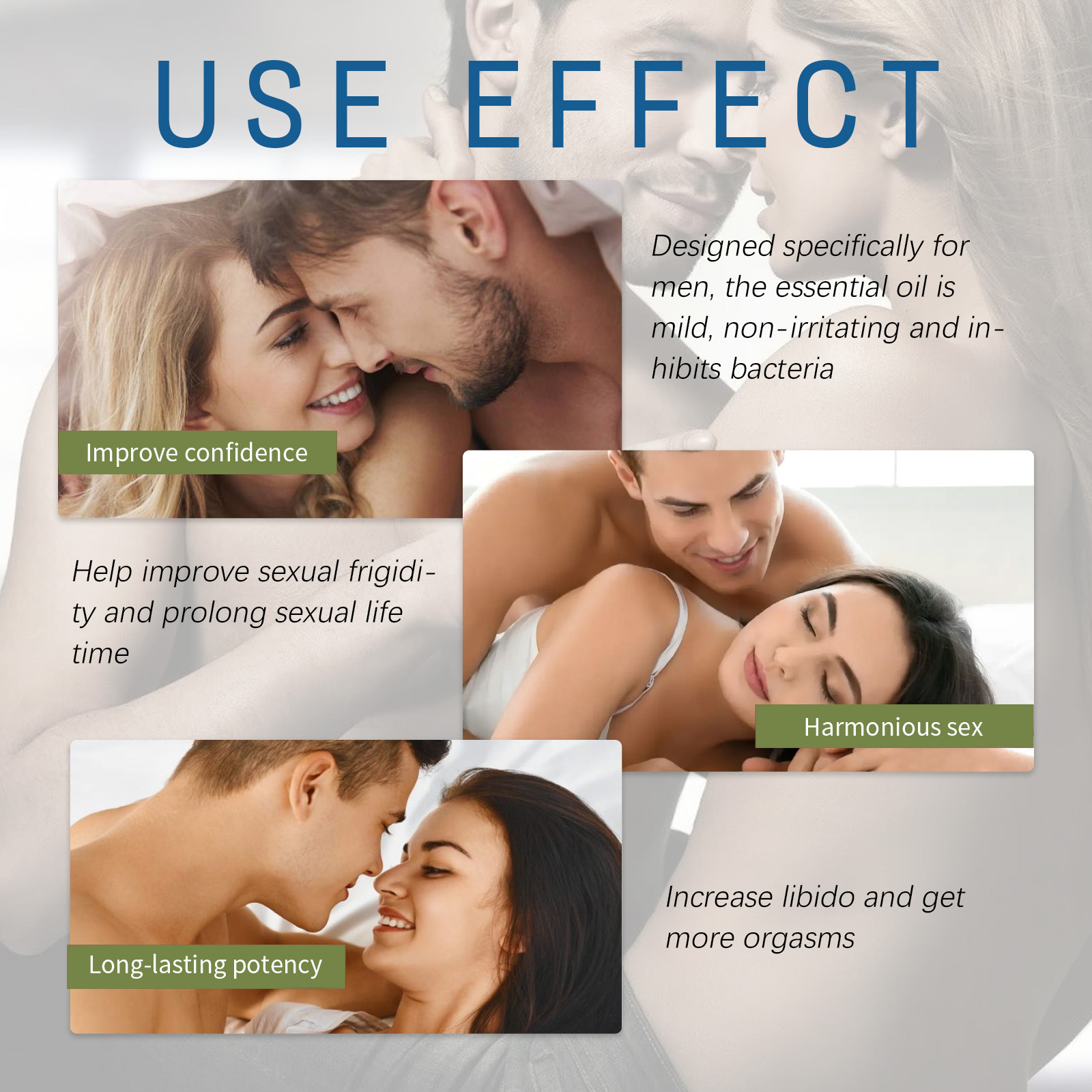 Our Men's massage oil contains maca root extract, saw palmetto extract, which can restore your masculinity and solve the problem of happy life. Its use method is very simple: 1. Clean and dry male private parts, 2. Take 2-3 drops of this product and evenly apply it to private parts, 3. Massage gently with your hands to absorb, 4. Enjoy captivating intimacy. And can relax the body and mind feeling, release the pressure.