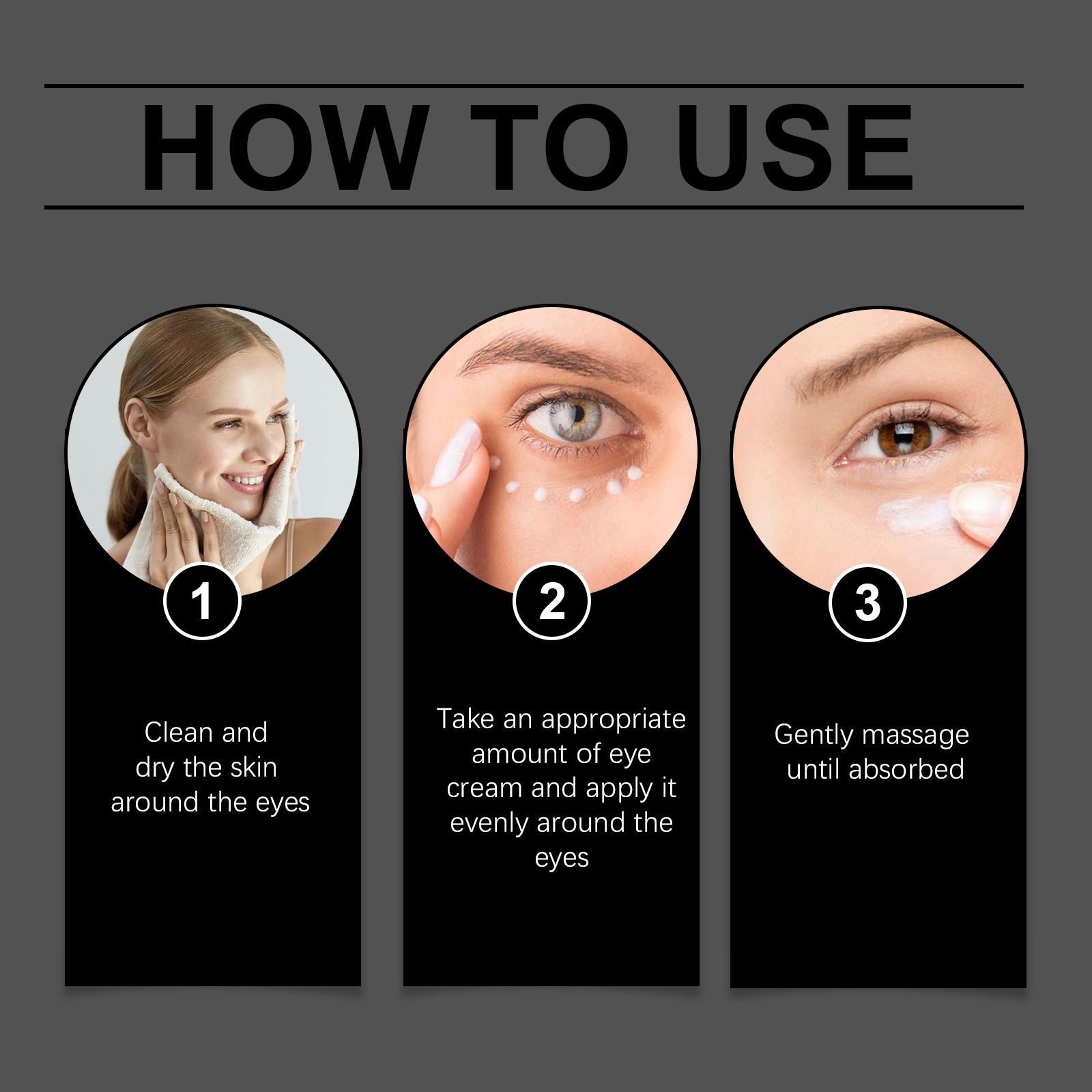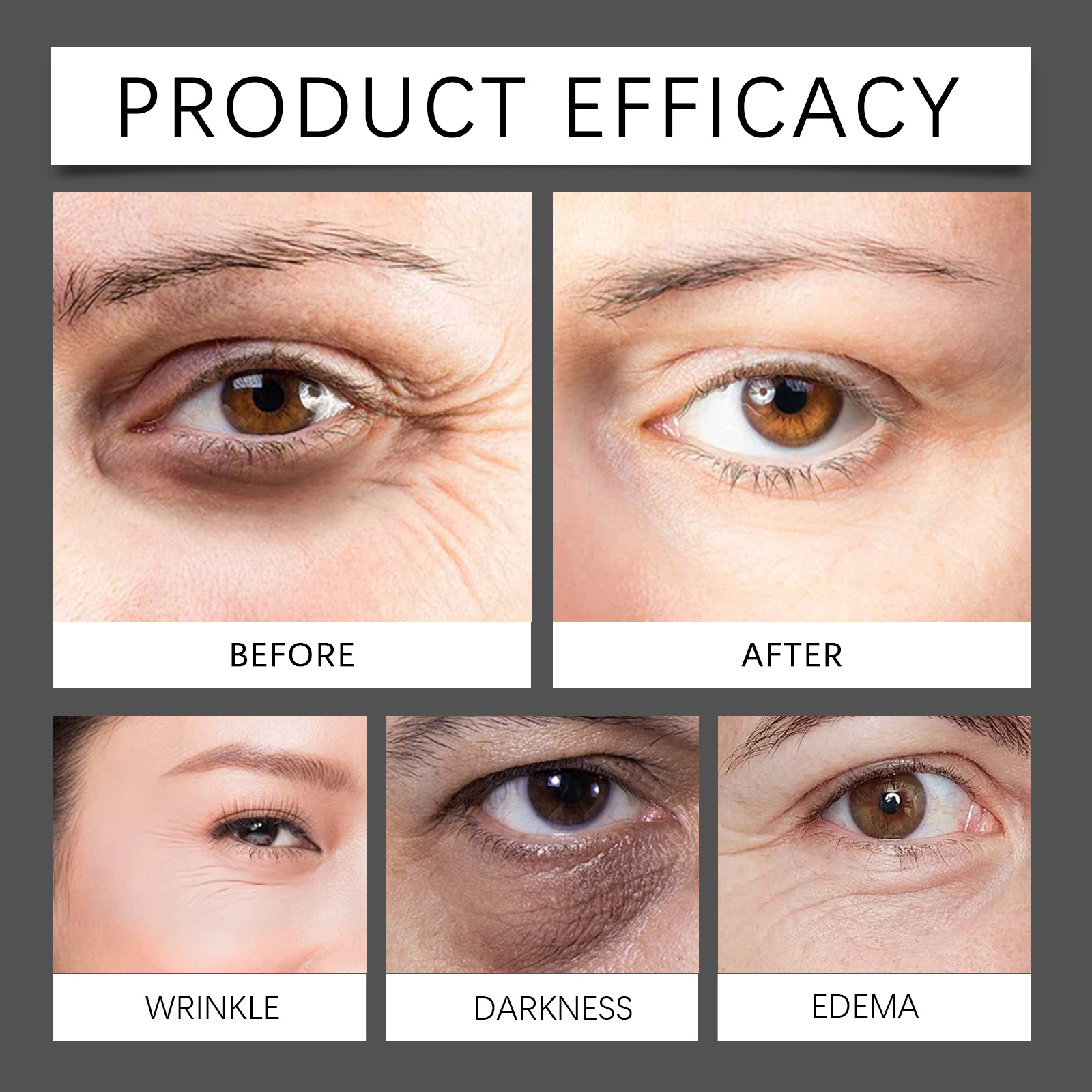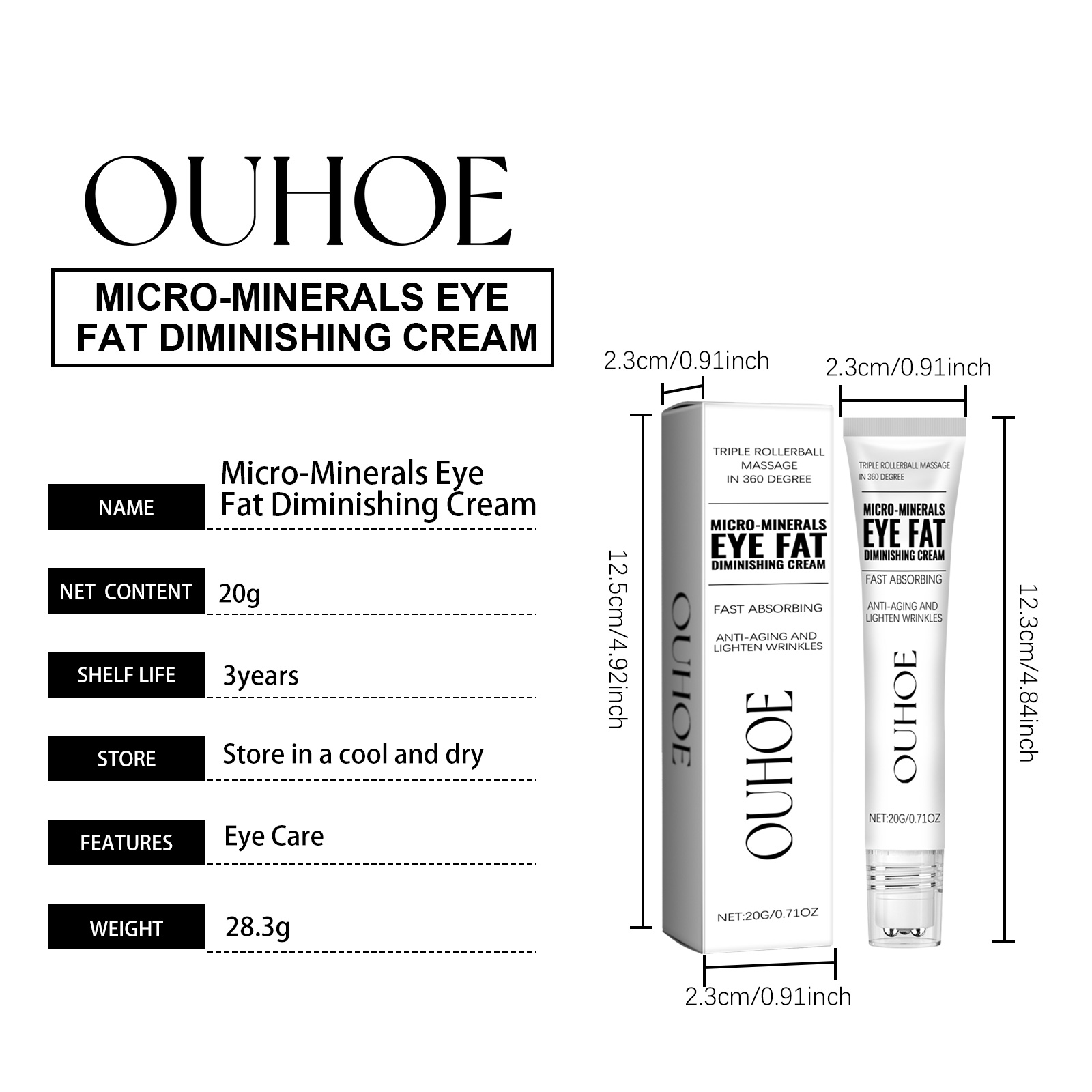 Our Micro-Minerals Eye Fat Diminishing Cream contains Hyaluronic Acid, Ceramide 1, Acetyl Hexapeptide-8. It can tighten and lift, improve sagging and lift eye contour, deeply nourish the eye area, lock moisture, moisturize, reduce bags under the eyes and reduce wrinkles. Its application method is very simple: clean and dry the skin around the eyes, apply appropriate amount of eye cream evenly on the skin around the eyes, gently massage until absorbed. It can moisturize for a long time, moisturize all day, reduce dry lines, keep skin soft and tender, and make skin silky and delicate and radiant every time you use it.